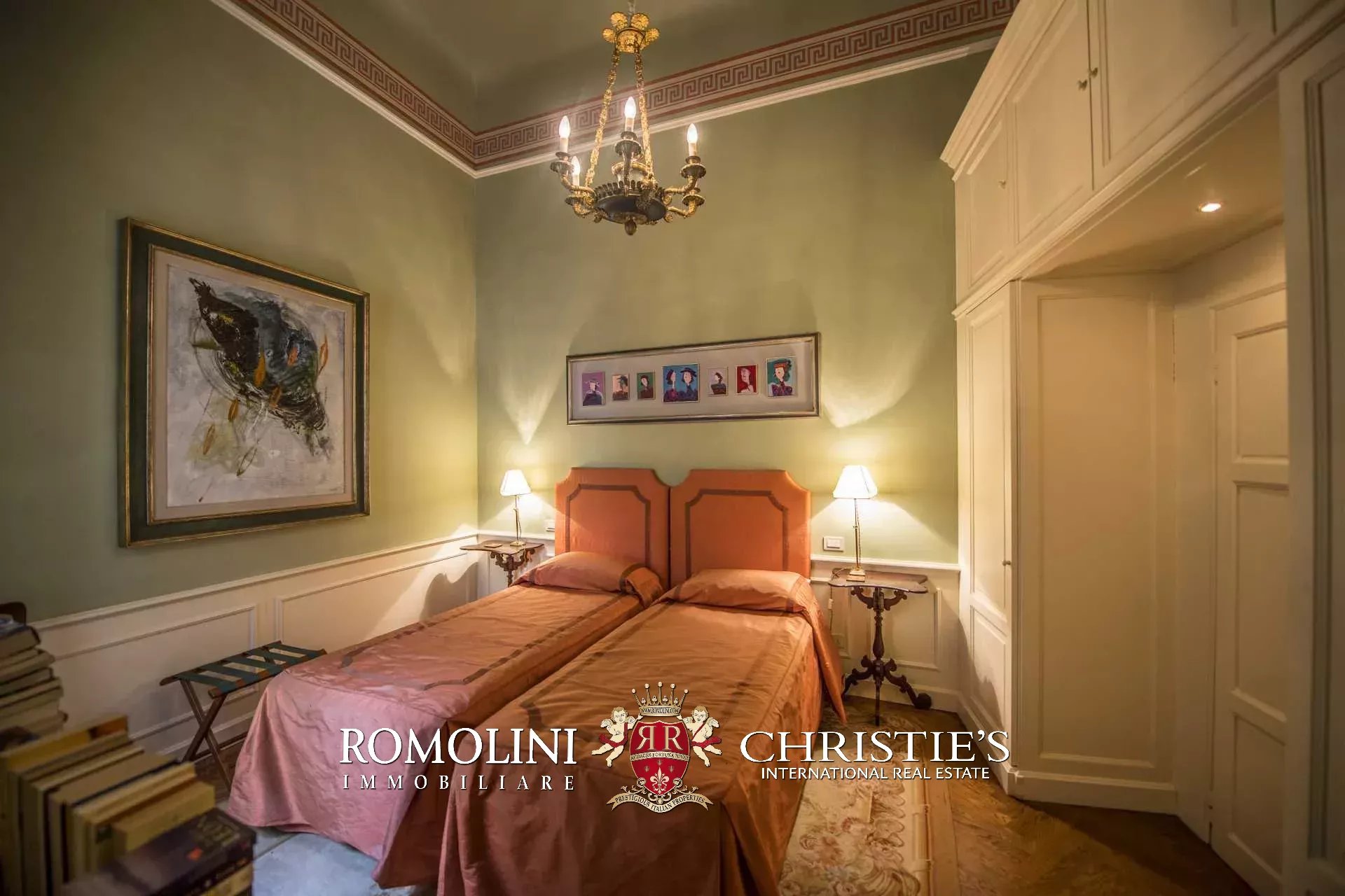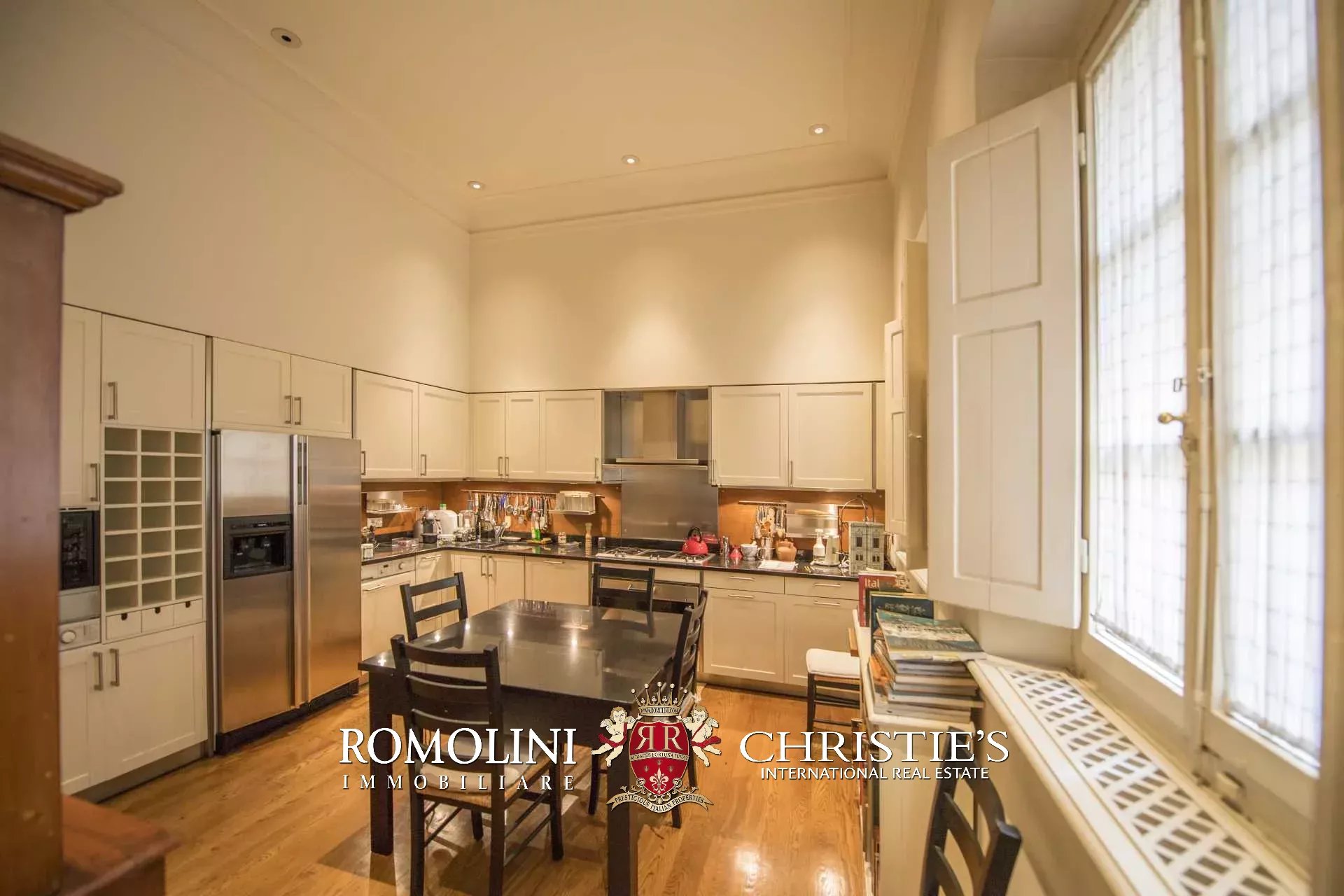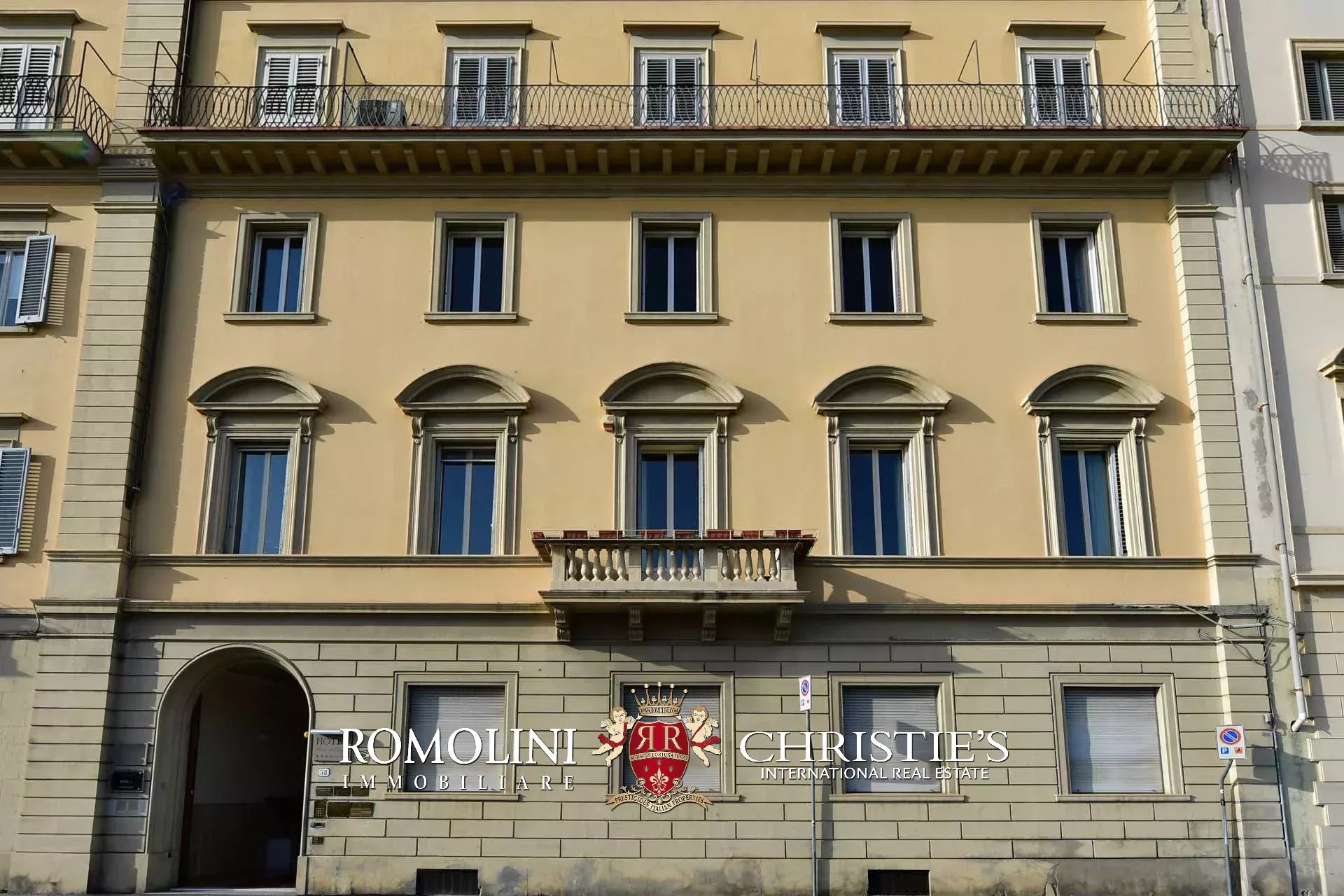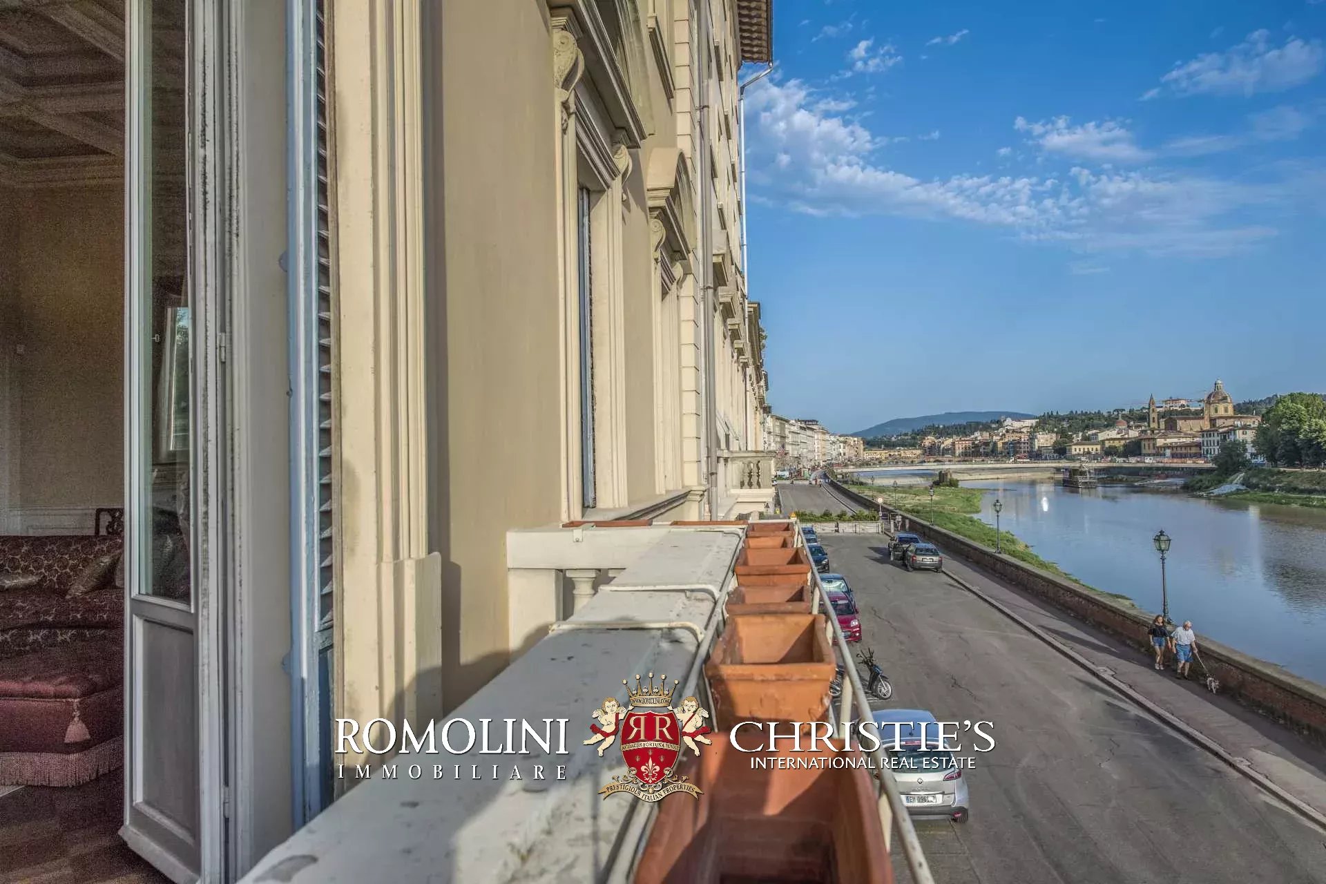 Die Wohnung (330 m², 3 Schlafzimmer und 5 Badezimmer) befindet sich im ersten Stock einem historischen Gebäude im historischen Zentrum von Florenz, am Ufer des Flusses Arno.