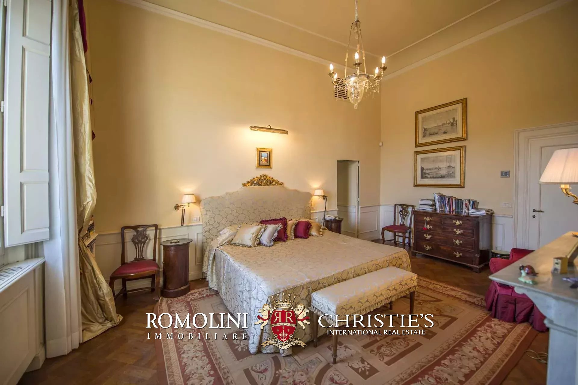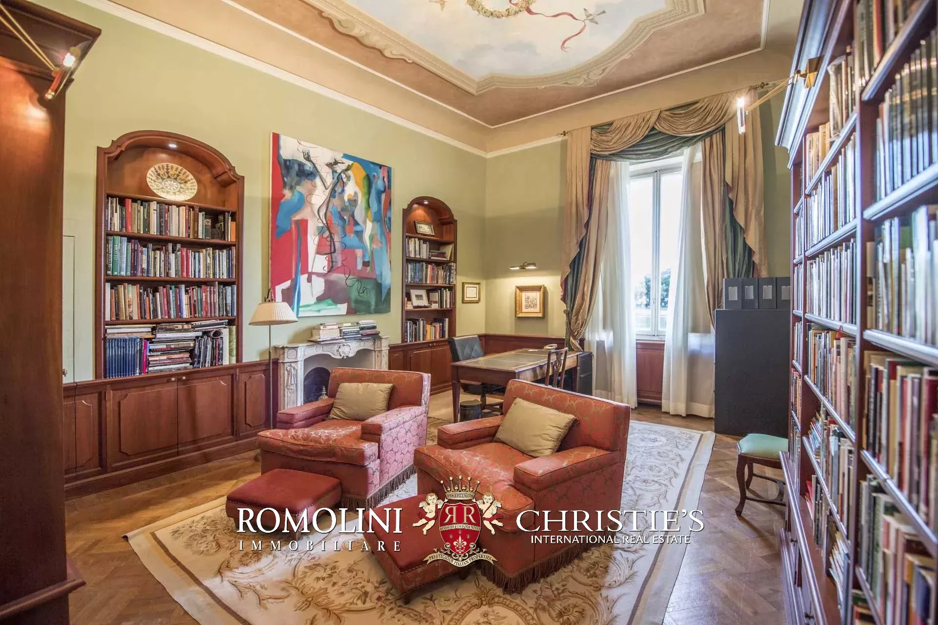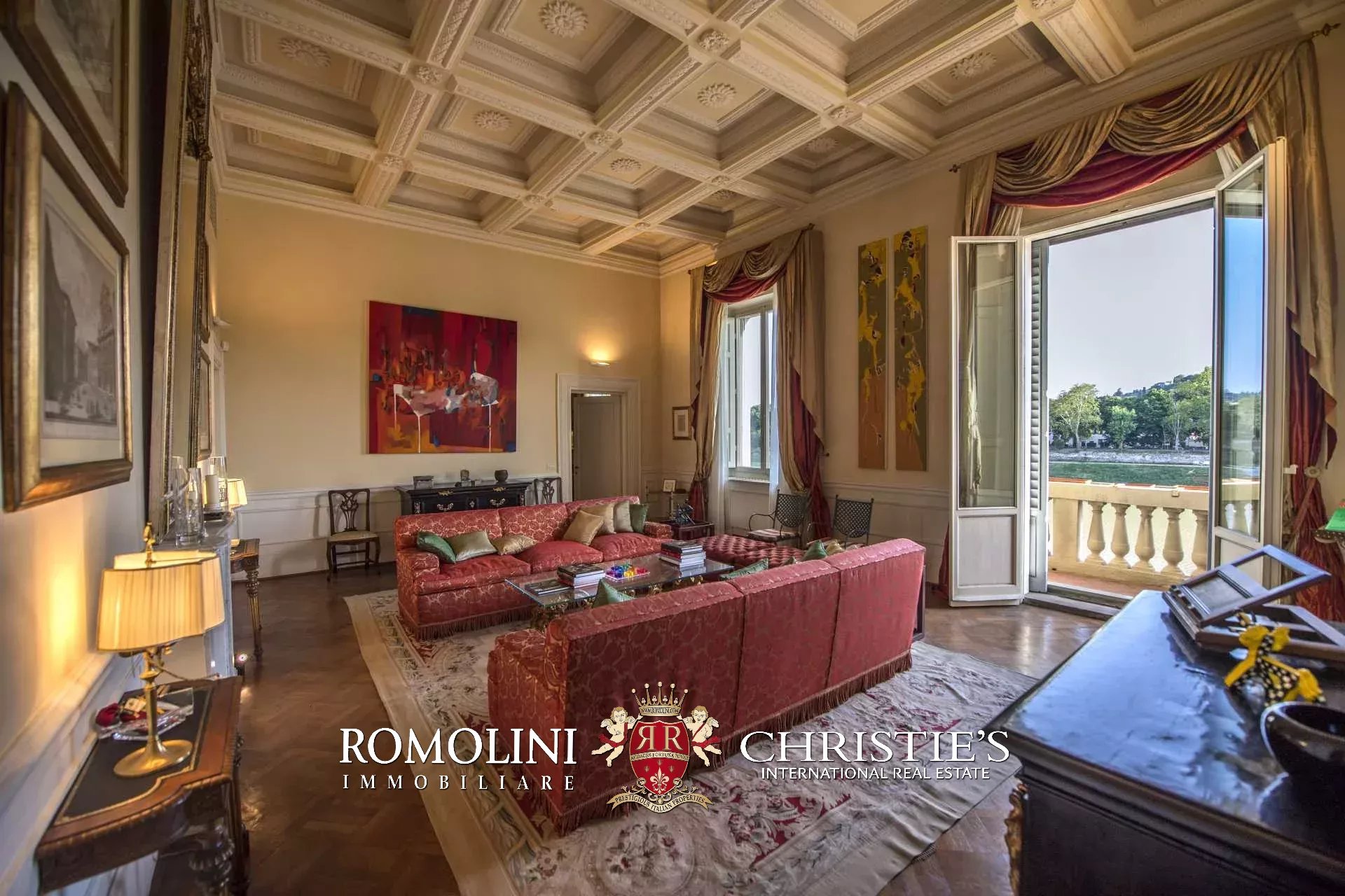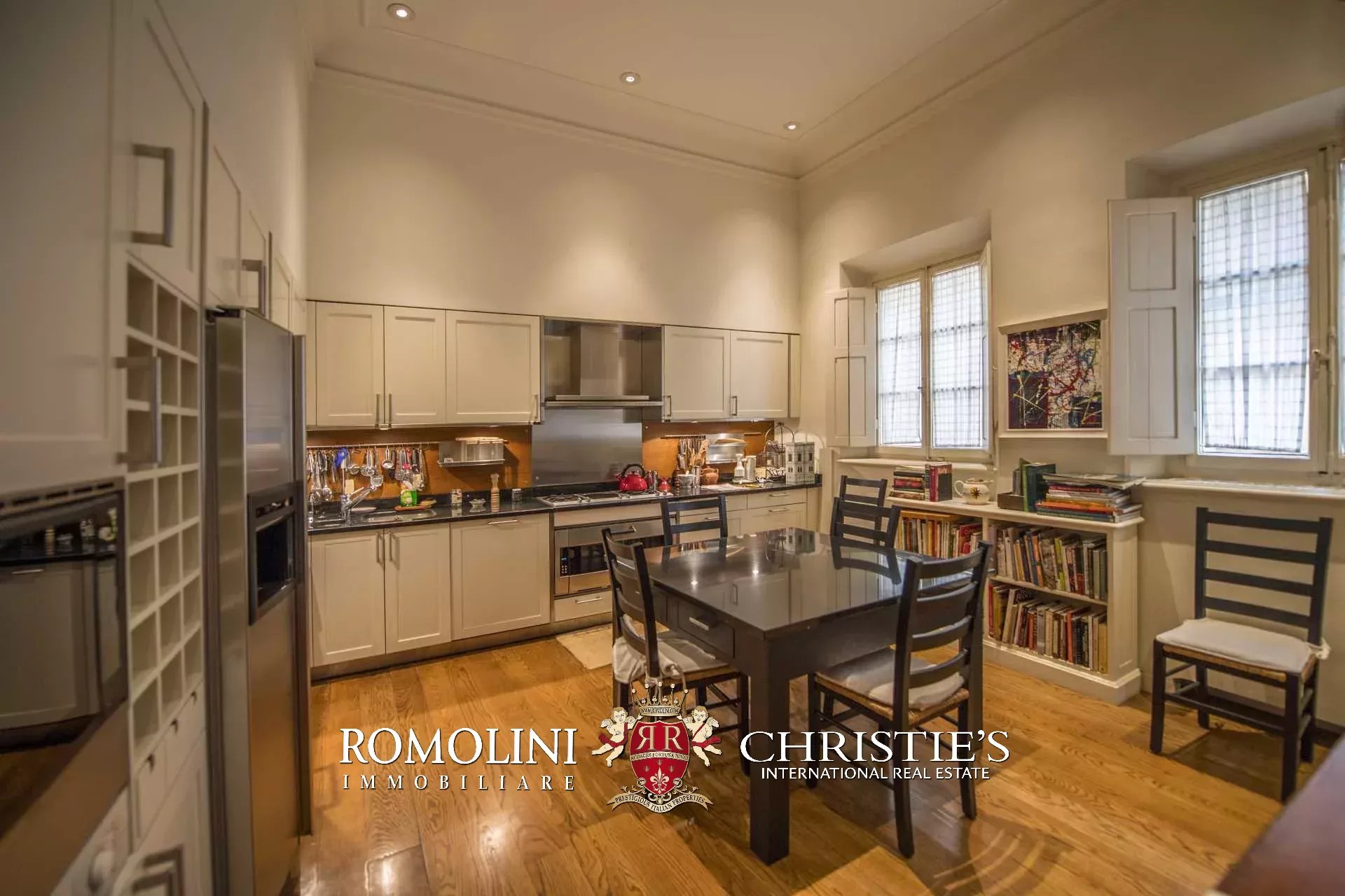 Die Wohnung (330 m², 3 Schlafzimmer und 5 Badezimmer) befindet sich im ersten Stock einem historischen Gebäude im historischen Zentrum von Florenz, am Ufer des Flusses Arno.