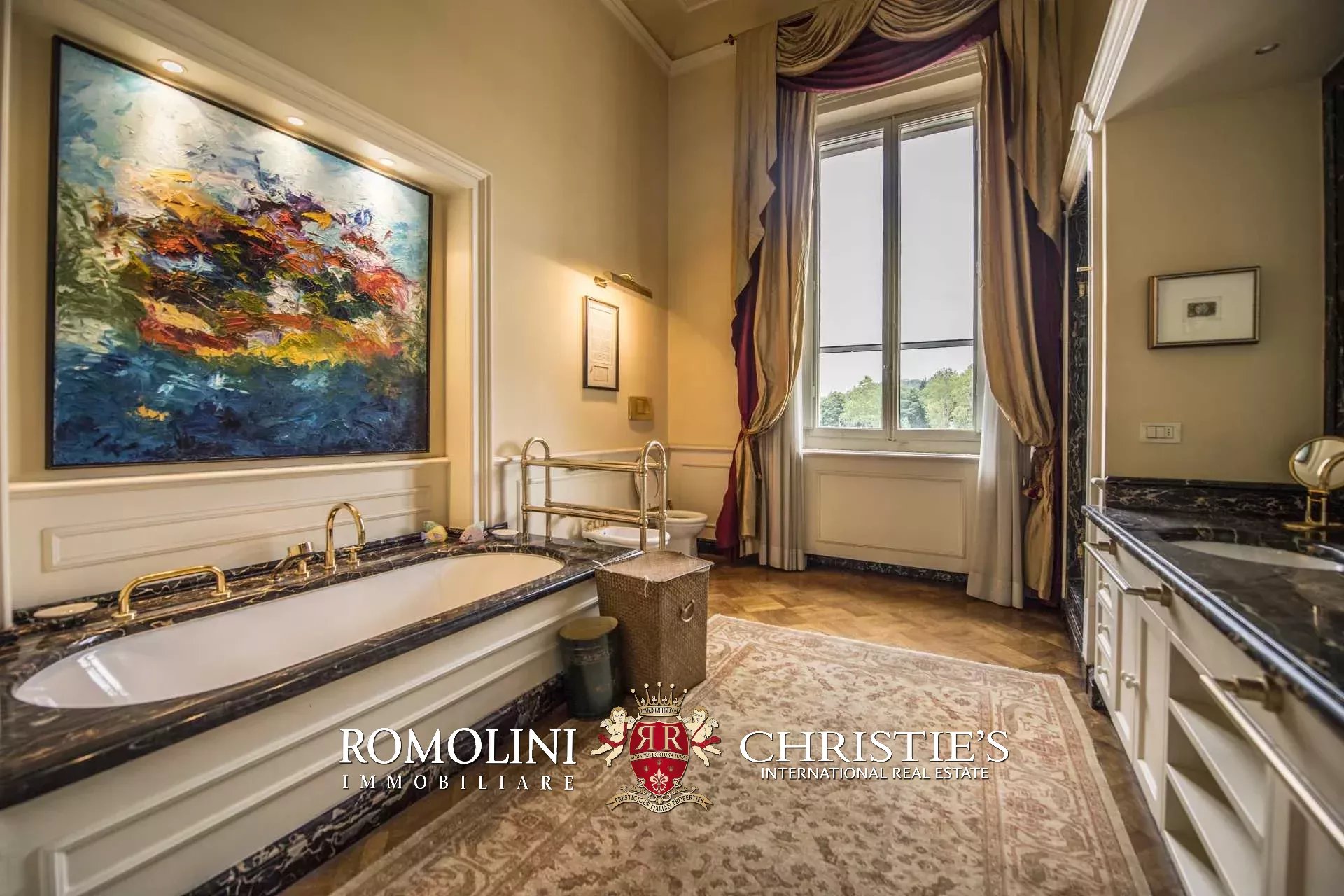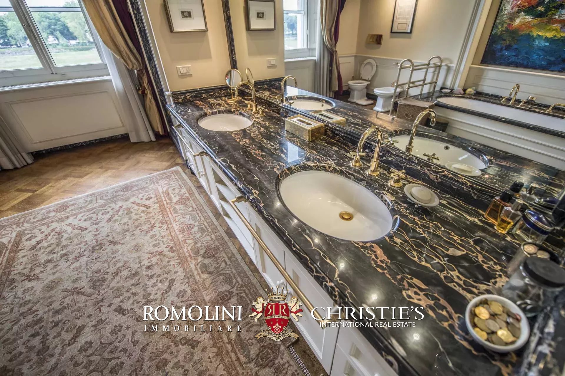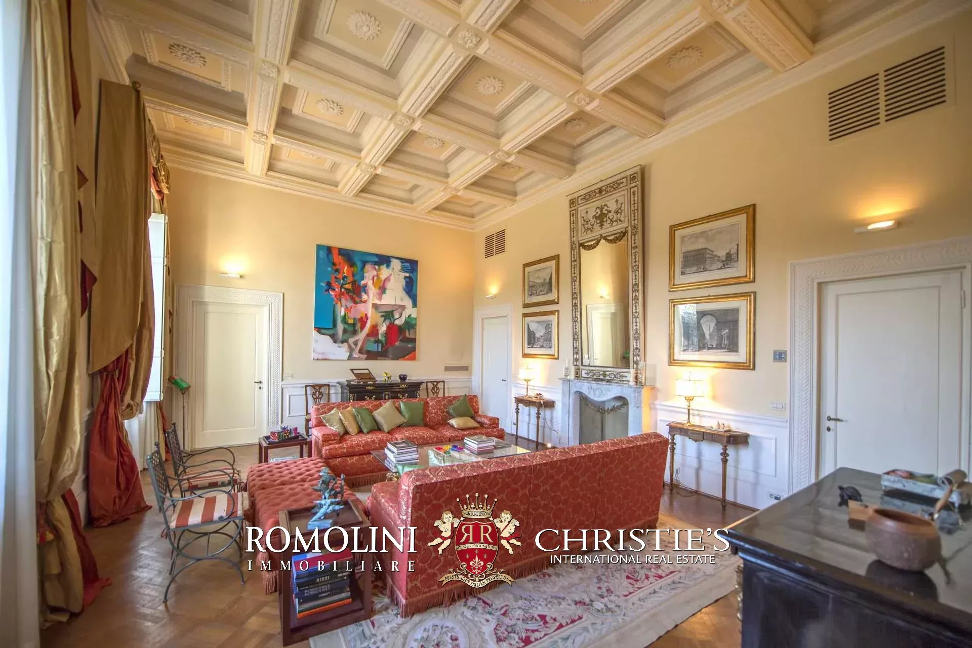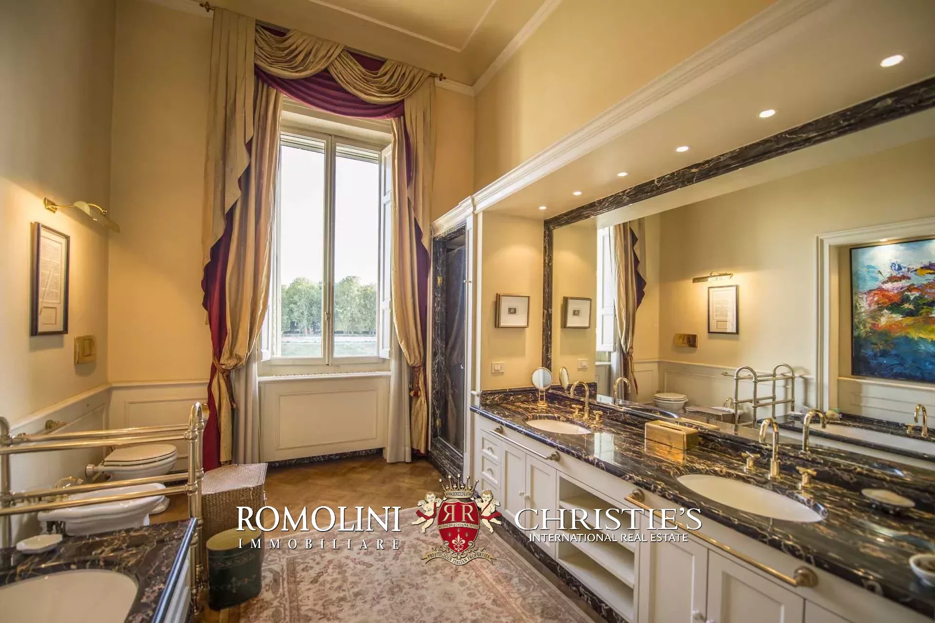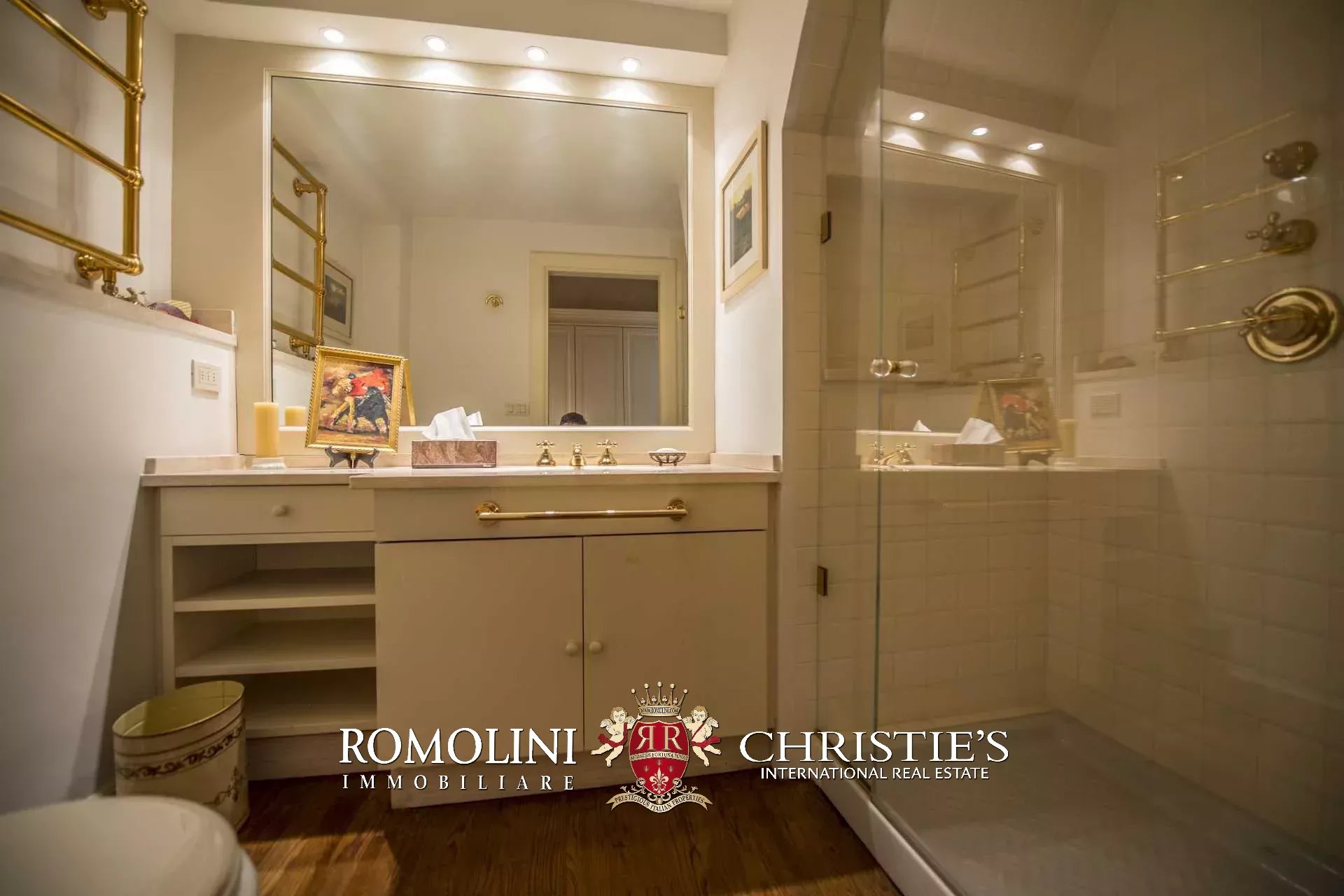 Die Wohnung (330 m², 3 Schlafzimmer und 5 Badezimmer) befindet sich im ersten Stock einem historischen Gebäude im historischen Zentrum von Florenz, am Ufer des Flusses Arno.