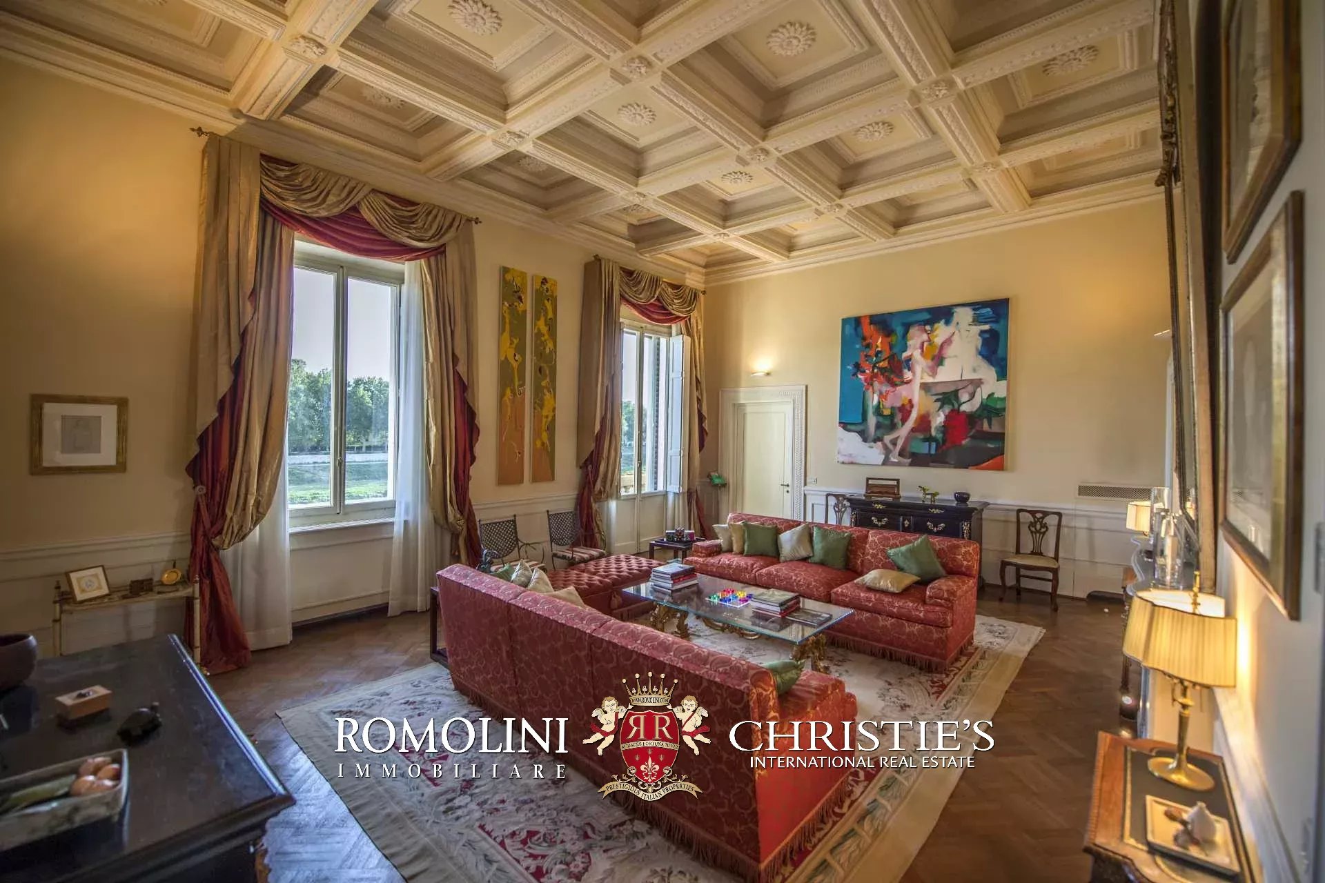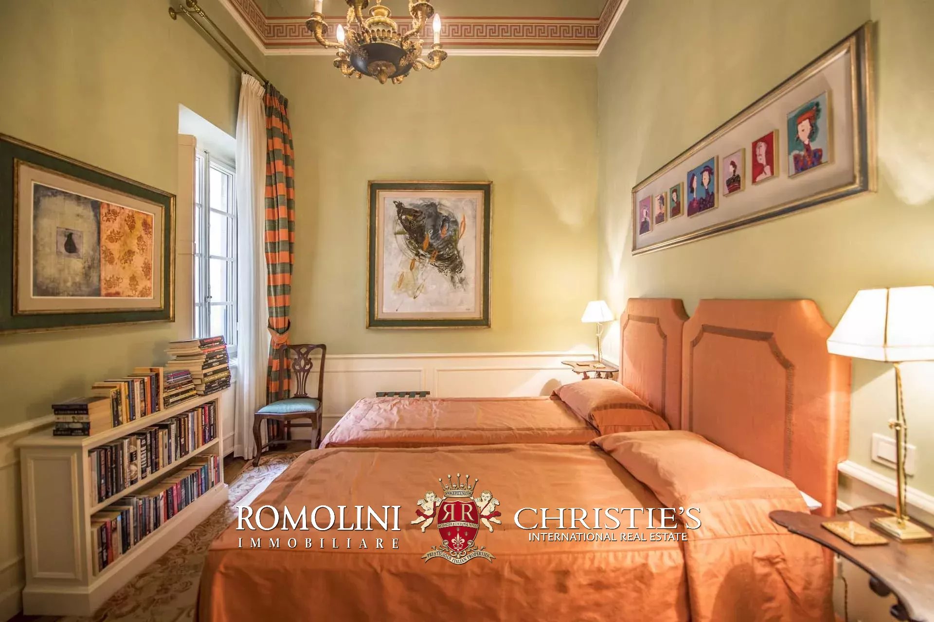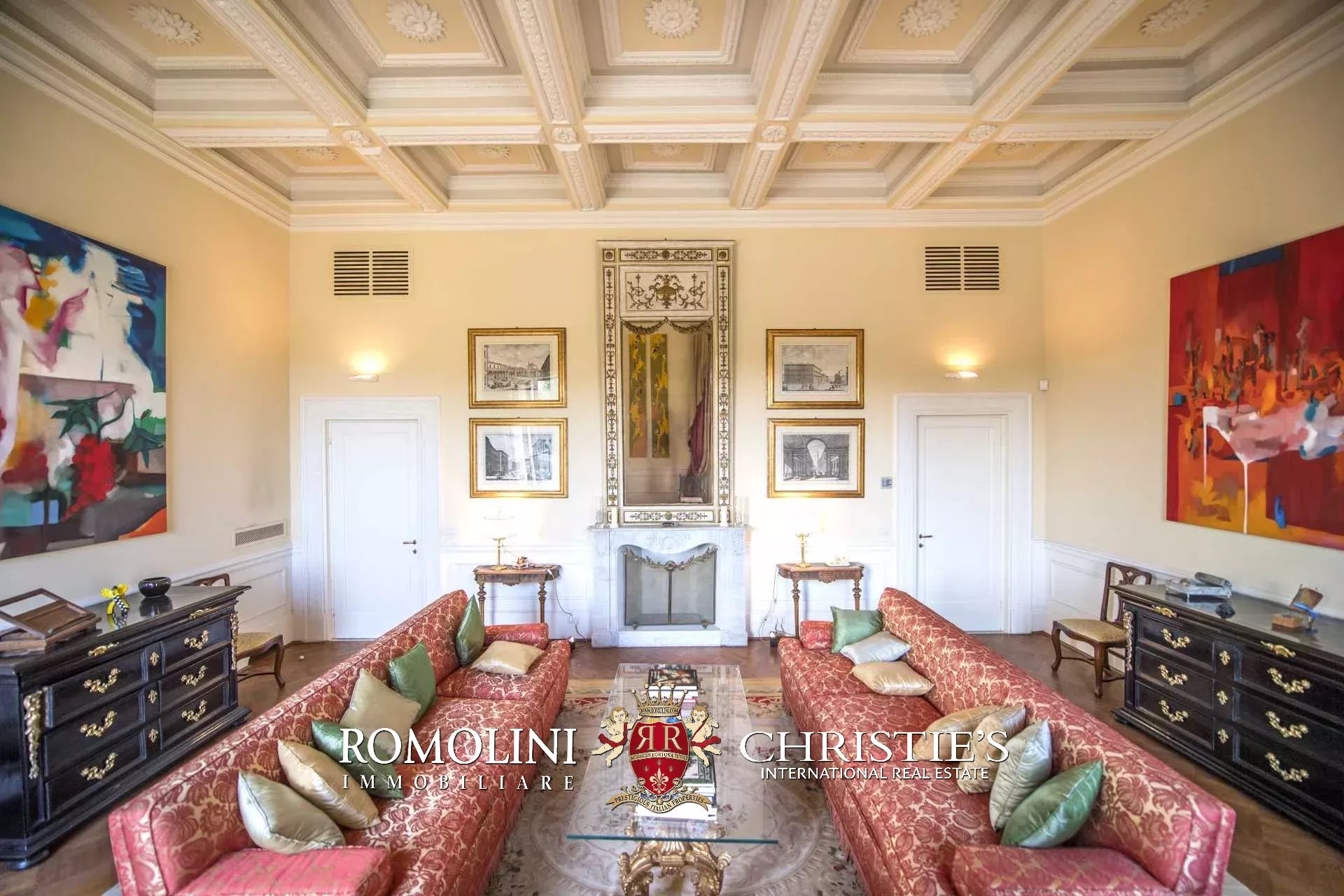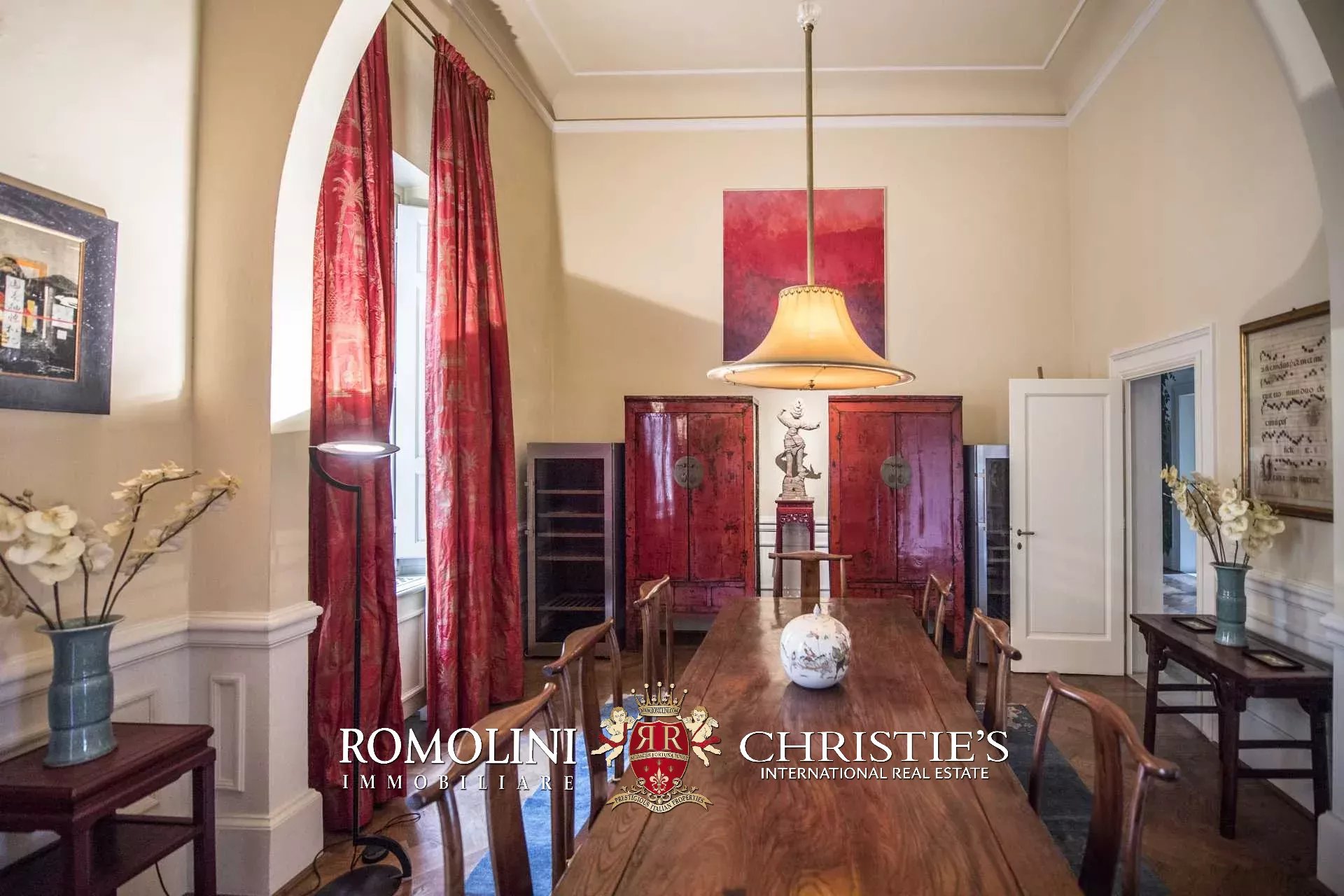Die Wohnung (330 m², 3 Schlafzimmer und 5 Badezimmer) befindet sich im ersten Stock einem historischen Gebäude im historischen Zentrum von Florenz, am Ufer des Flusses Arno.
