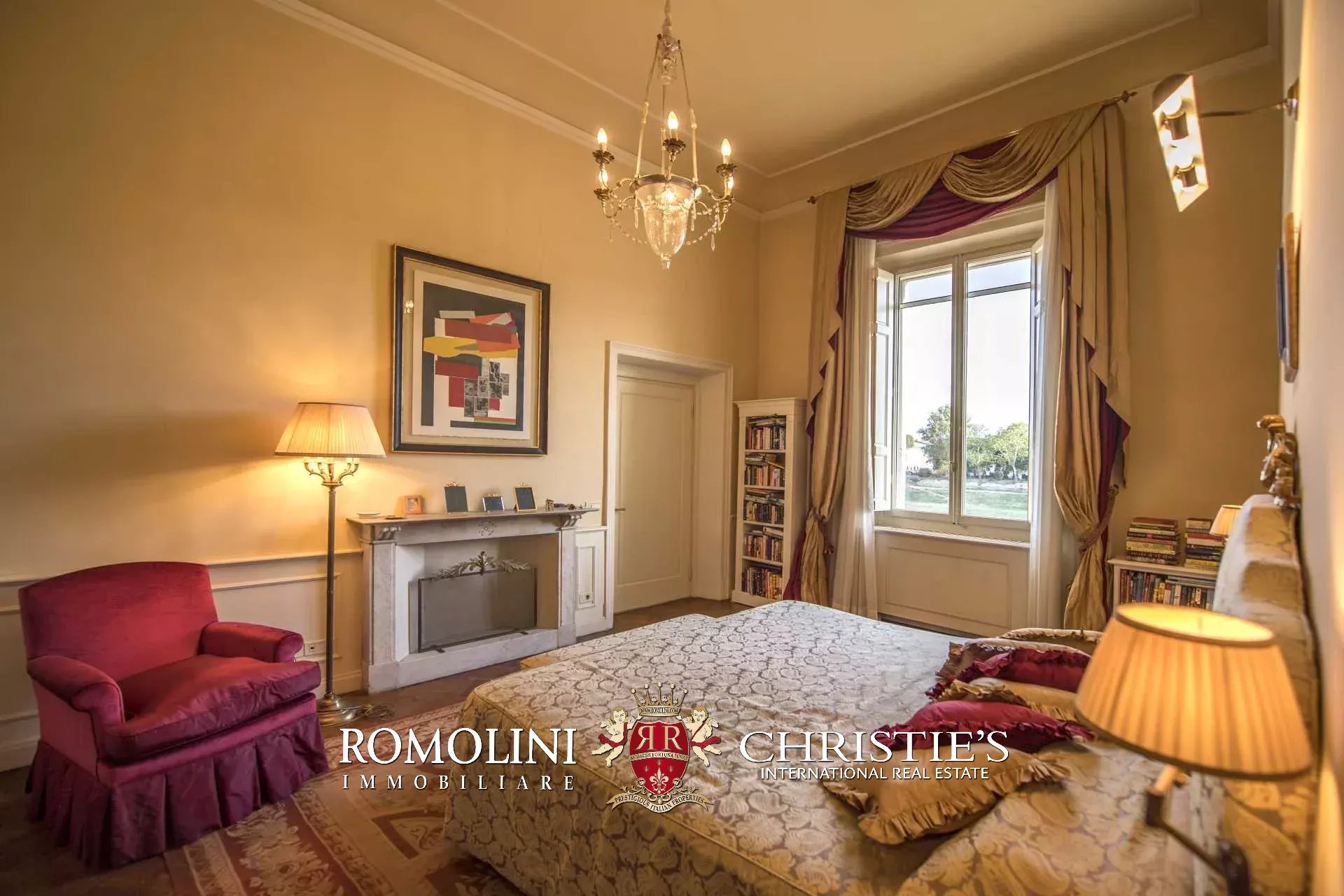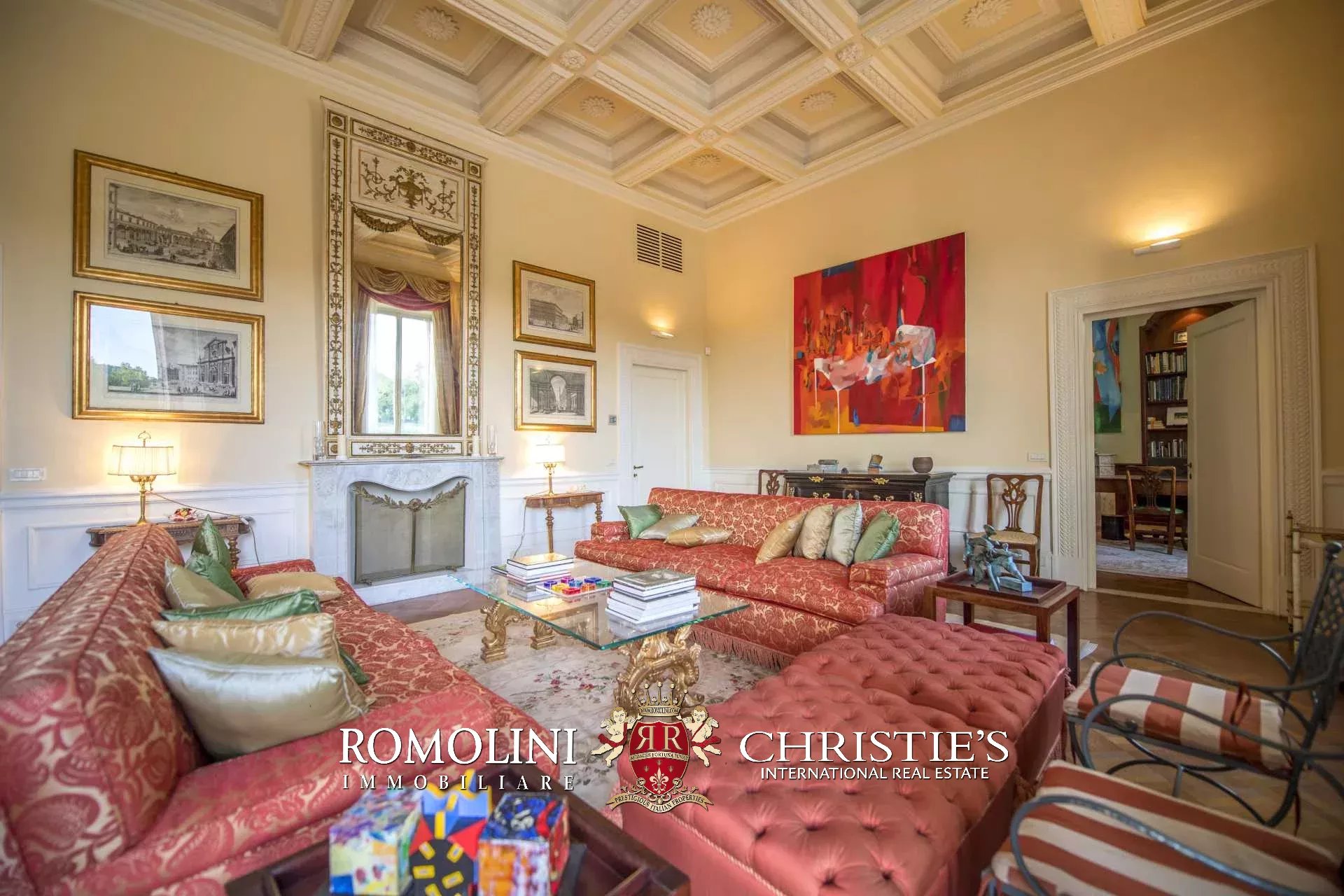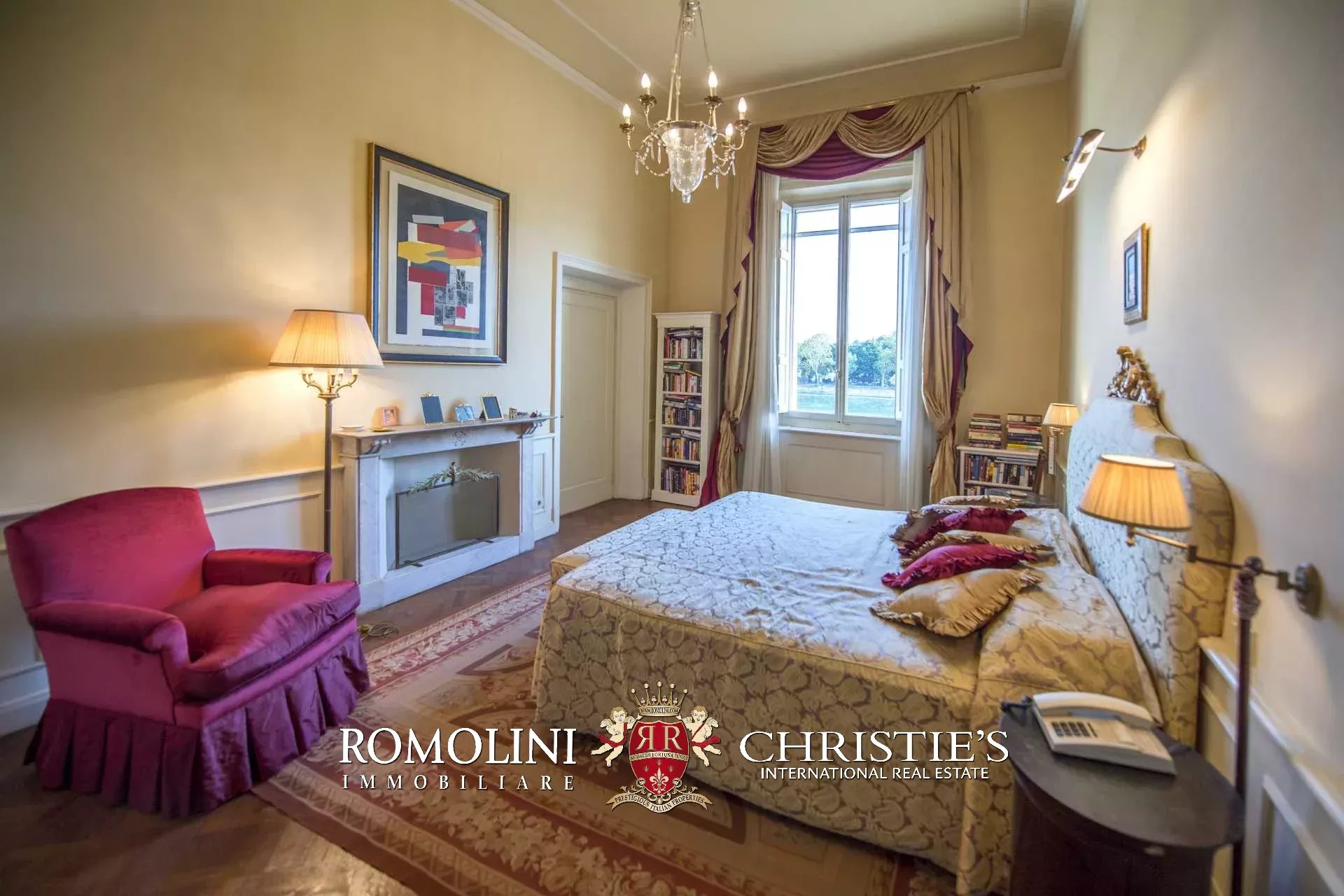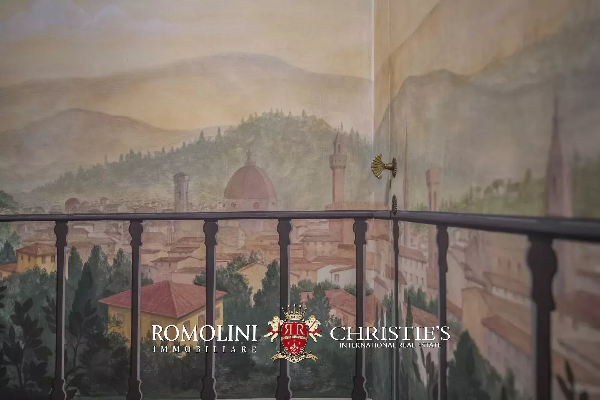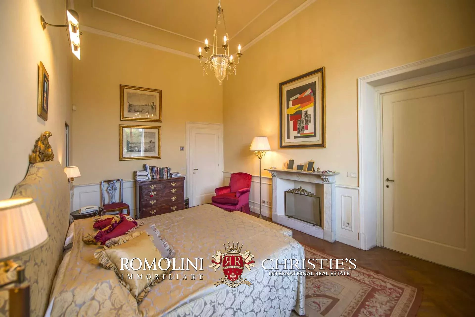 Der Zugang zur Wohnung erfolgt über eine Steintreppe oder über einen Aufzug. Vom Eingangsbereich gelangen Sie zu einem Korridor mit Öffnungen auf beiden Seiten. Auf der rechten Seite finden Sie das Hauptschlafzimmer mit Kamin, eigenem Badezimmer und begehbarem Kleiderschrank, ein Wohnzimmer mit Kamin und Kassettendecke, und ein Arbeitszimmer/Fernsehzimmer mit Bar. Das Wohnzimmer führt zum Balkon mit Blick auf den Fluss Arno.