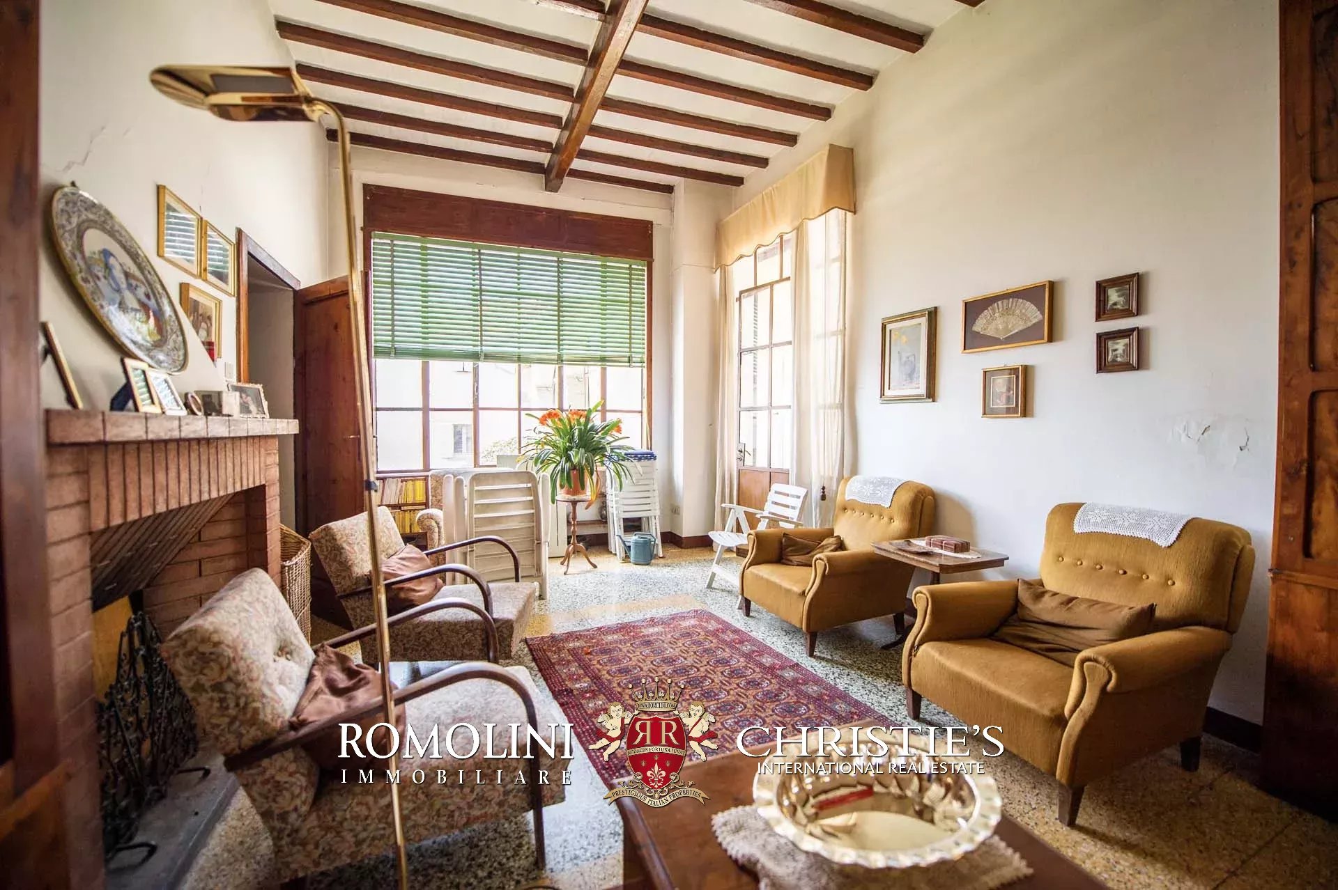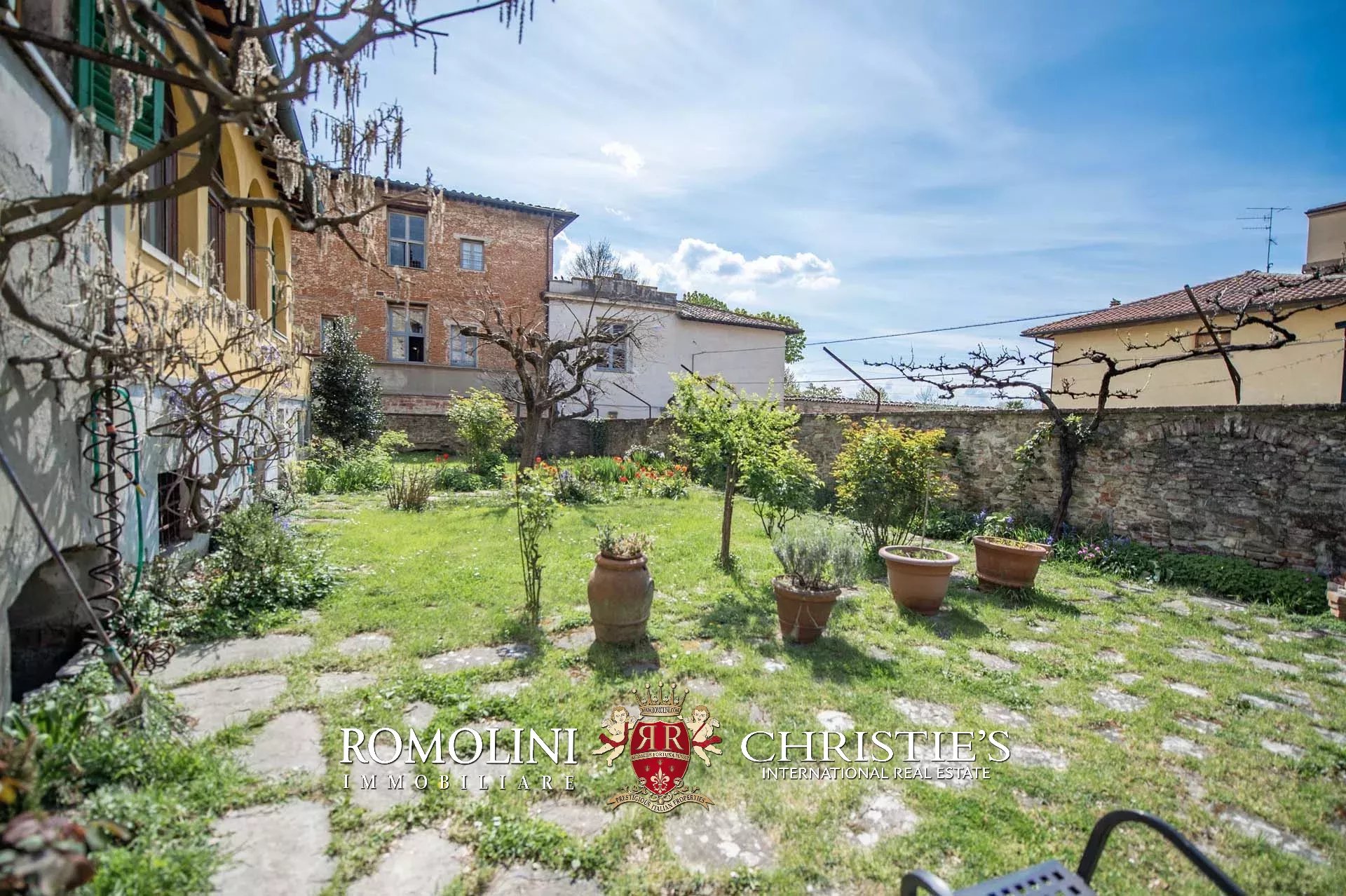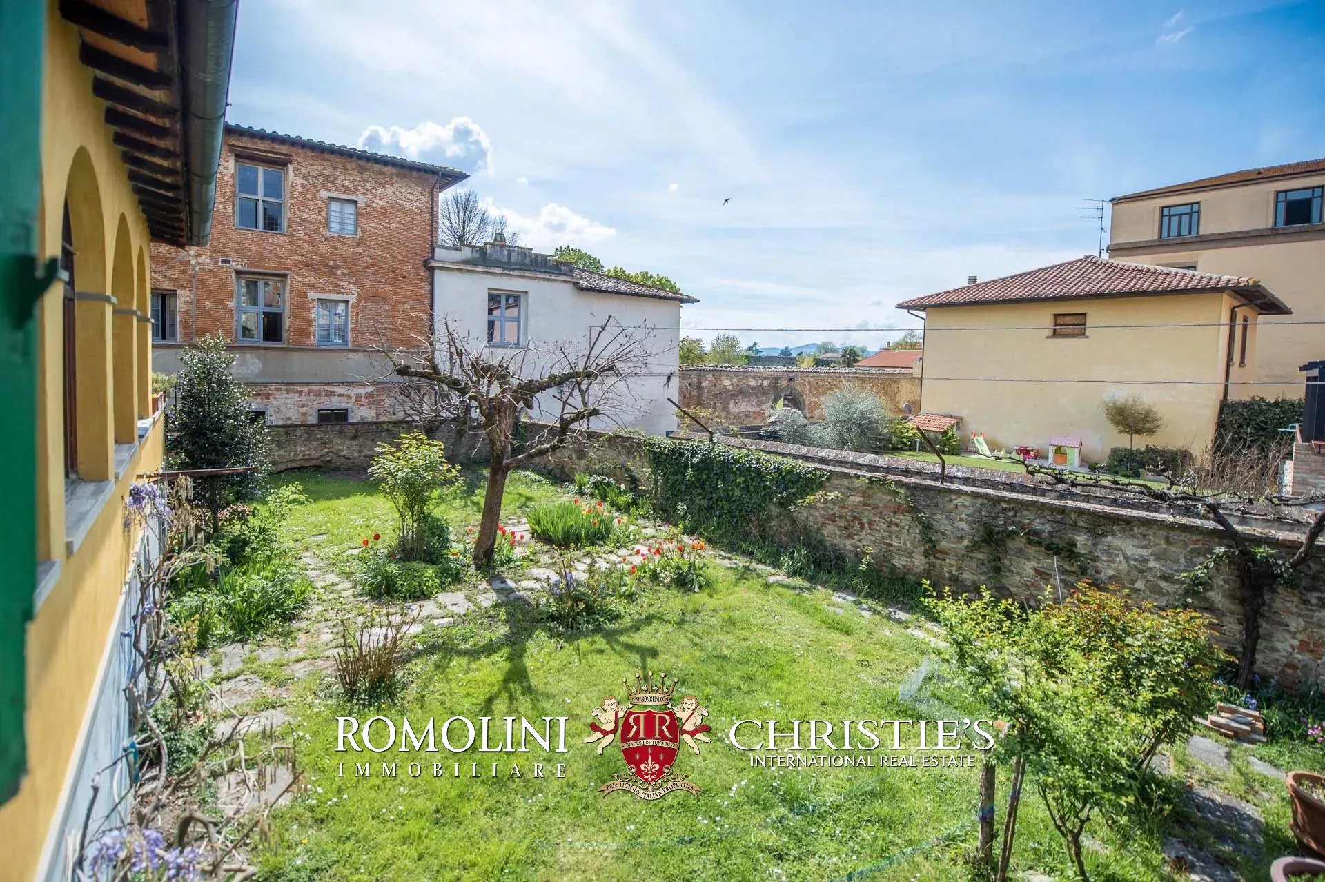 The property features, pretty rare for a historic center, an ample 200-sqm garden accessed from both the ground floor through a courtyard and the apartment by descending a staircase from the loggia. A small depot, located in a corner of the garden, allows sheltering tools and pieces of machinery needed to take care of the green areas.
