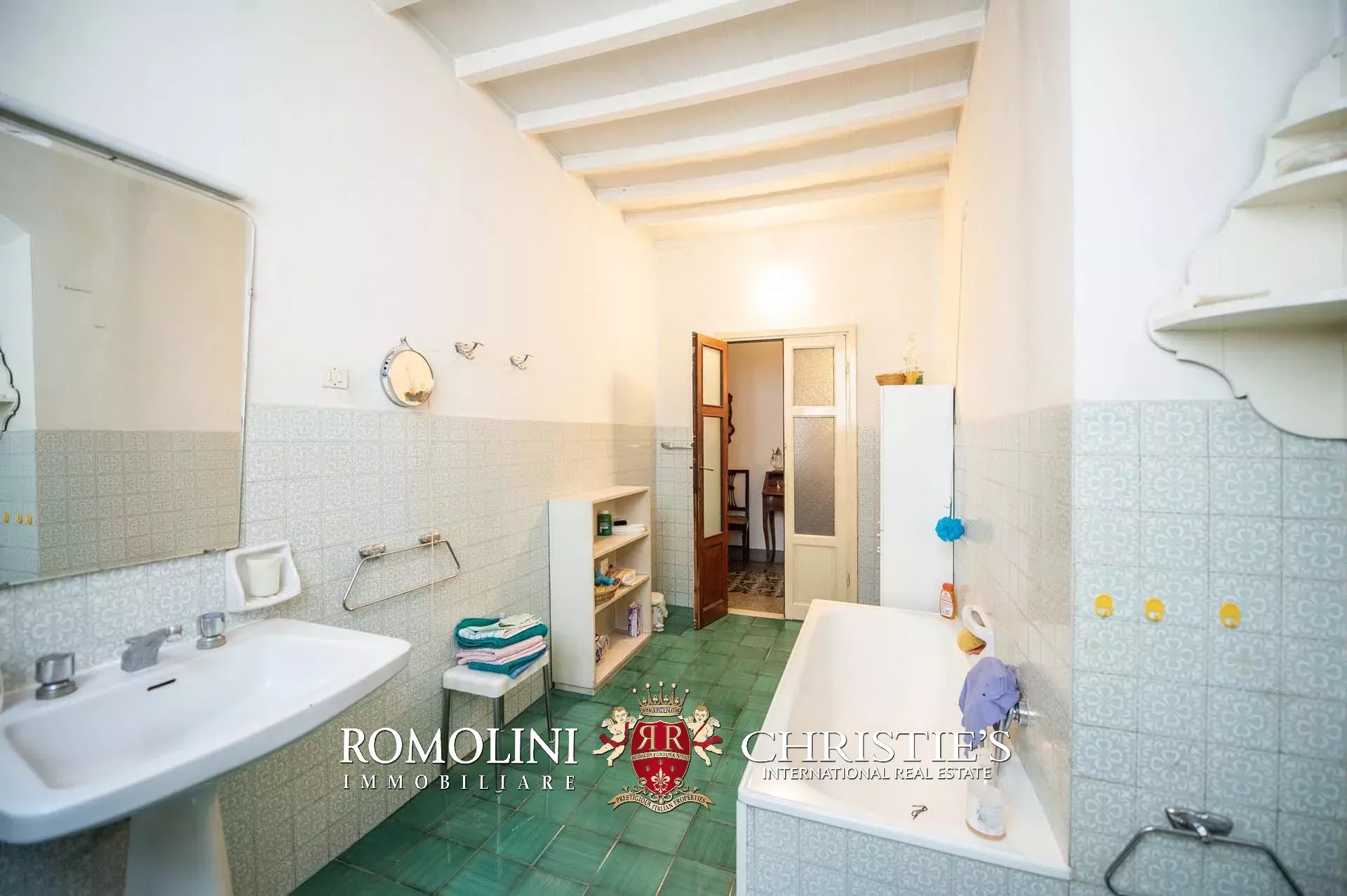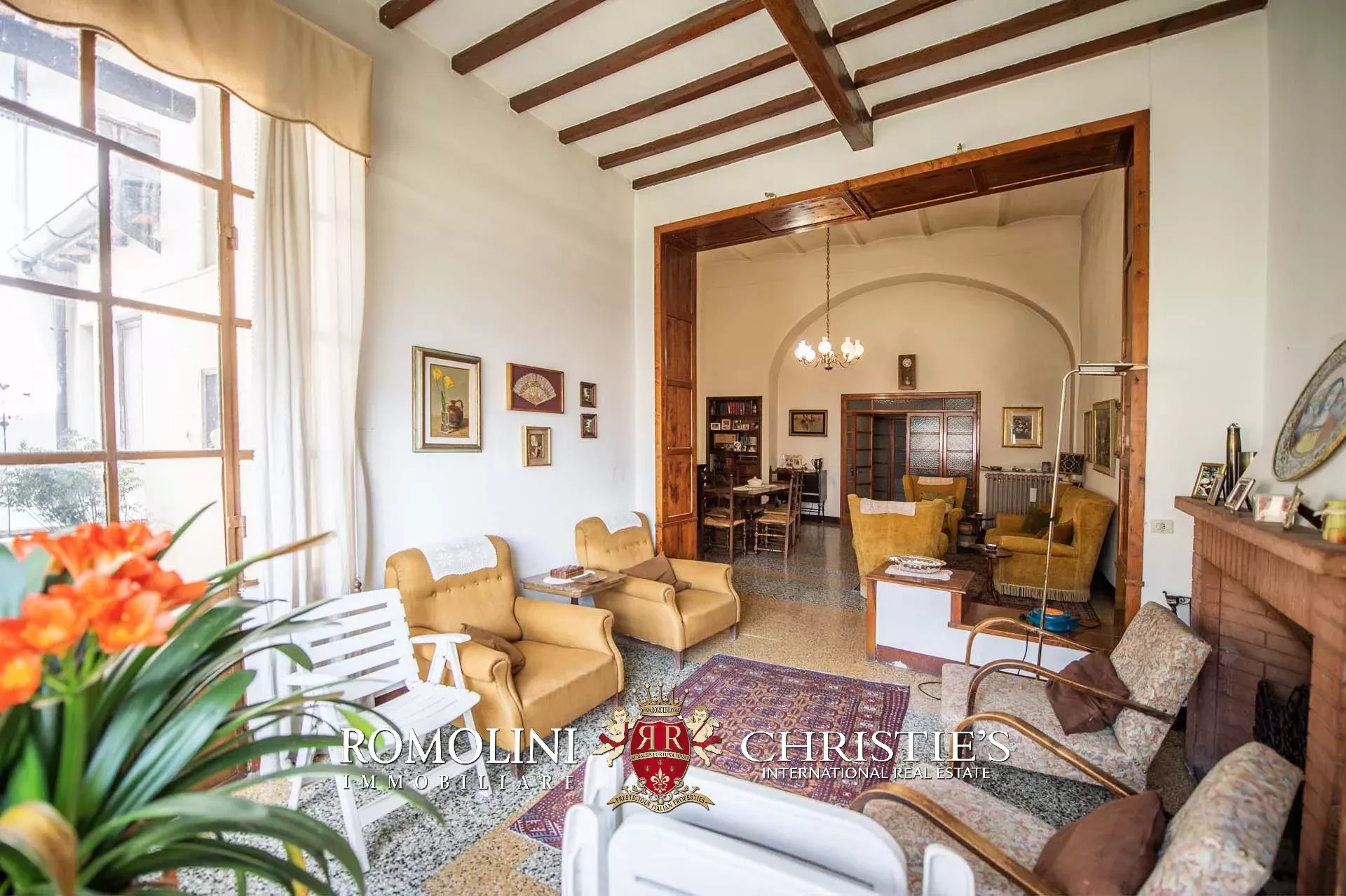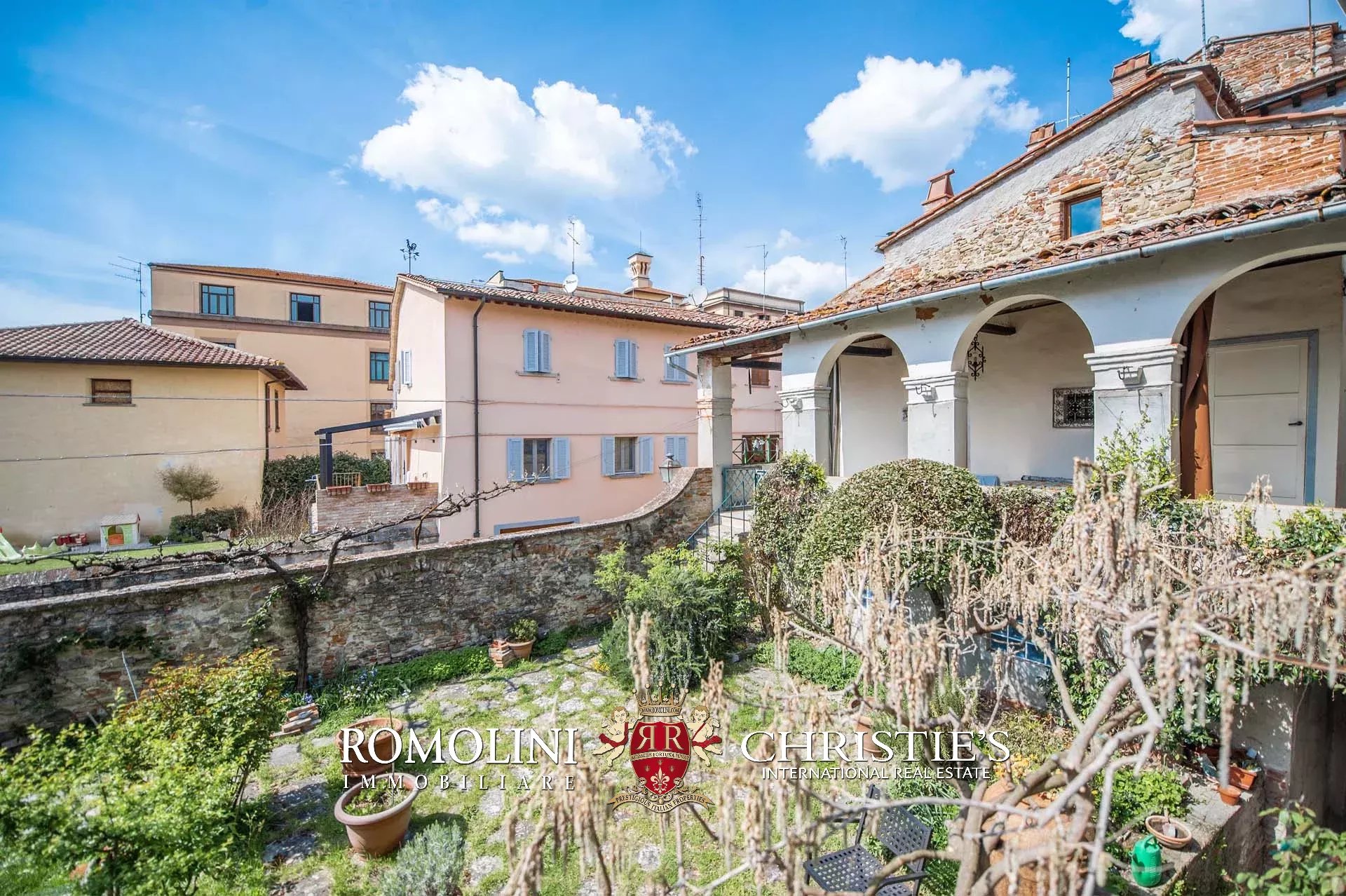 The property features, pretty rare for a historic center, an ample 200-sqm garden accessed from both the ground floor through a courtyard and the apartment by descending a staircase from the loggia. A small depot, located in a corner of the garden, allows sheltering tools and pieces of machinery needed to take care of the green areas.