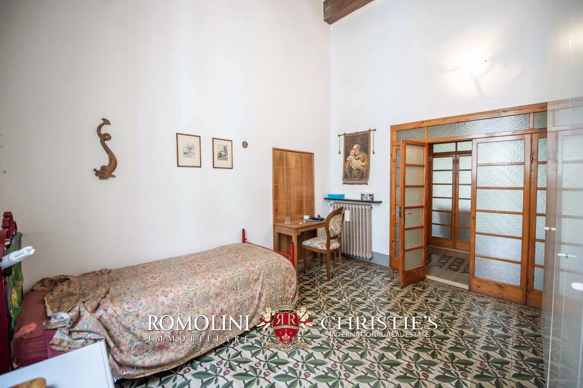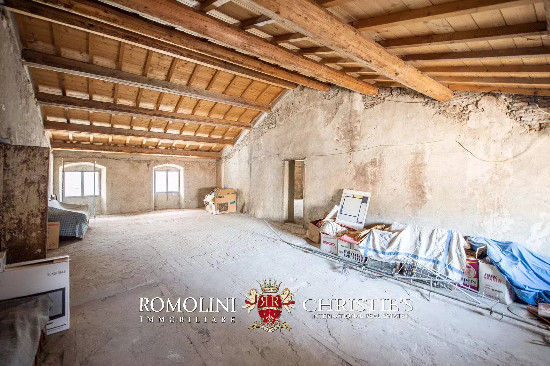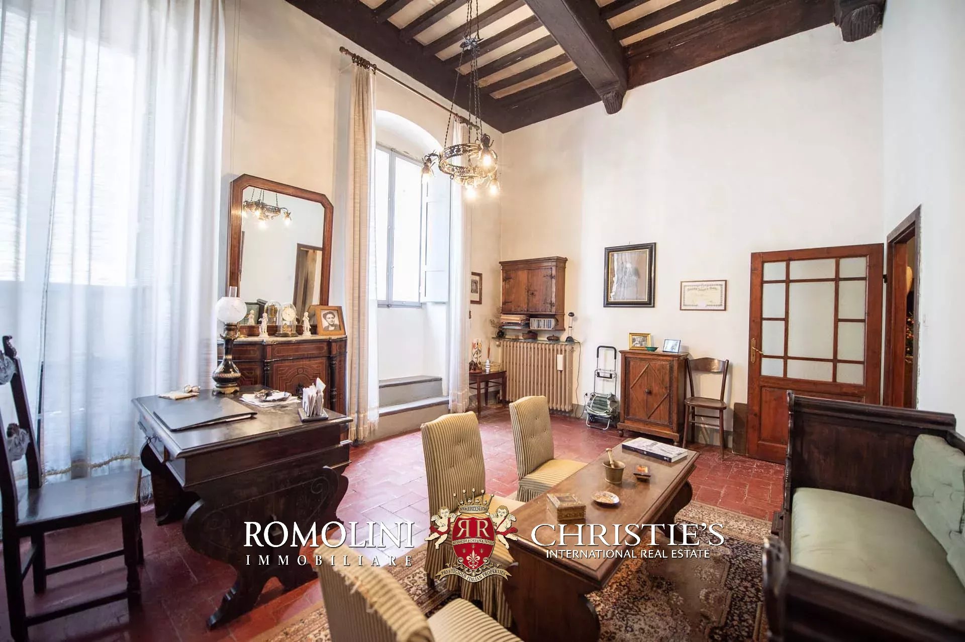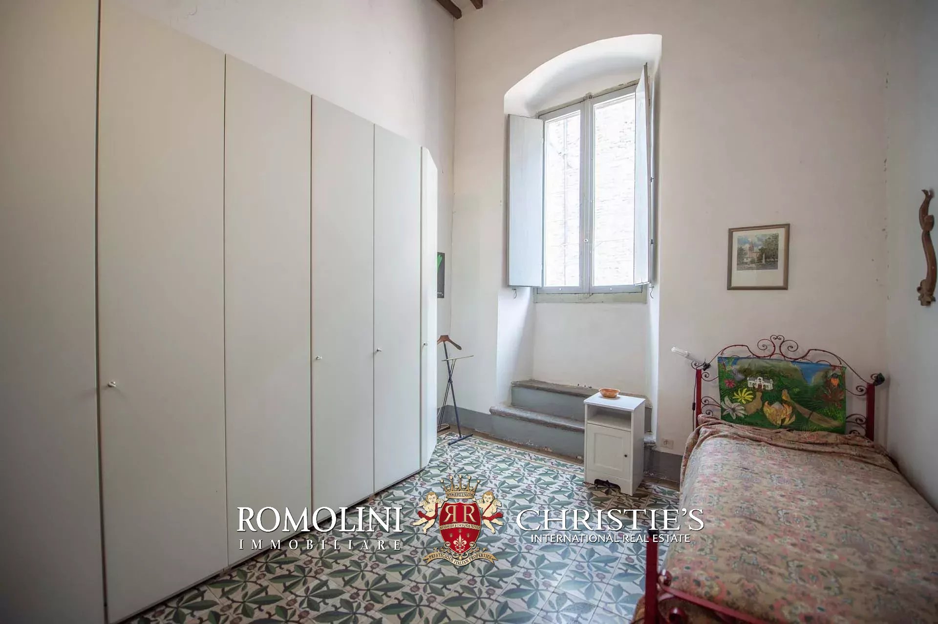 The historic building underwent conservation in 2018 and the roof has been fully remade to make it totally waterproof. Inside, the house is in excellent condition and boasts the typical features of the historic palazzi in Sansepolcro, with high ceilings, ample windows, terracotta and graniglia floors and wooden beams. Particularly interesting is the red-and-white checkered pattern in the original tiles of the bedrooms. The lofts, with their very high ceilings, are currently in builder’s finish but could easily be completed and used to expand livable surface of the apartment.