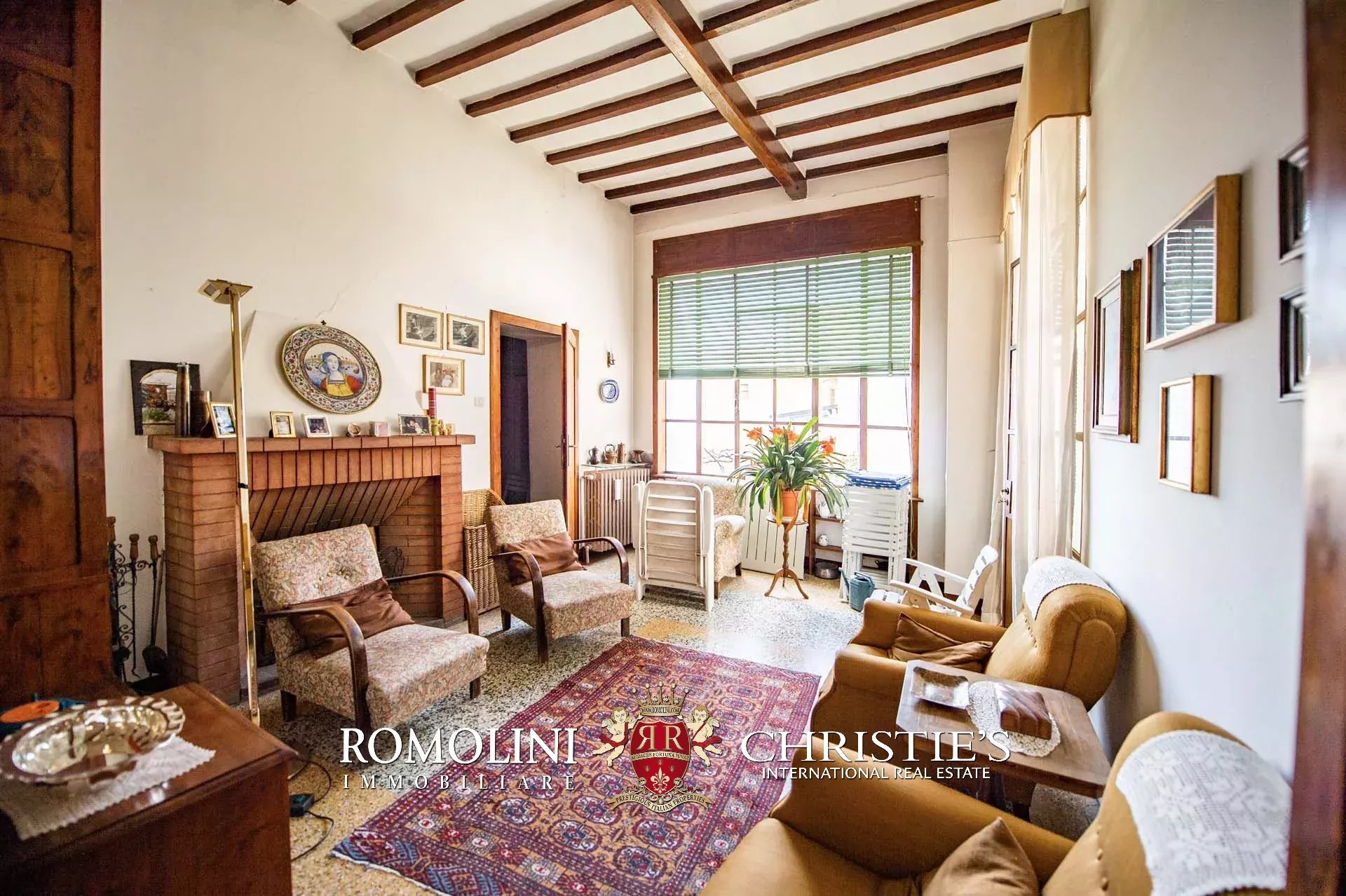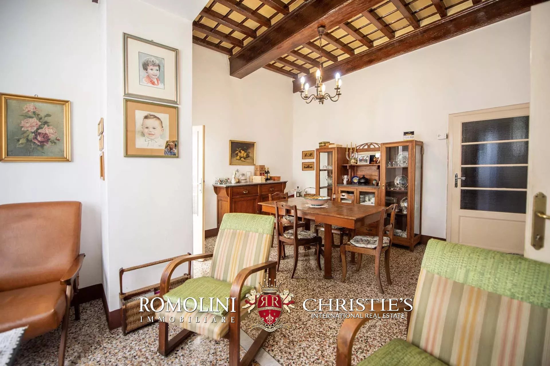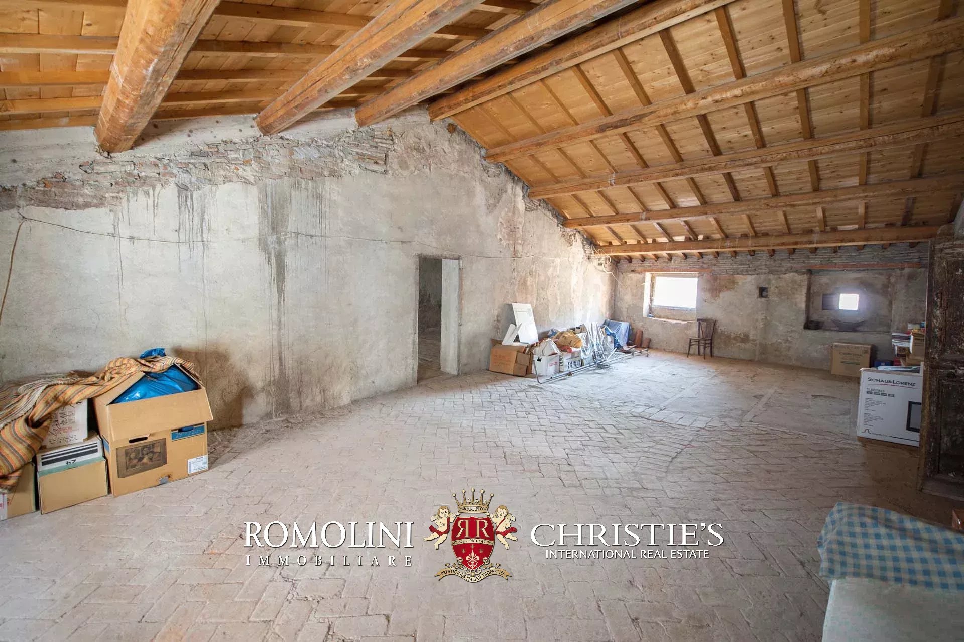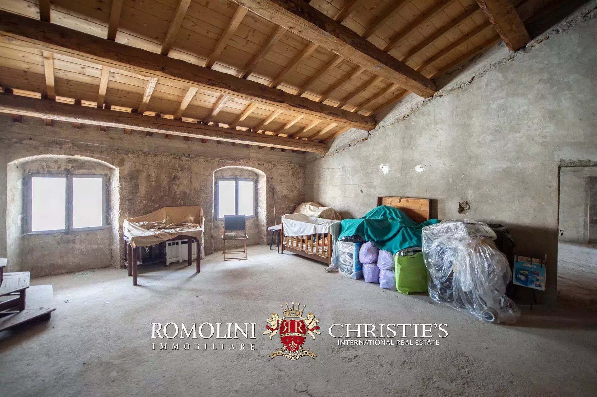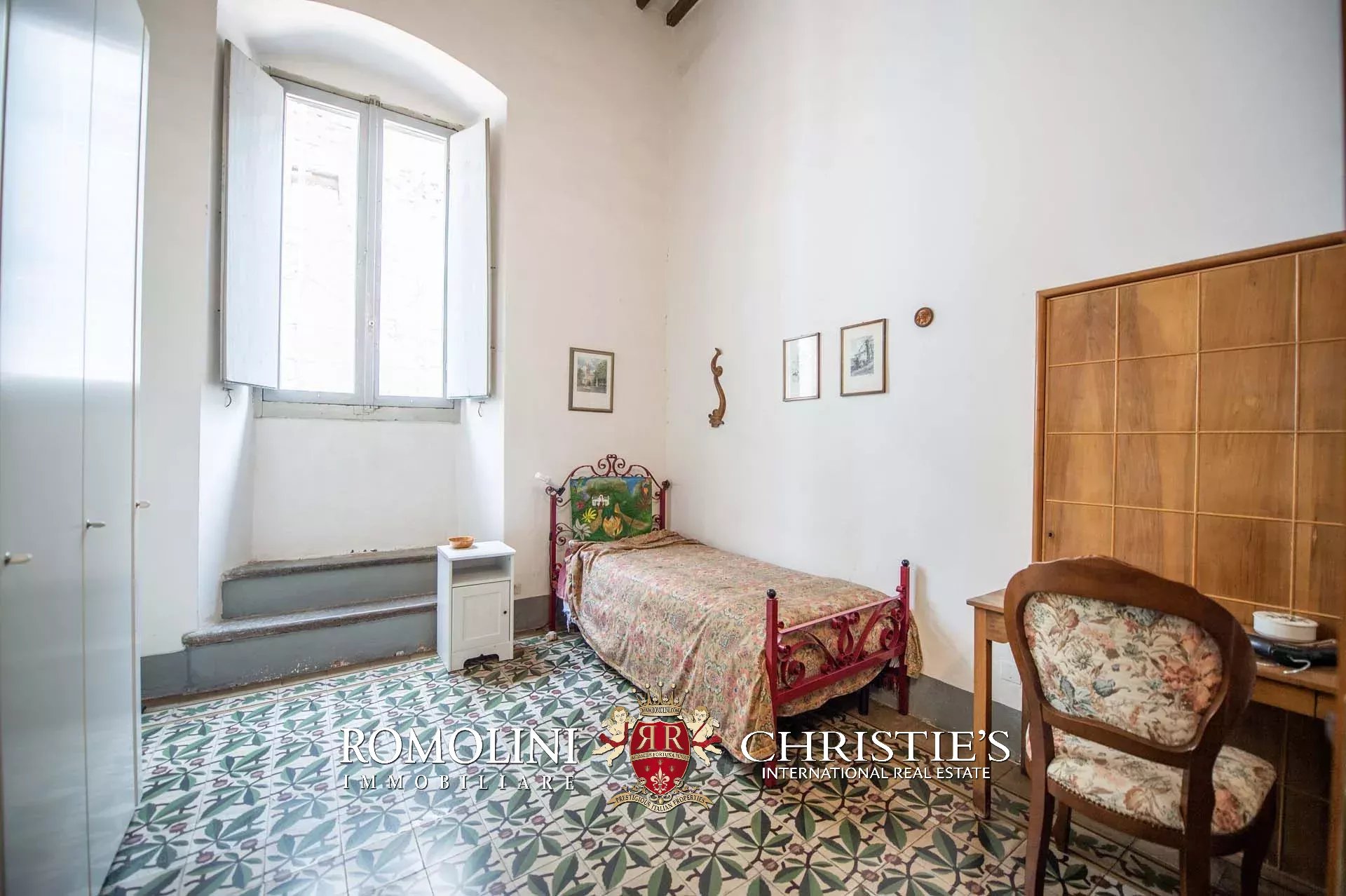 The historic building underwent conservation in 2018 and the roof has been fully remade to make it totally waterproof. Inside, the house is in excellent condition and boasts the typical features of the historic palazzi in Sansepolcro, with high ceilings, ample windows, terracotta and graniglia floors and wooden beams. Particularly interesting is the red-and-white checkered pattern in the original tiles of the bedrooms. The lofts, with their very high ceilings, are currently in builder’s finish but could easily be completed and used to expand livable surface of the apartment.