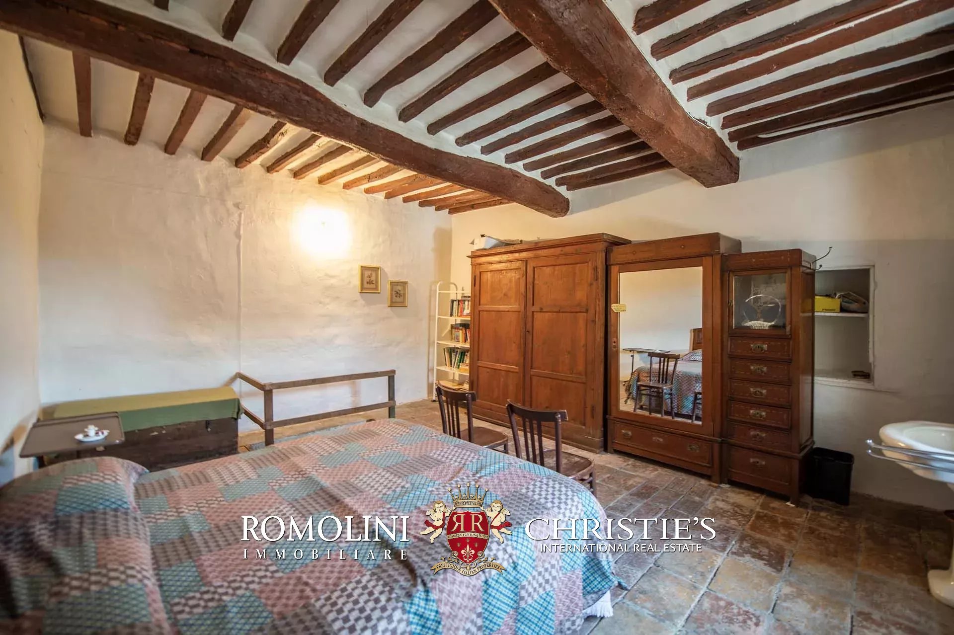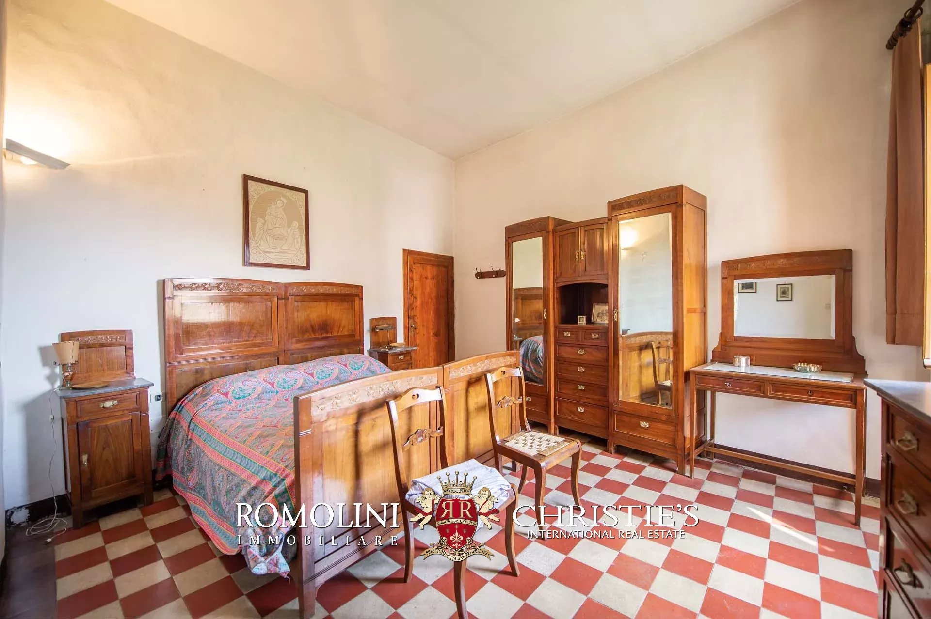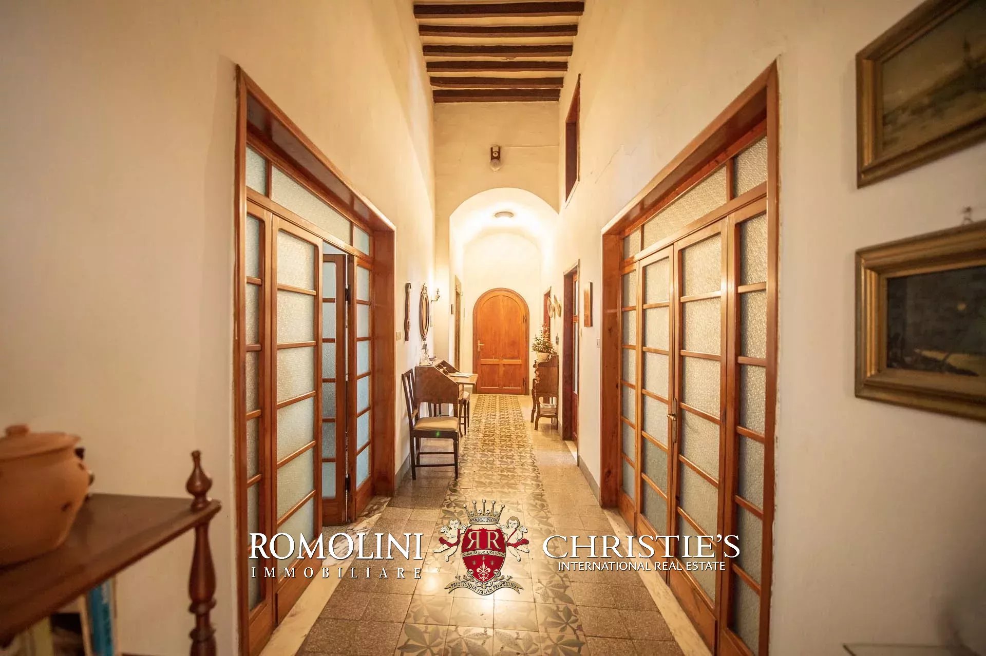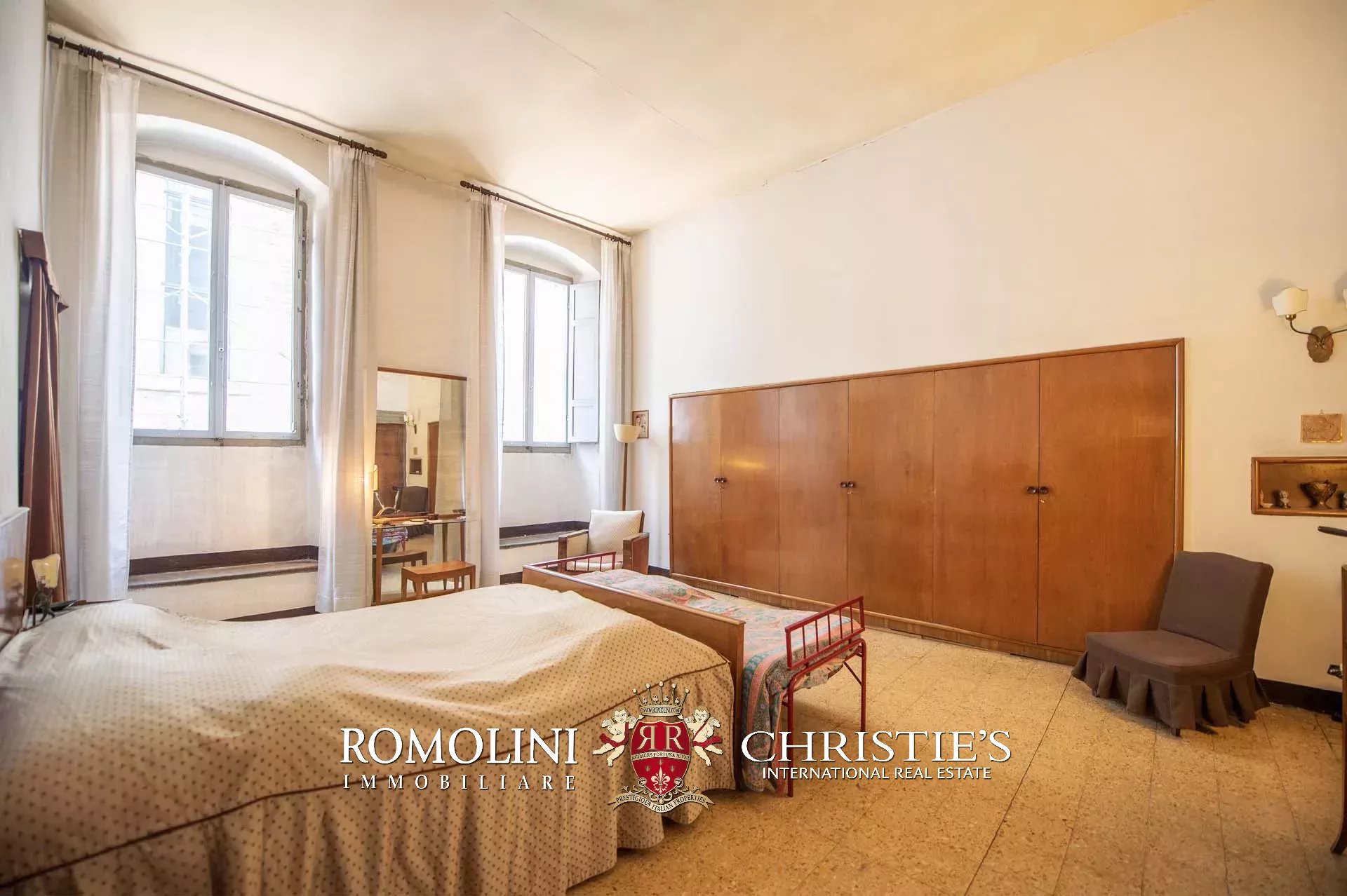The historic building underwent conservation in 2018 and the roof has been fully remade to make it totally waterproof. Inside, the house is in excellent condition and boasts the typical features of the historic palazzi in Sansepolcro, with high ceilings, ample windows, terracotta and graniglia floors and wooden beams. Particularly interesting is the red-and-white checkered pattern in the original tiles of the bedrooms. The lofts, with their very high ceilings, are currently in builder’s finish but could easily be completed and used to expand livable surface of the apartment.