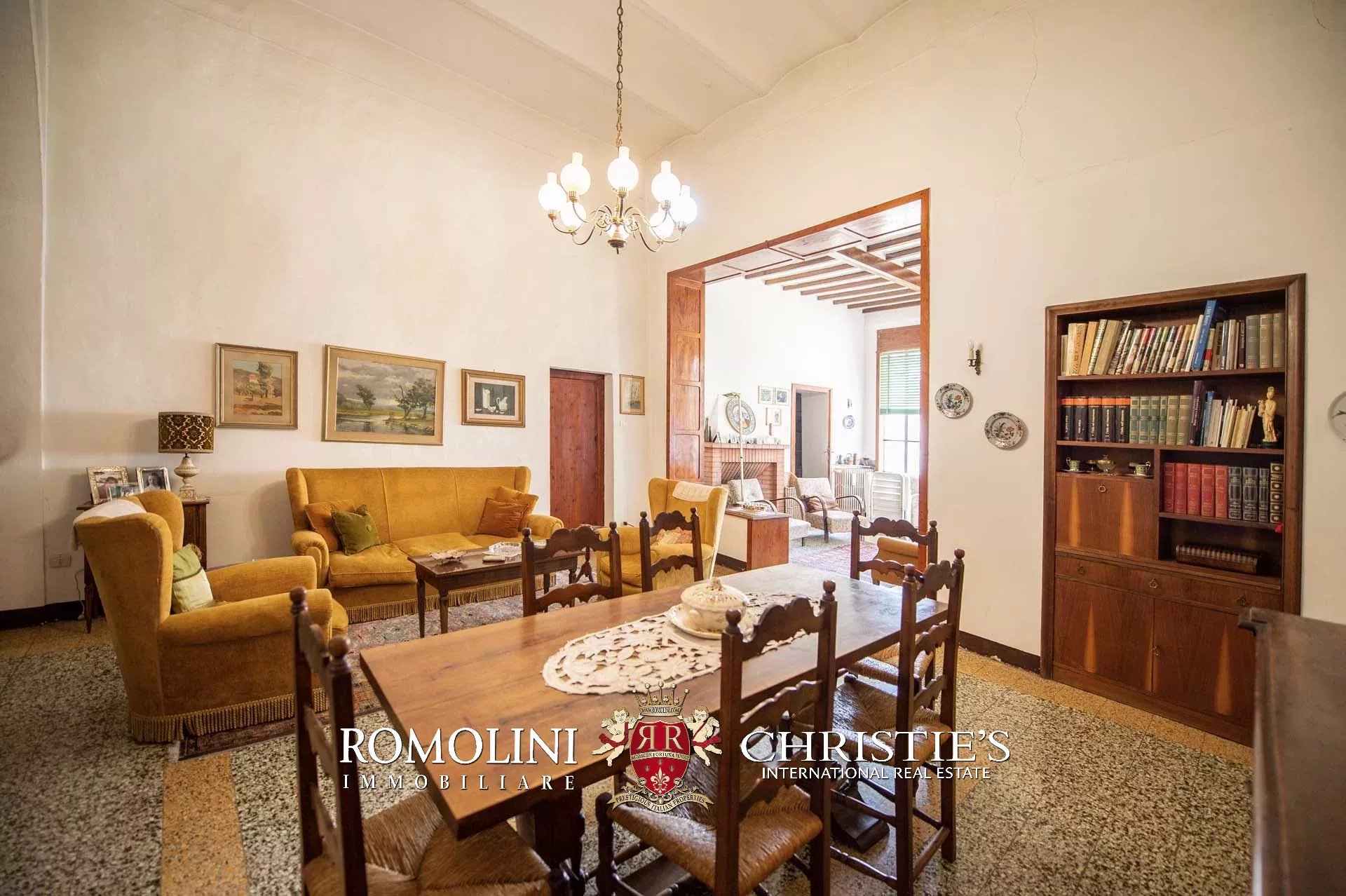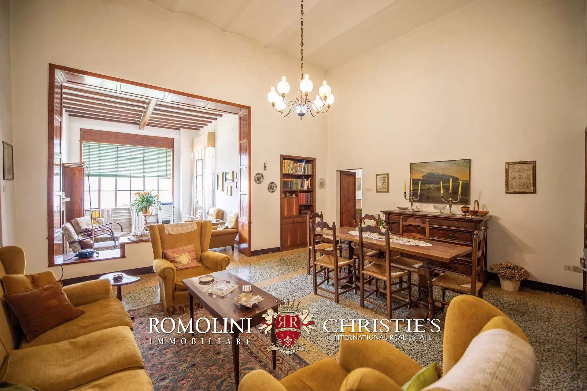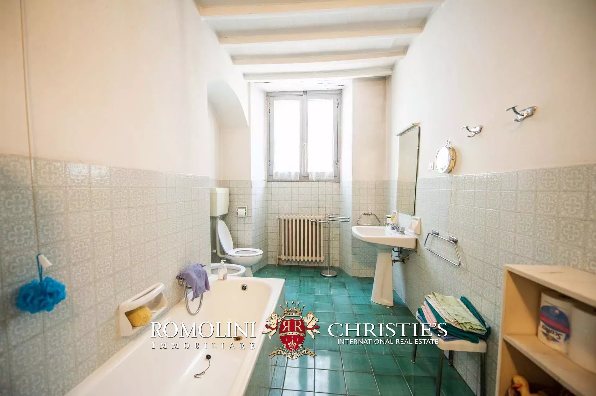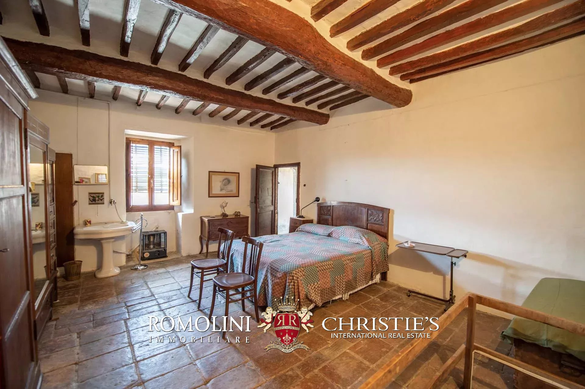The historic building underwent conservation in 2018 and the roof has been fully remade to make it totally waterproof. Inside, the house is in excellent condition and boasts the typical features of the historic palazzi in Sansepolcro, with high ceilings, ample windows, terracotta and graniglia floors and wooden beams. Particularly interesting is the red-and-white checkered pattern in the original tiles of the bedrooms. The lofts, with their very high ceilings, are currently in builder’s finish but could easily be completed and used to expand livable surface of the apartment.