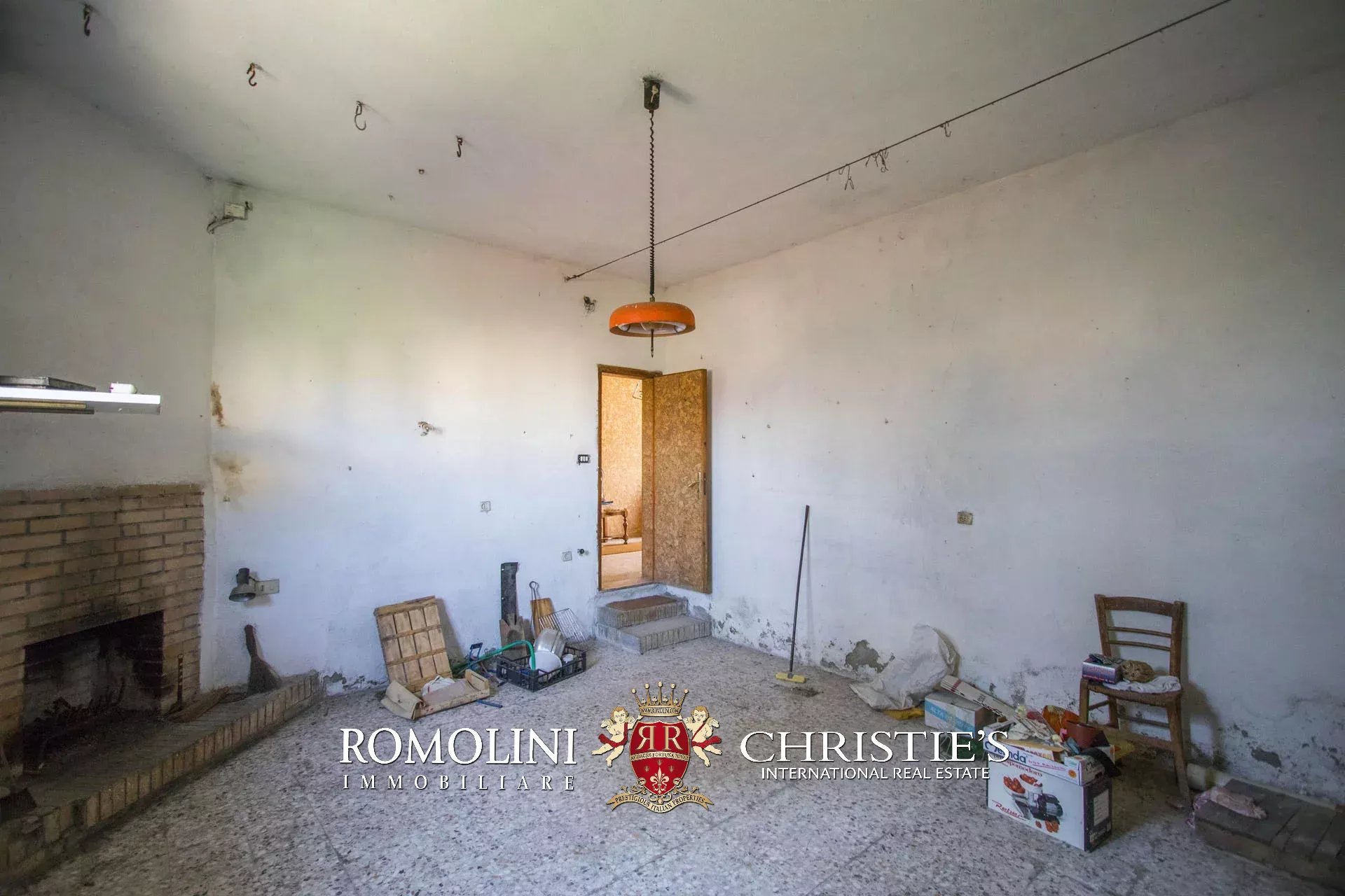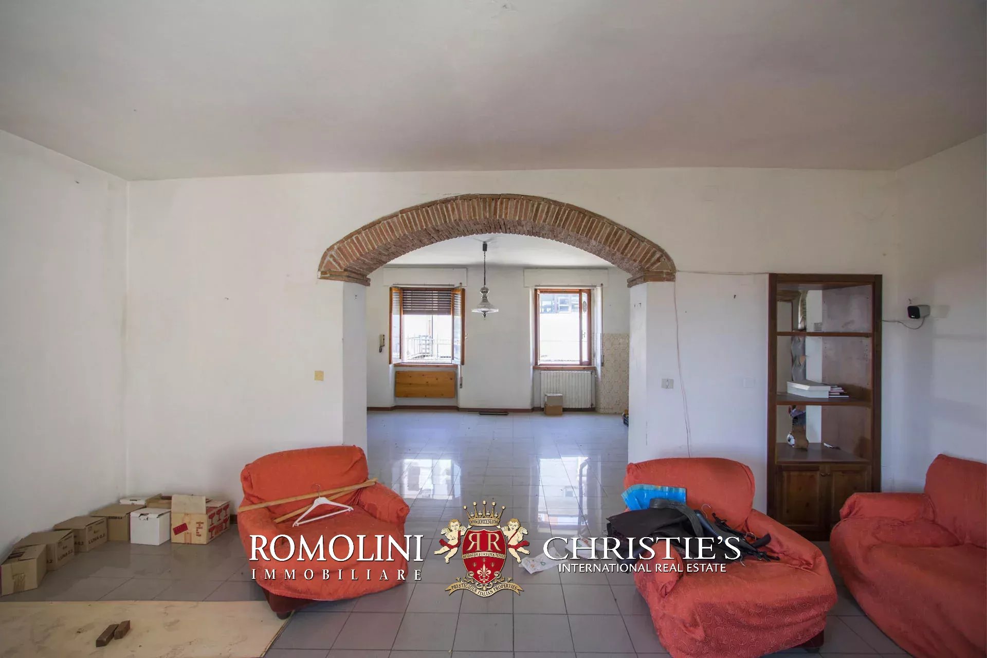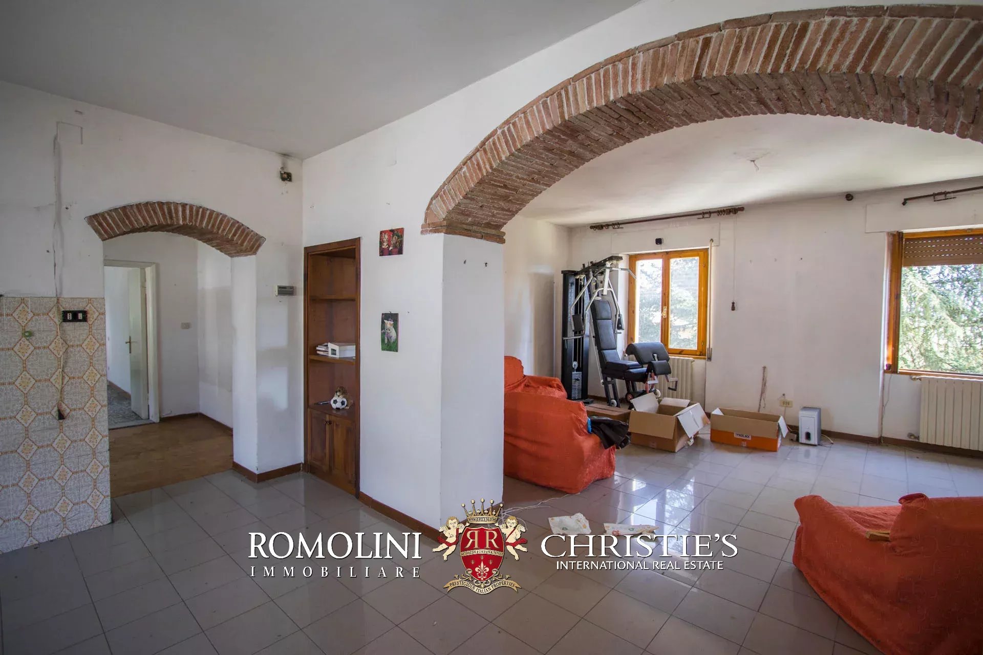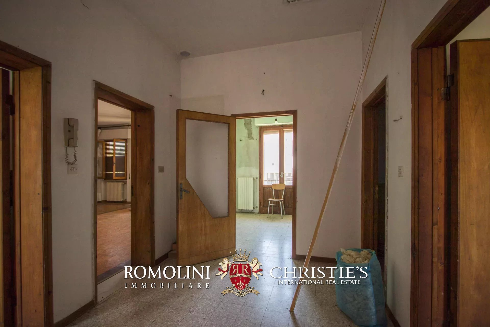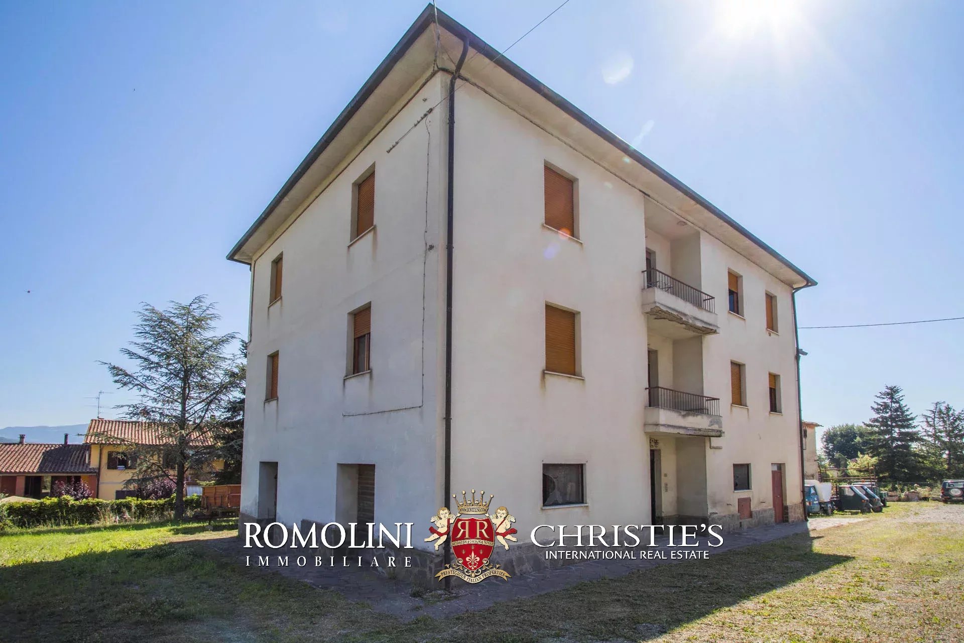 Etwas außerhalb des historischen Zentrums von Anghiari befindet sich diese sanierungsbedürftige Doppelhaushälfte auf drei Etagen. Das Gebäude verfügt über eine Fläche von ca. 376 m² und kann maximal sechs Zimmer haben, wobei die Möglichkeit besteht, zwei Wohnungen mit eigenem Eingang zu schaffen. Ringsherum befindet sich ein gemütlicher Privatgarten von ca. 200 m².