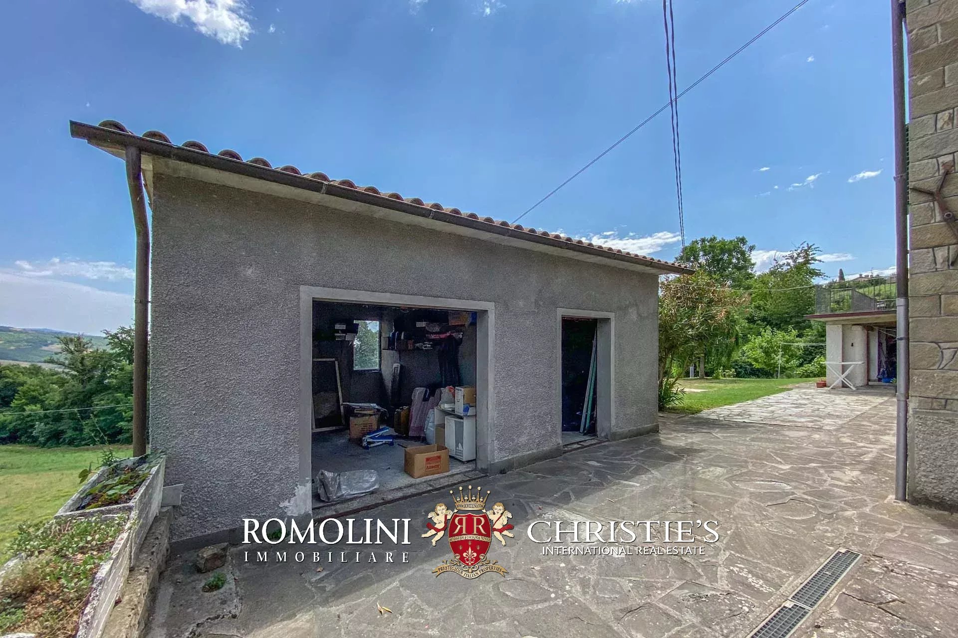 In der Nähe von Caprese Michelangelo, in Panoramalage, Landhaus mit Garten und Grundstück. Das Haus (300 m²) ist derzeit in zwei Wohnungen unterteilt (von denen eine saniert werden muss) für insgesamt vier Schlafzimmer und zwei Bäder. Draußen hat das Haus einen Garten von etwa 330 m² mit Parkplatz und über 6.000 m² Ackerland.