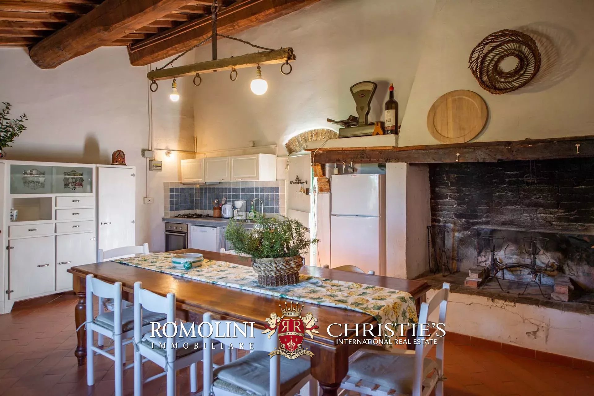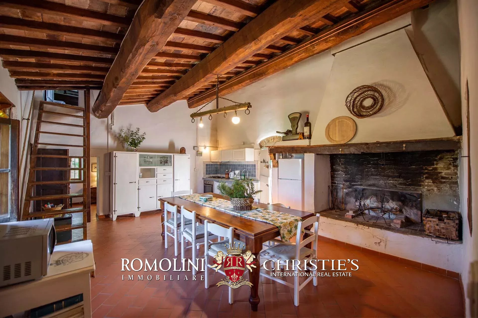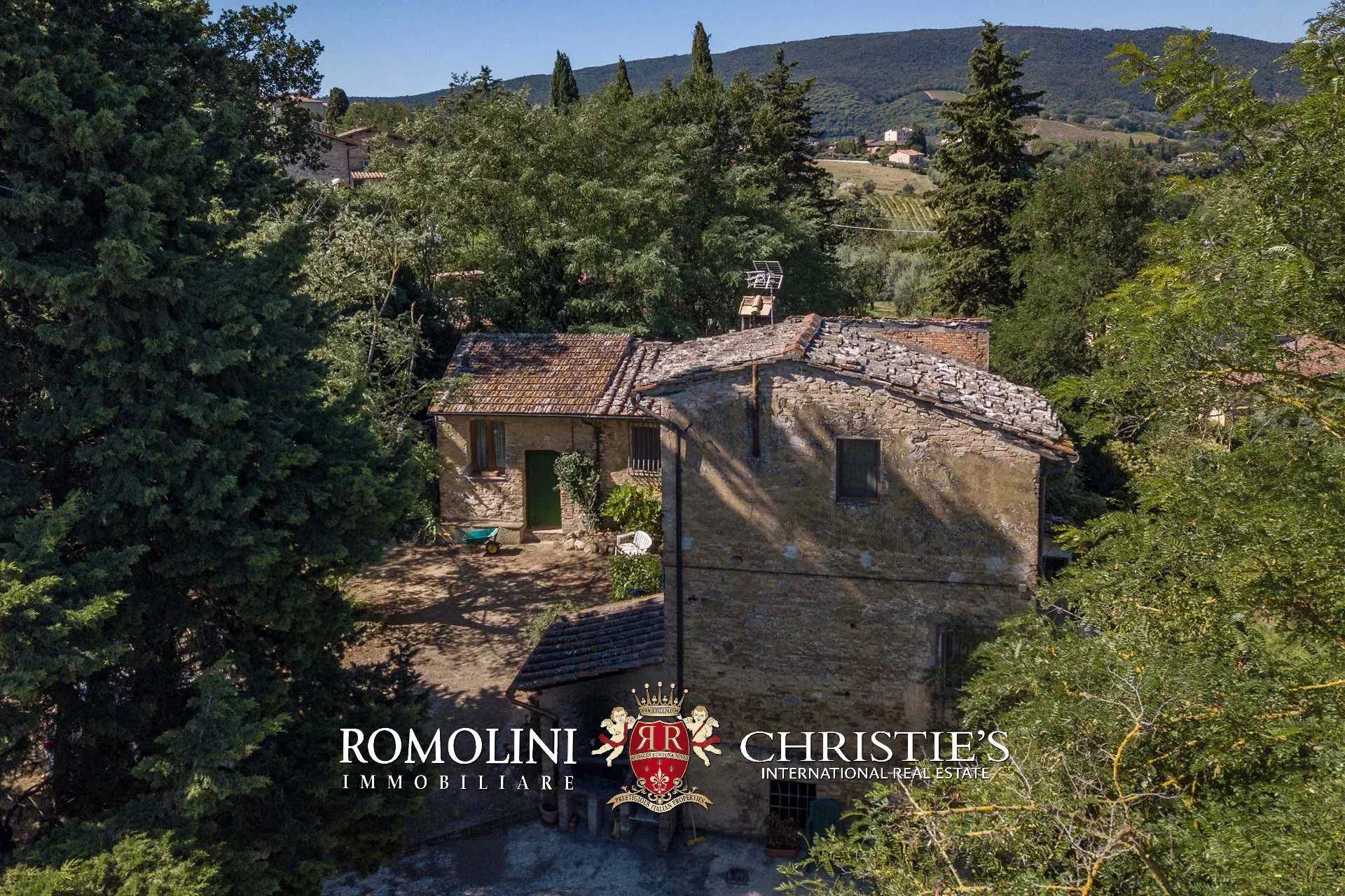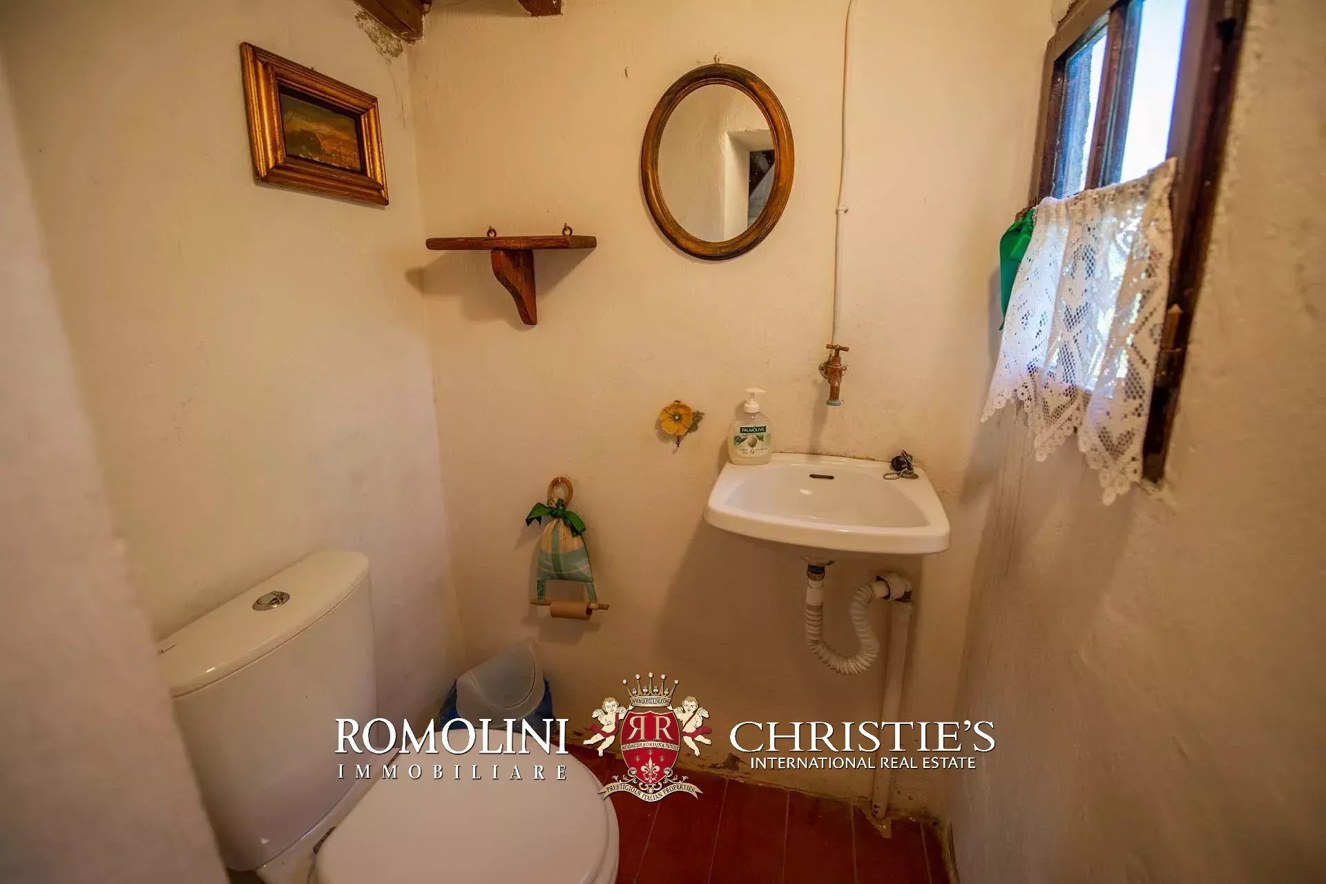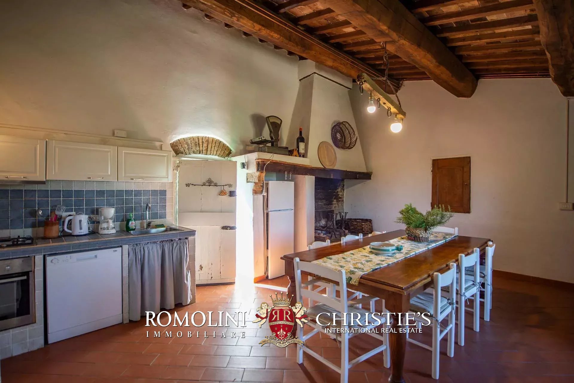 The farmhouse is completed by 3.4 hectares (8.4 acres) of land, arranged on the slope that descends north from the building. A large wooded garden (2,800 m²) with a panoramic terrace overlooking the Tuscan countryside has been created around the building.