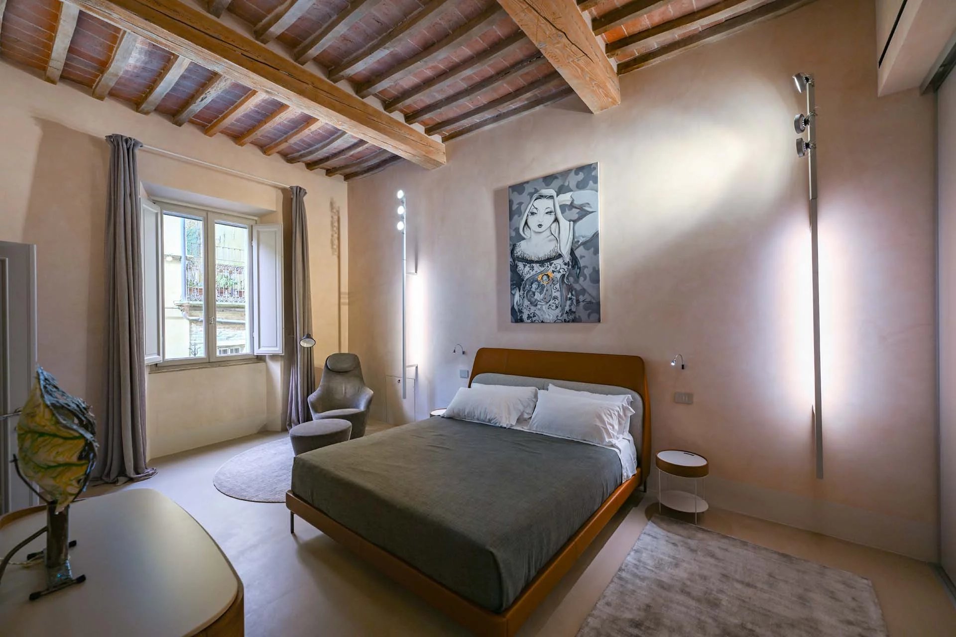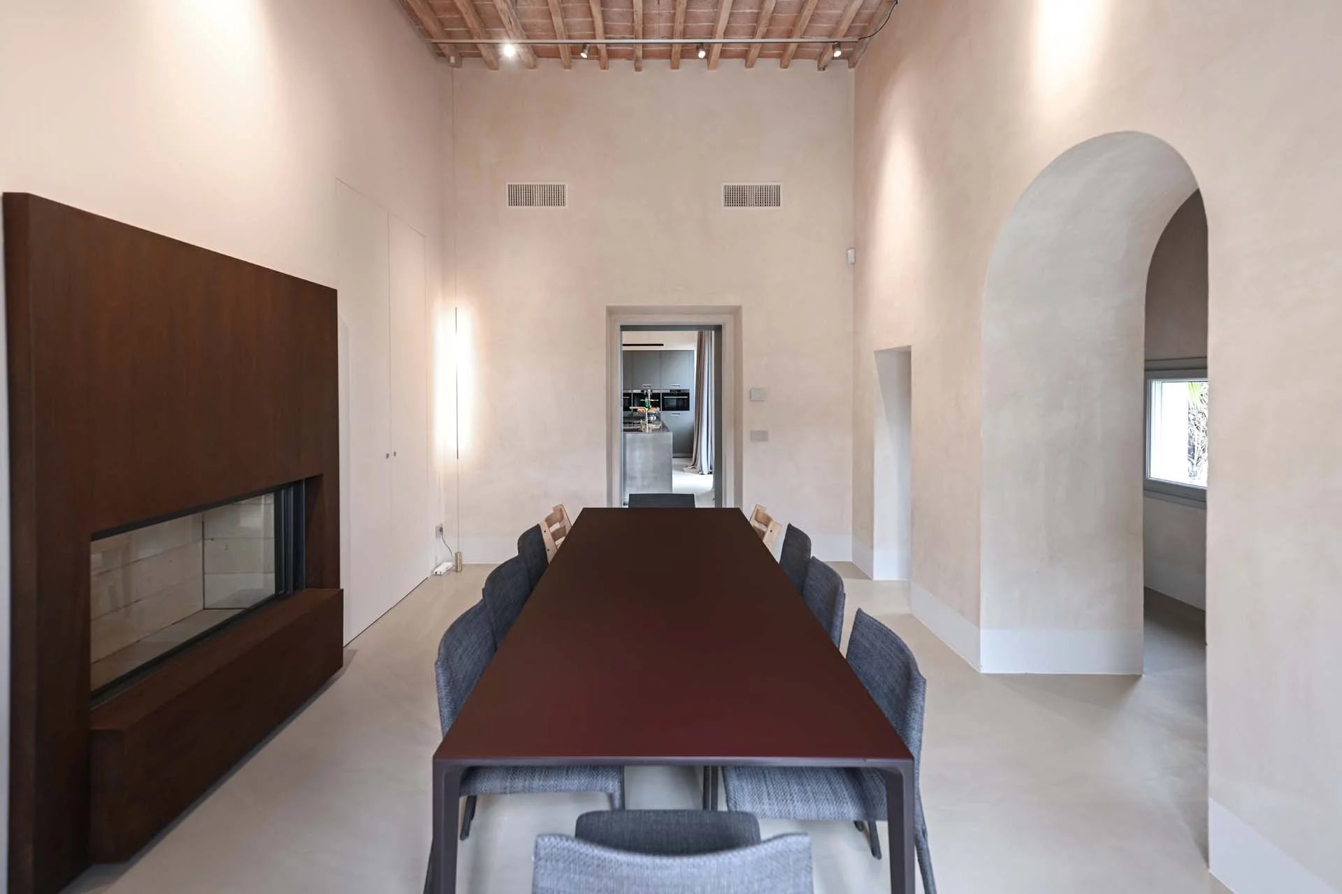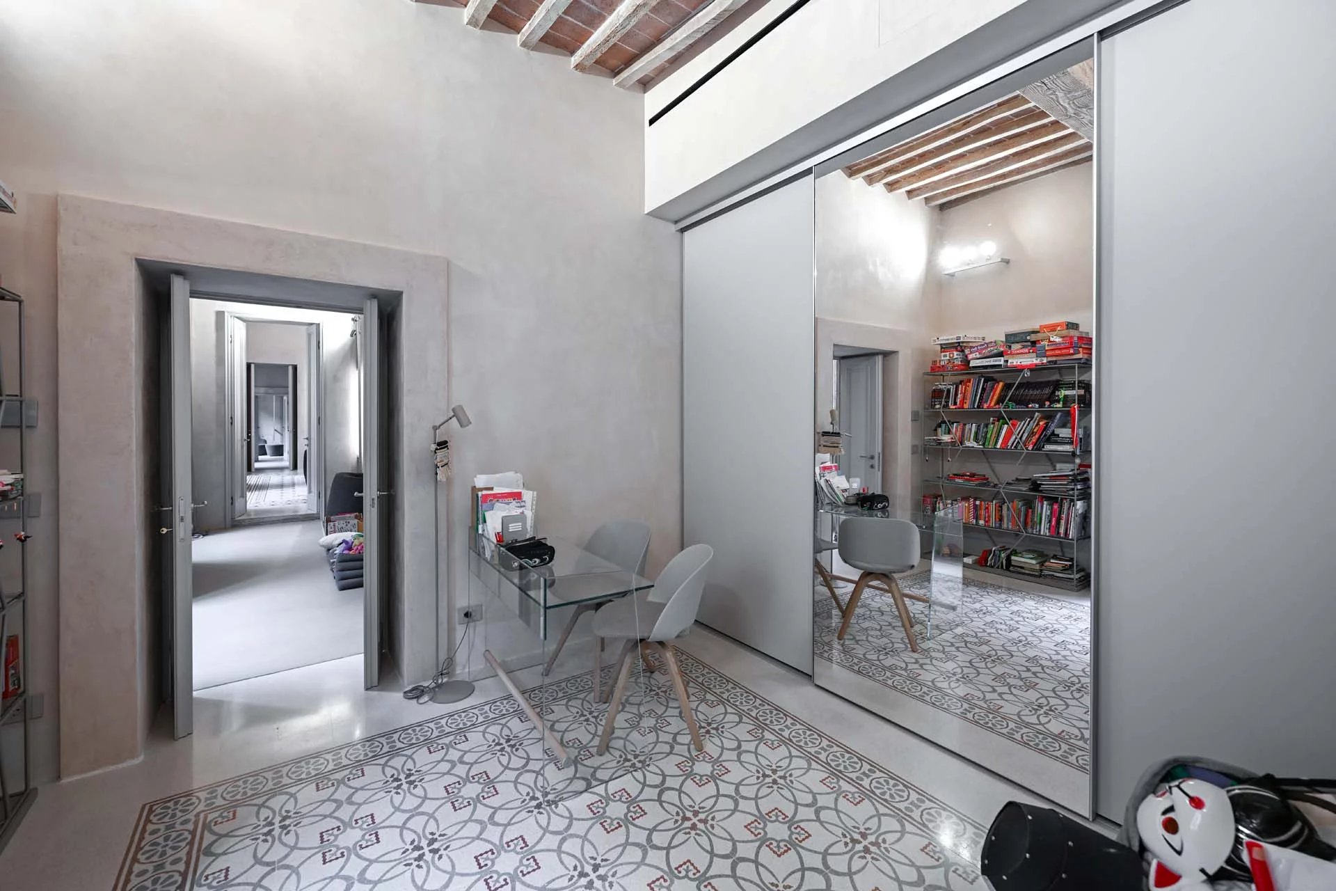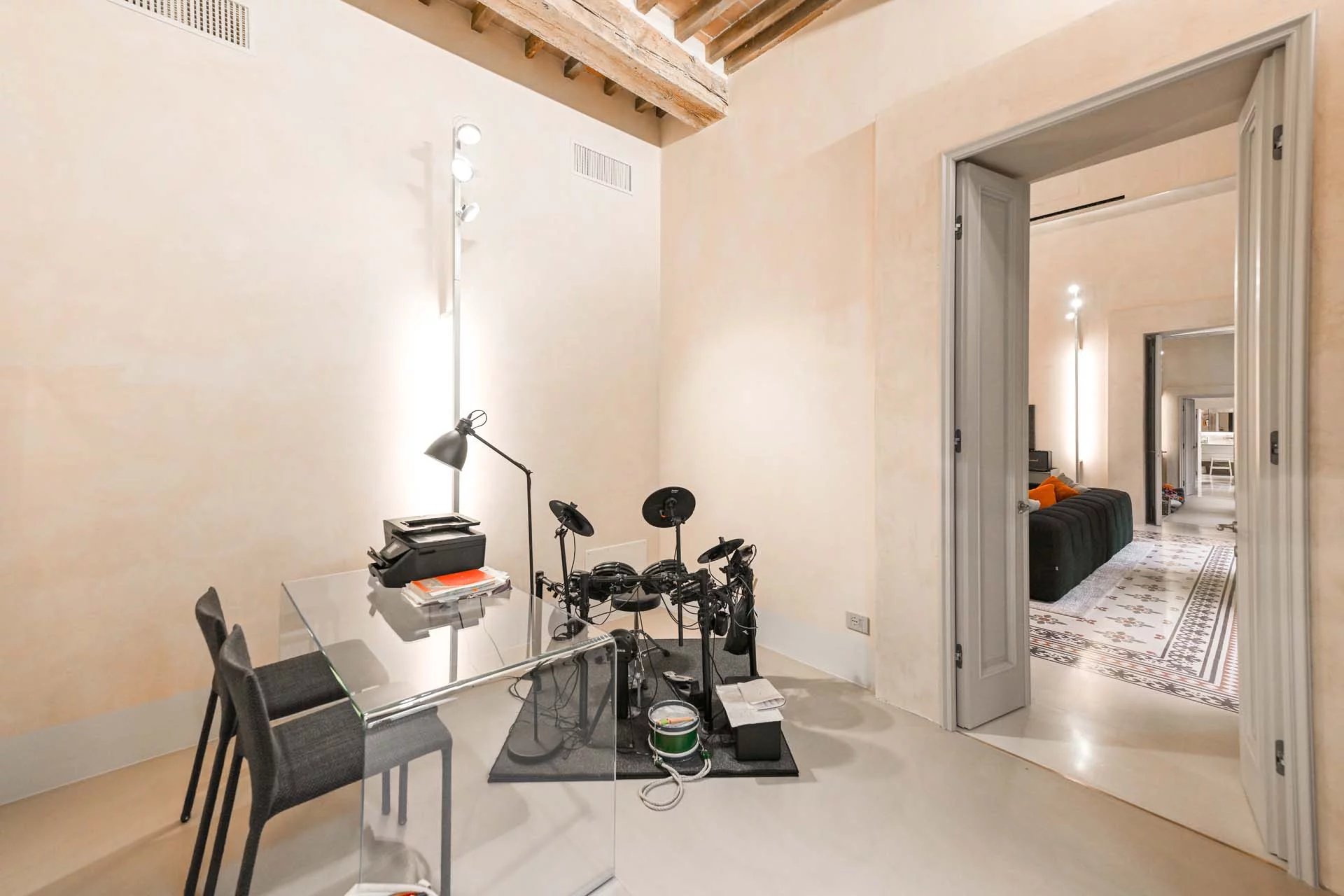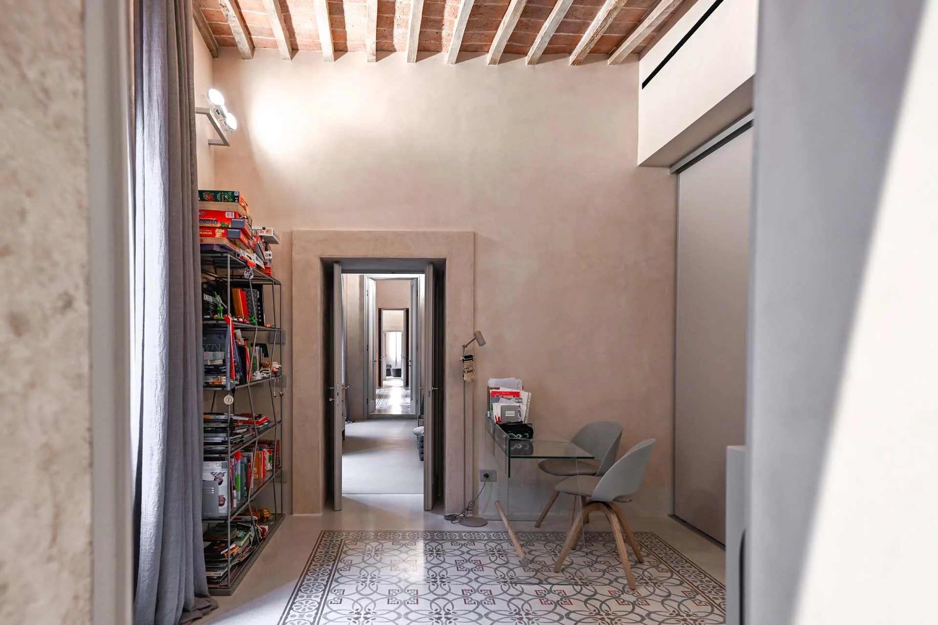 This stunning apartment spans the entire first floor of Palazzo Batignani, what had formerly been the building’s noble apartment. The construction of the building, or rather the complete renovation resulting in the amalgamation of the original medieval structures that gave rise to the palazzo, dates back to the 16th century. The house is part of a condominium (recently established) with five units in total.