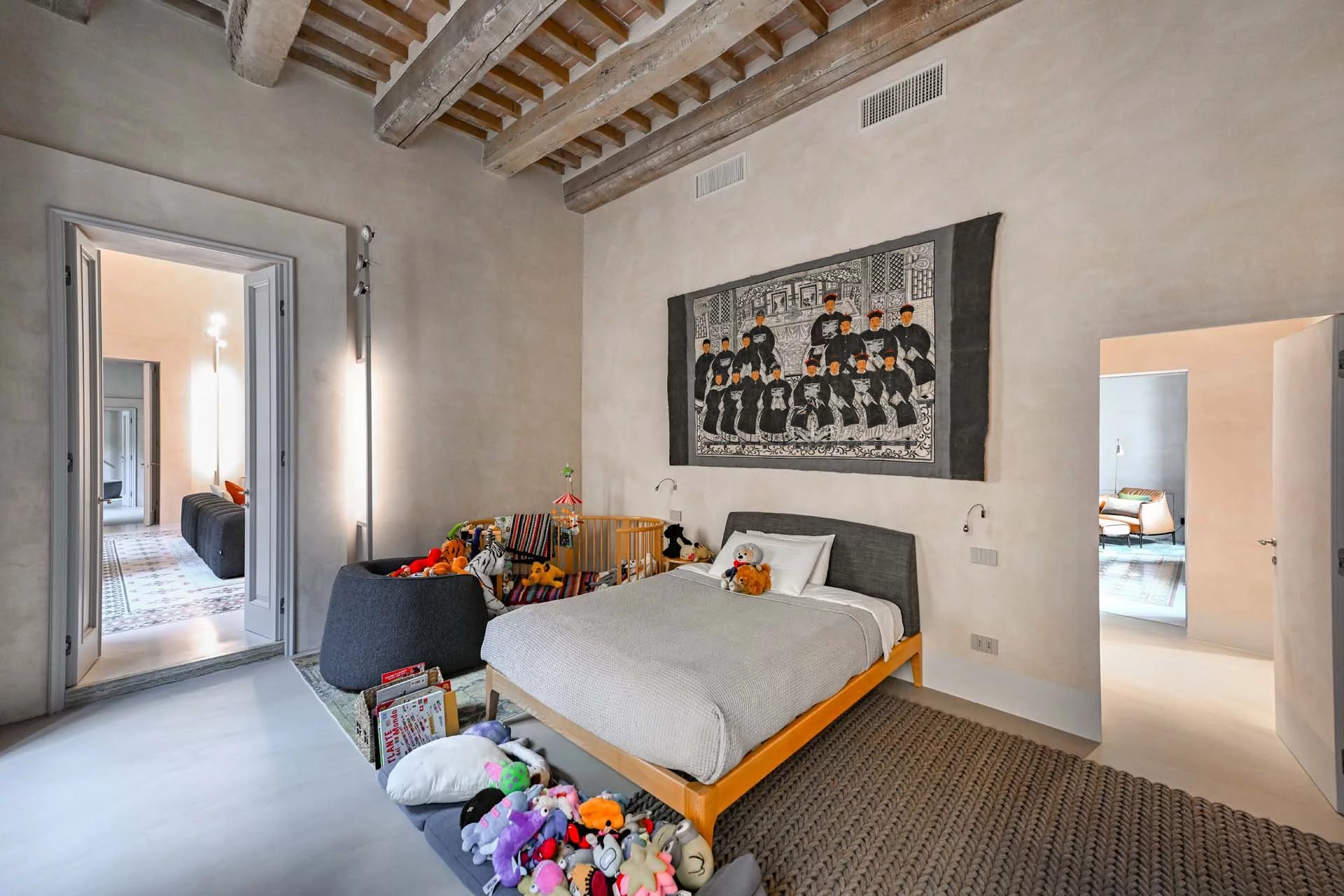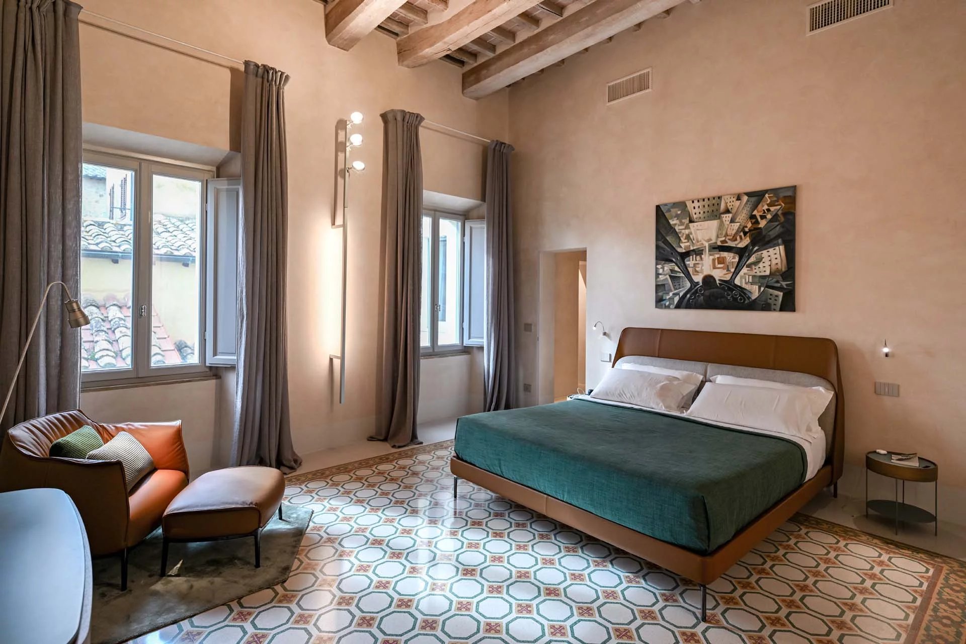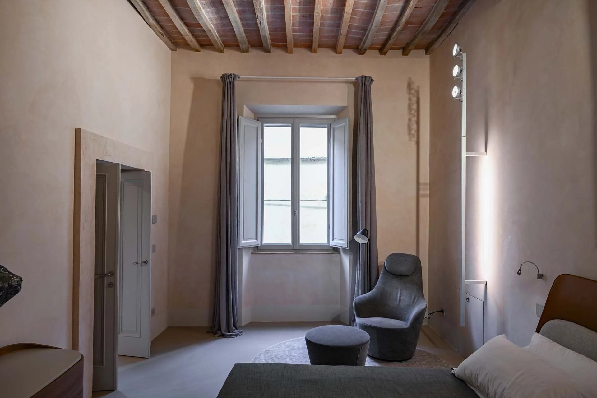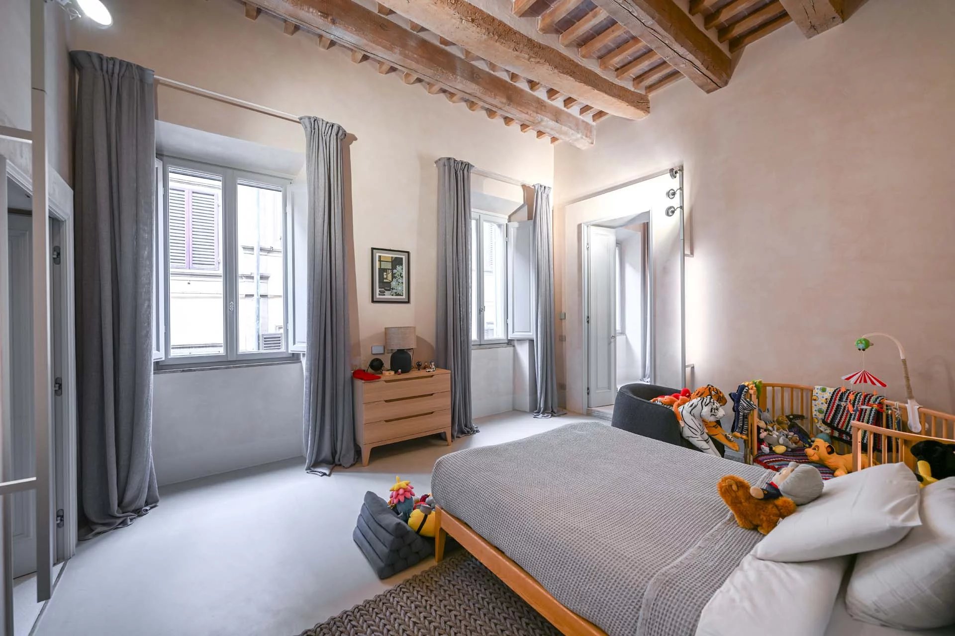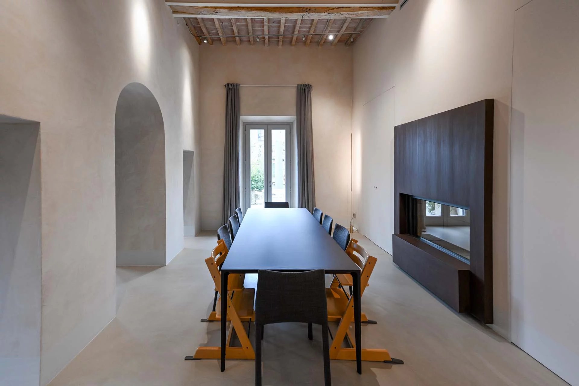 This stunning apartment spans the entire first floor of Palazzo Batignani, what had formerly been the building’s noble apartment. The construction of the building, or rather the complete renovation resulting in the amalgamation of the original medieval structures that gave rise to the palazzo, dates back to the 16th century. The house is part of a condominium (recently established) with five units in total.