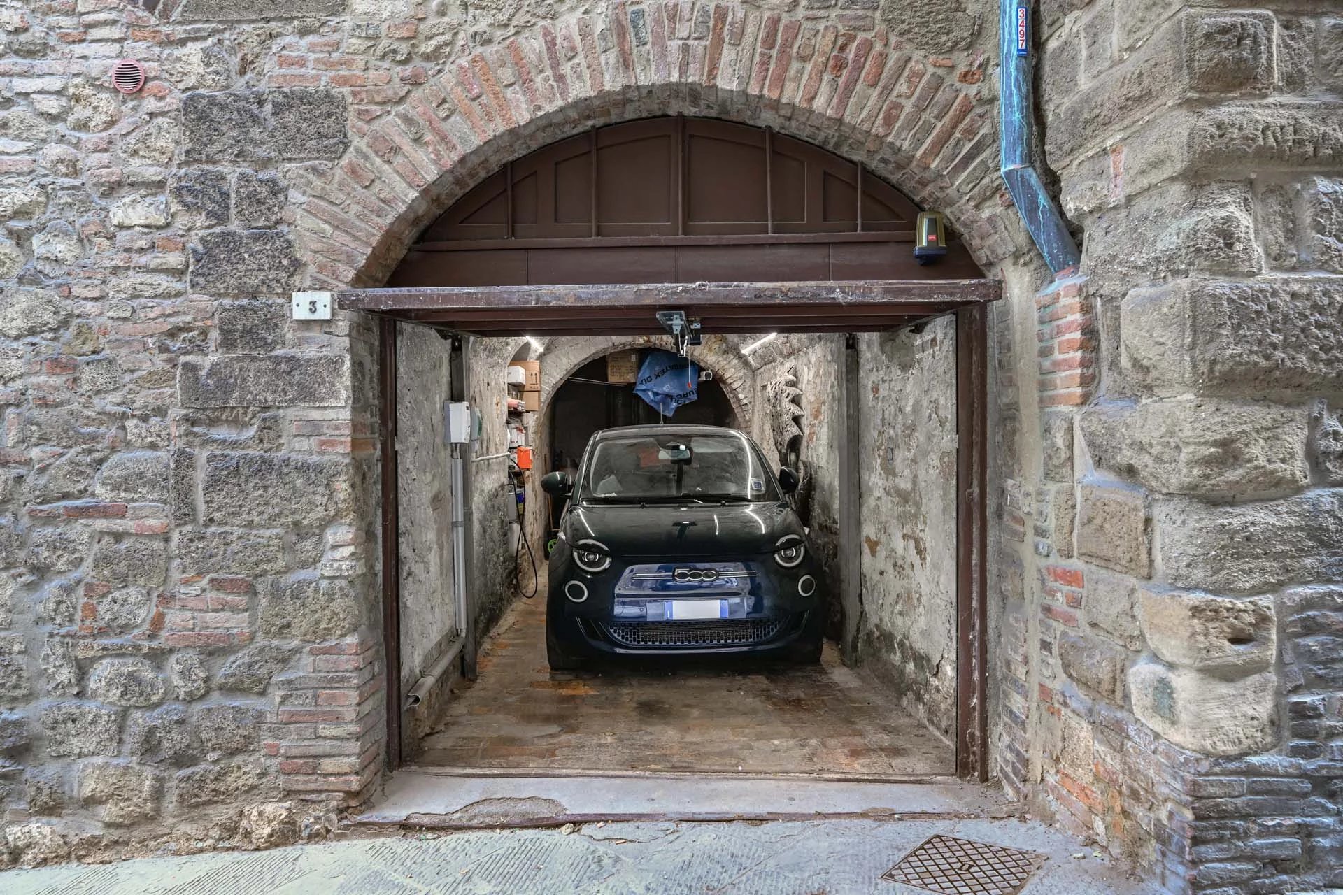 In addition to all this is a garage (22 m² – 237 ft²), also part of a historic property once part of the home of the 15th-century poet Agnolo Ambrogini known as Poliziano, and the two cars stored in it, namely an electric Fiat 500 for daily commuting, and, for special use, a 1968 Fiat 500 with the original documents of the time attesting to its provenance, which belonged to a famous modern Finnish sculptor during her stay in Val d’Orcia. Both are equipped with LTZ permits.