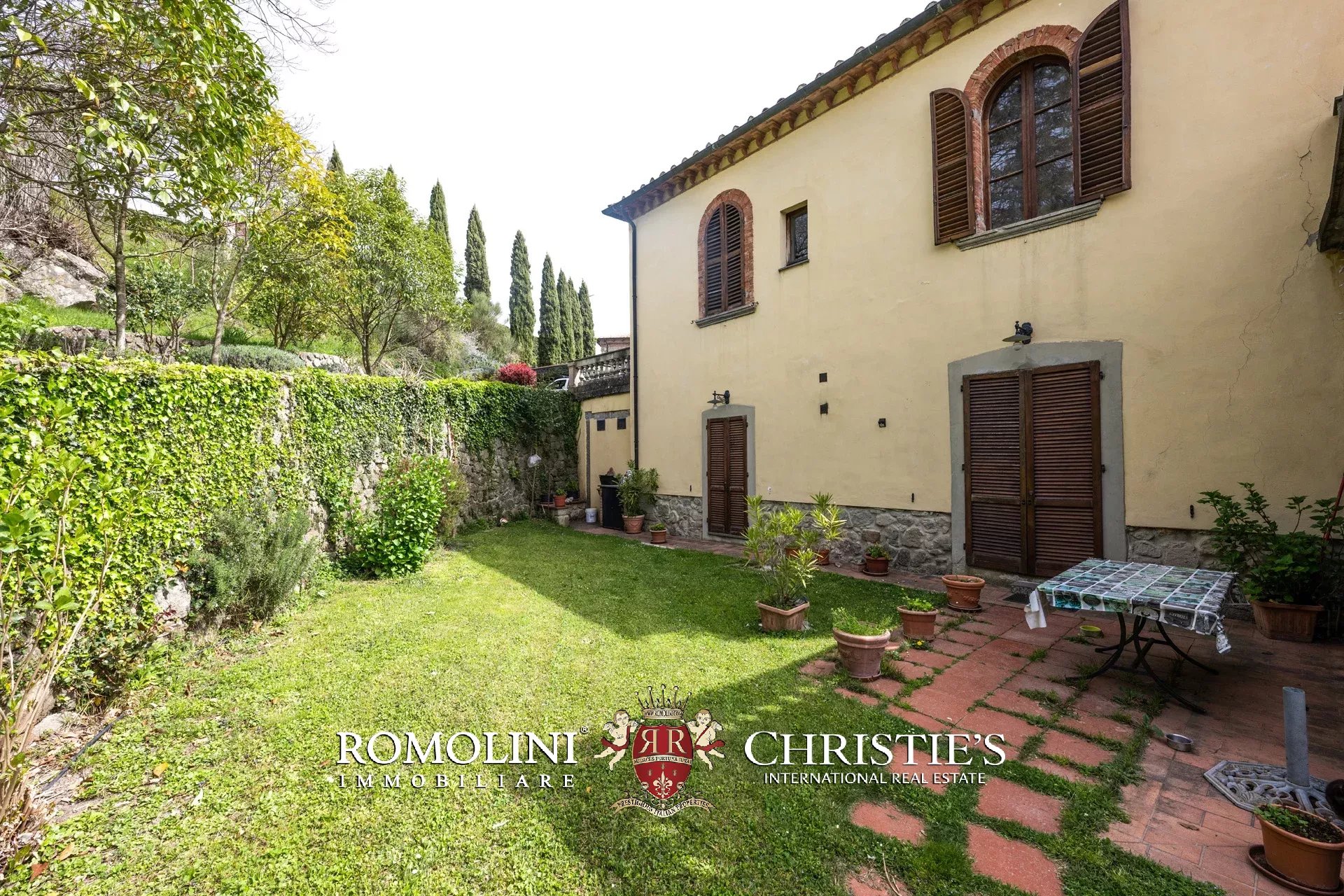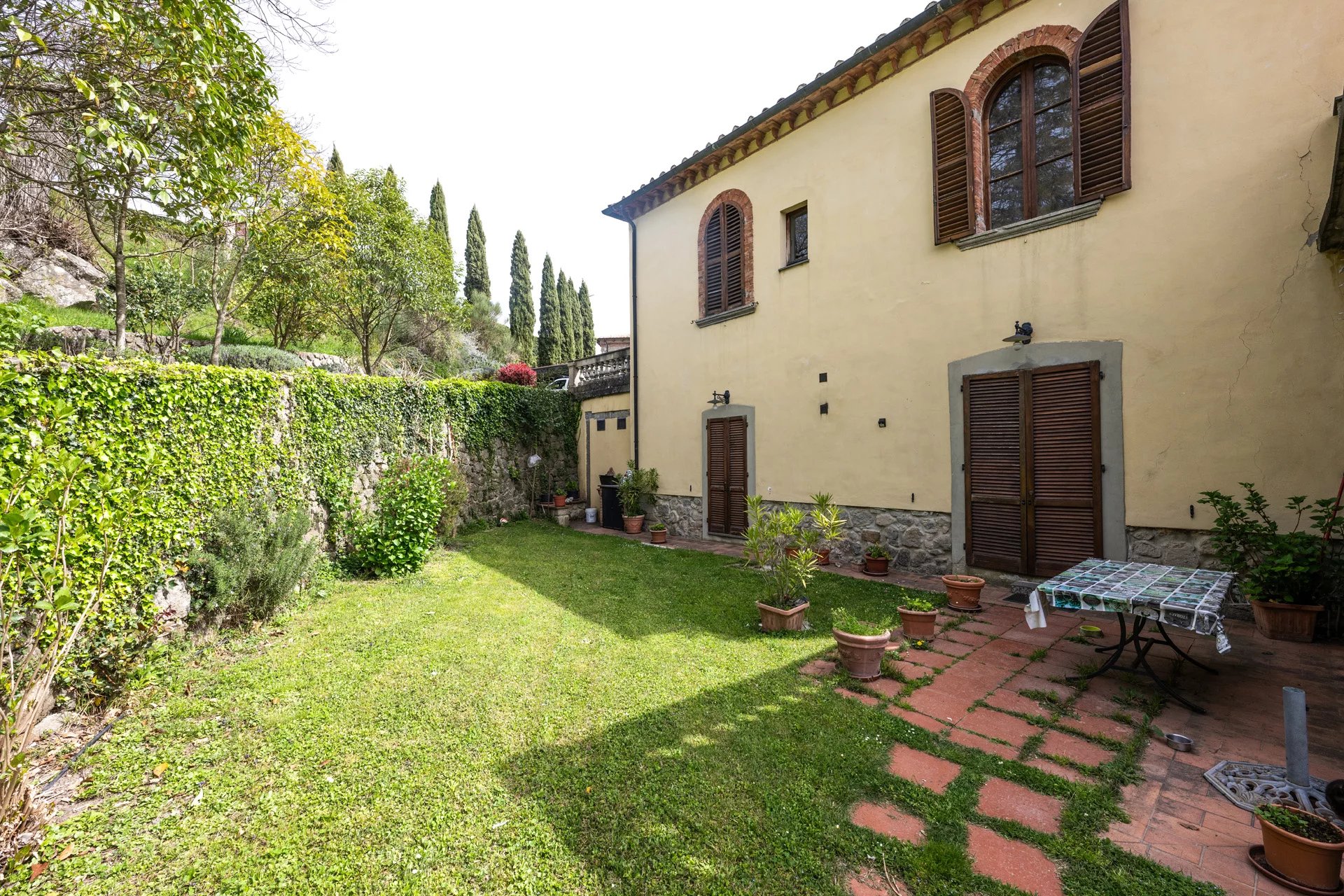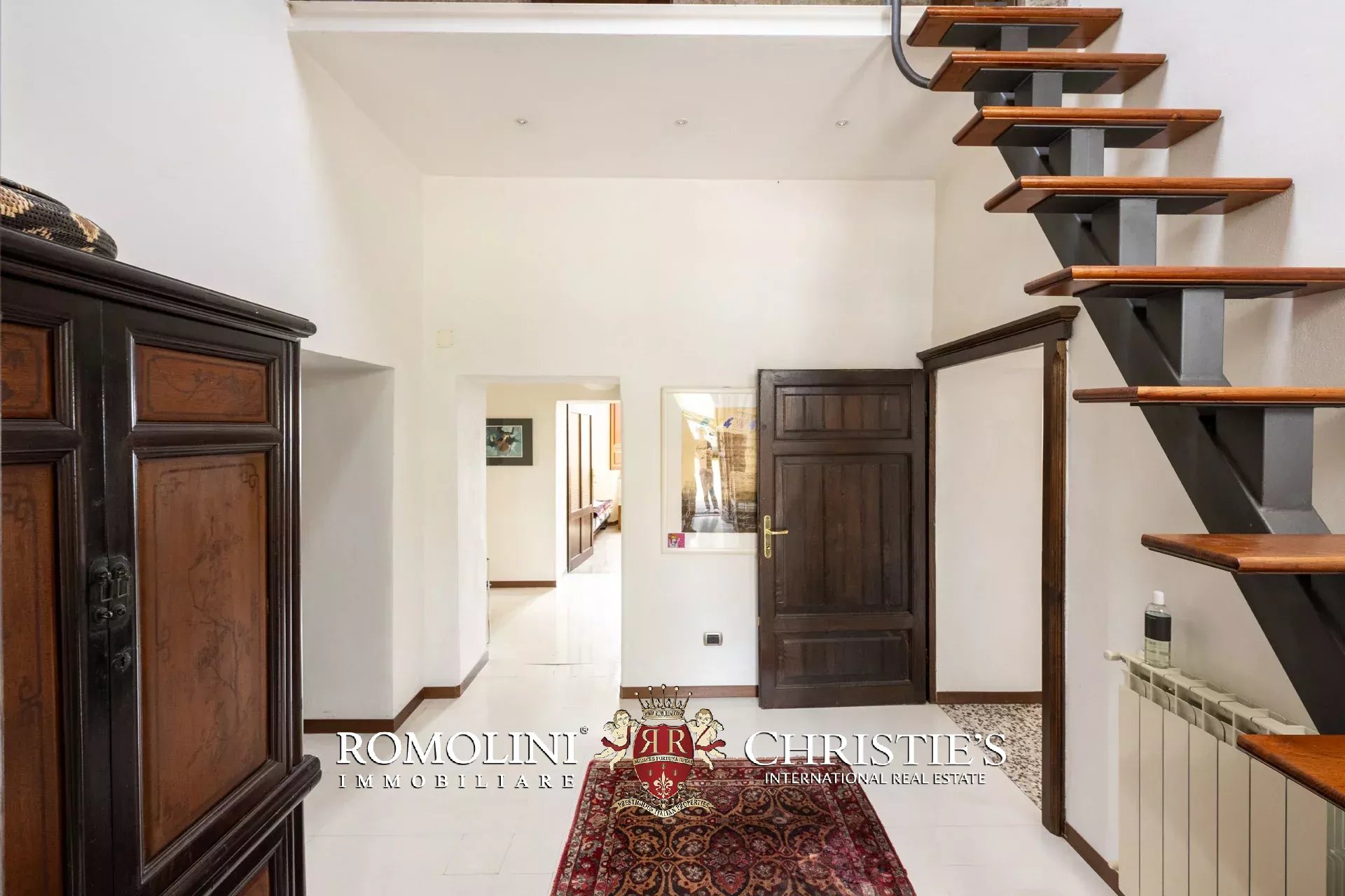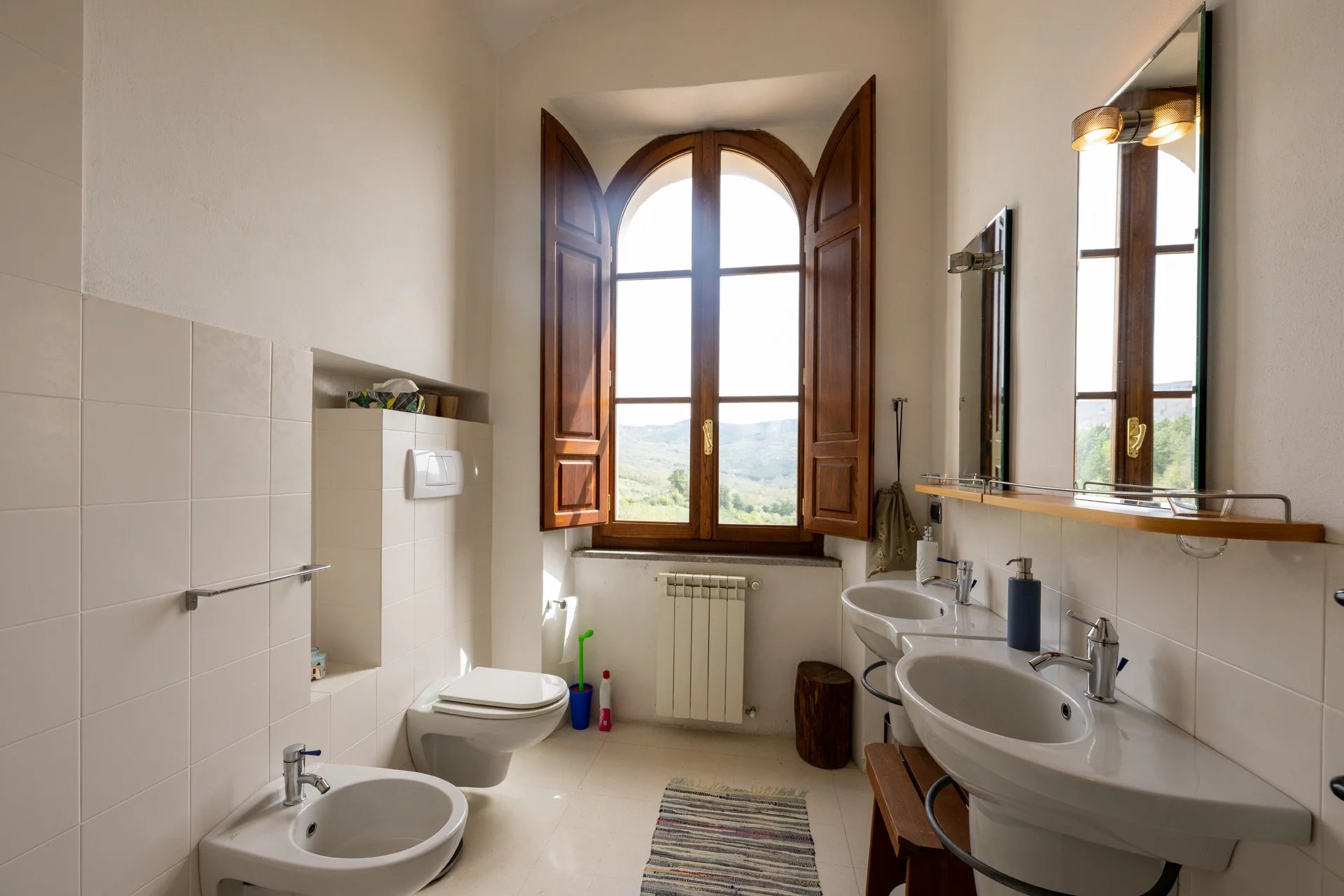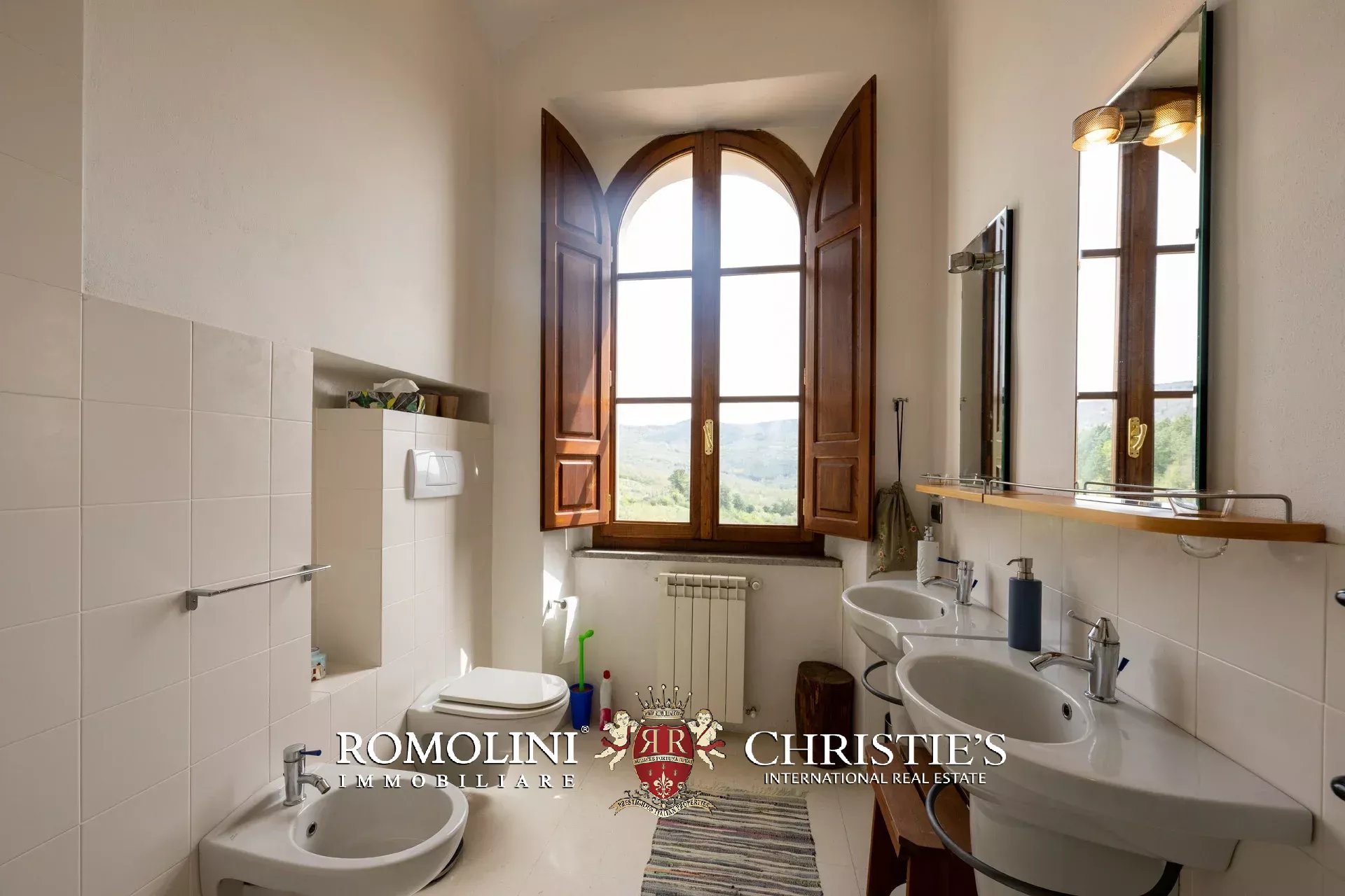 The main villa (450 m² – 4,842 ft², 6 bedrooms and 7 bathrooms), built on the site of an early medieval parish church, is on two levels. On the ground floor there is a large kitchen, living room, office space with courtyard, bathroom, storage room, laundry room and cellar. On the first floor, on the other hand, is the sleeping area with three spacious bedrooms, two of which have terraces, three bathrooms and a private office. The second floor is connected to the ground floor by an internal staircase but also has convenient direct access from the area designated for parking and located on the north side of the building.