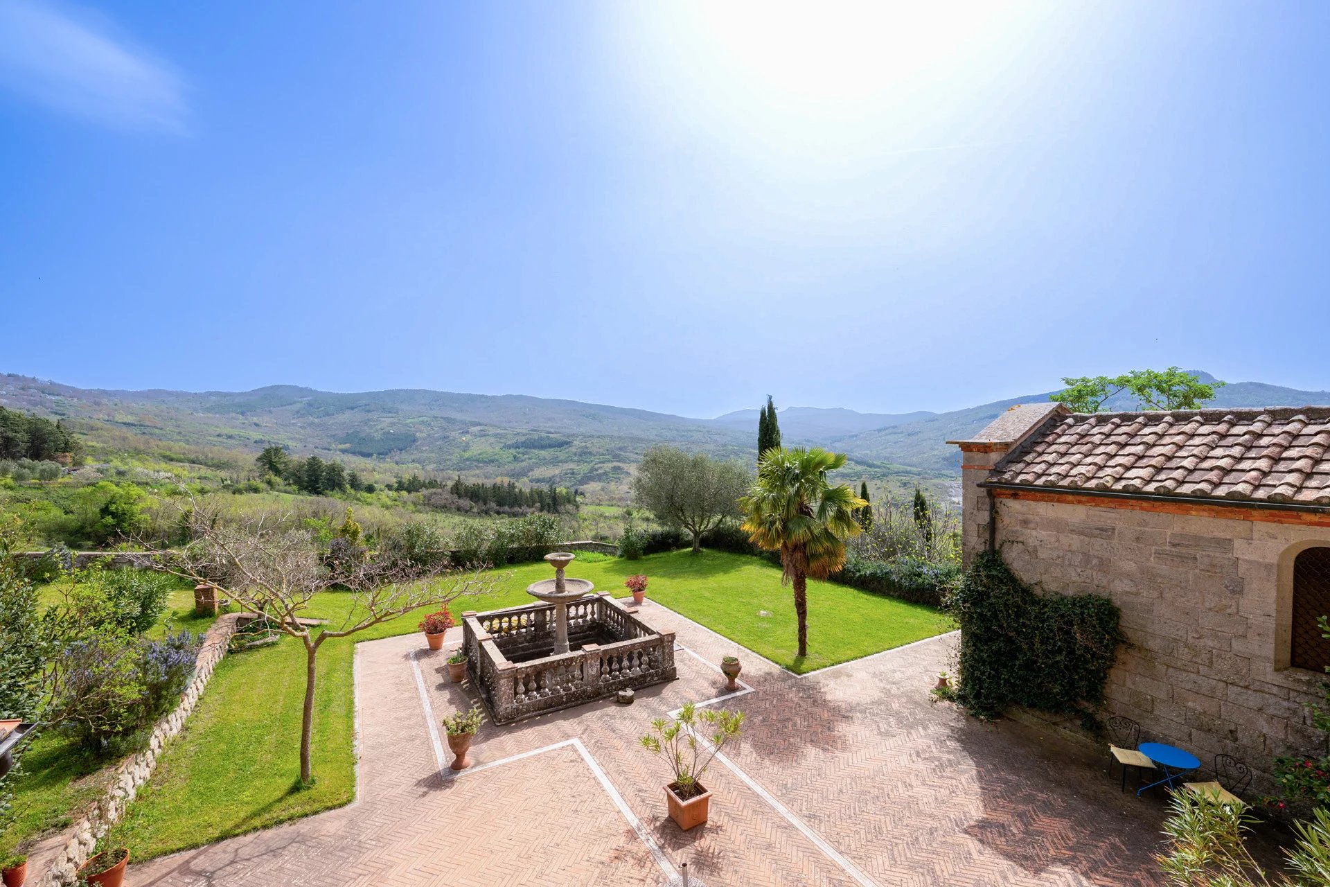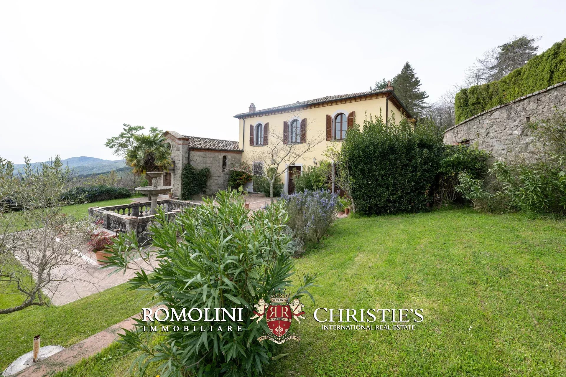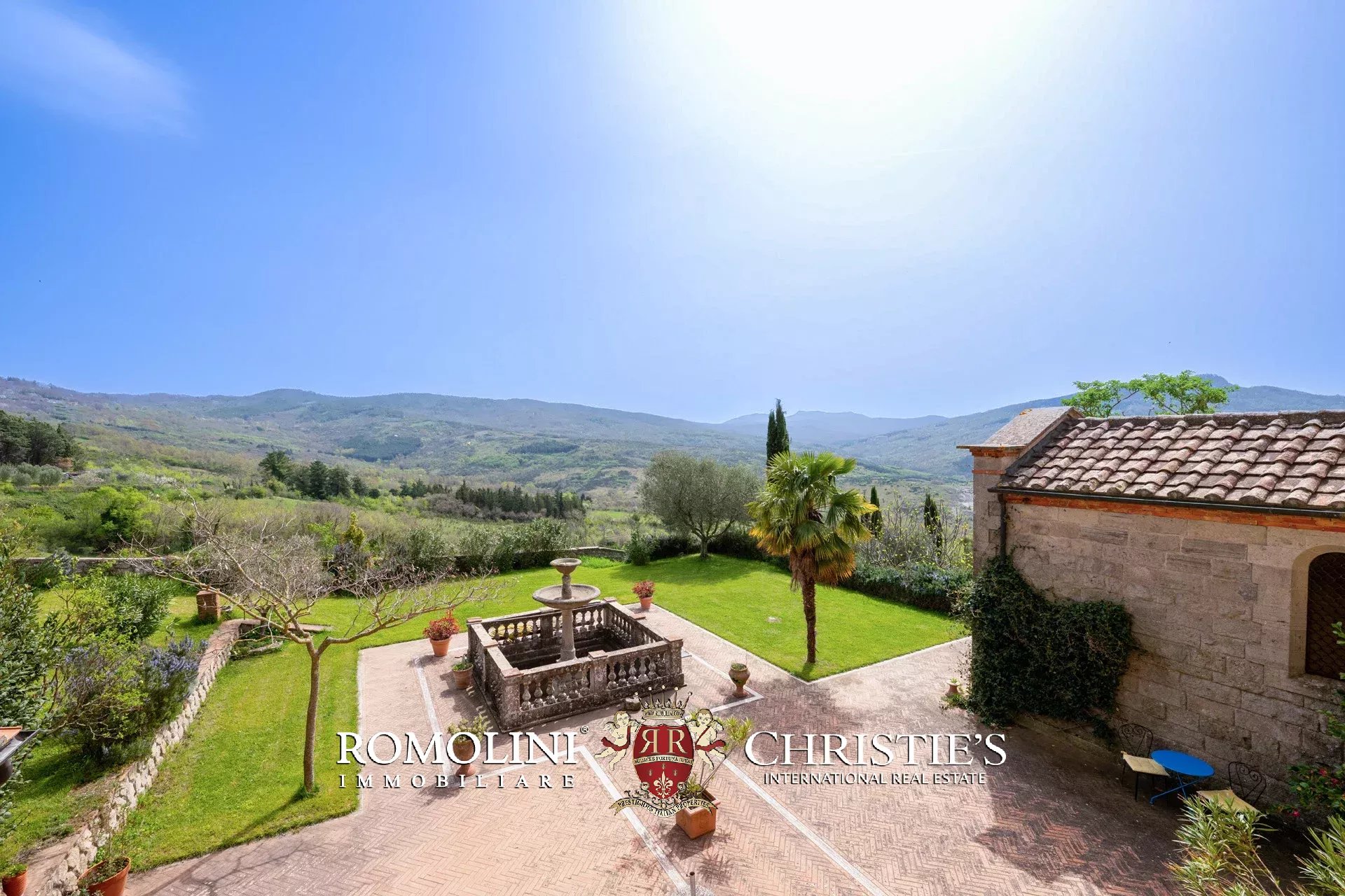 In a panoramic position on the hills between Val d’Orcia and Monte Amiata, historic villa with park for sale. The complex (over 800 m²) includes several buildings: the main villa, heart of the property, is fully restored and preserves the original finishes; the other buildings need renovation works instead and could be used to create several guest annexes. The 22,500-m² park surrounds the building.