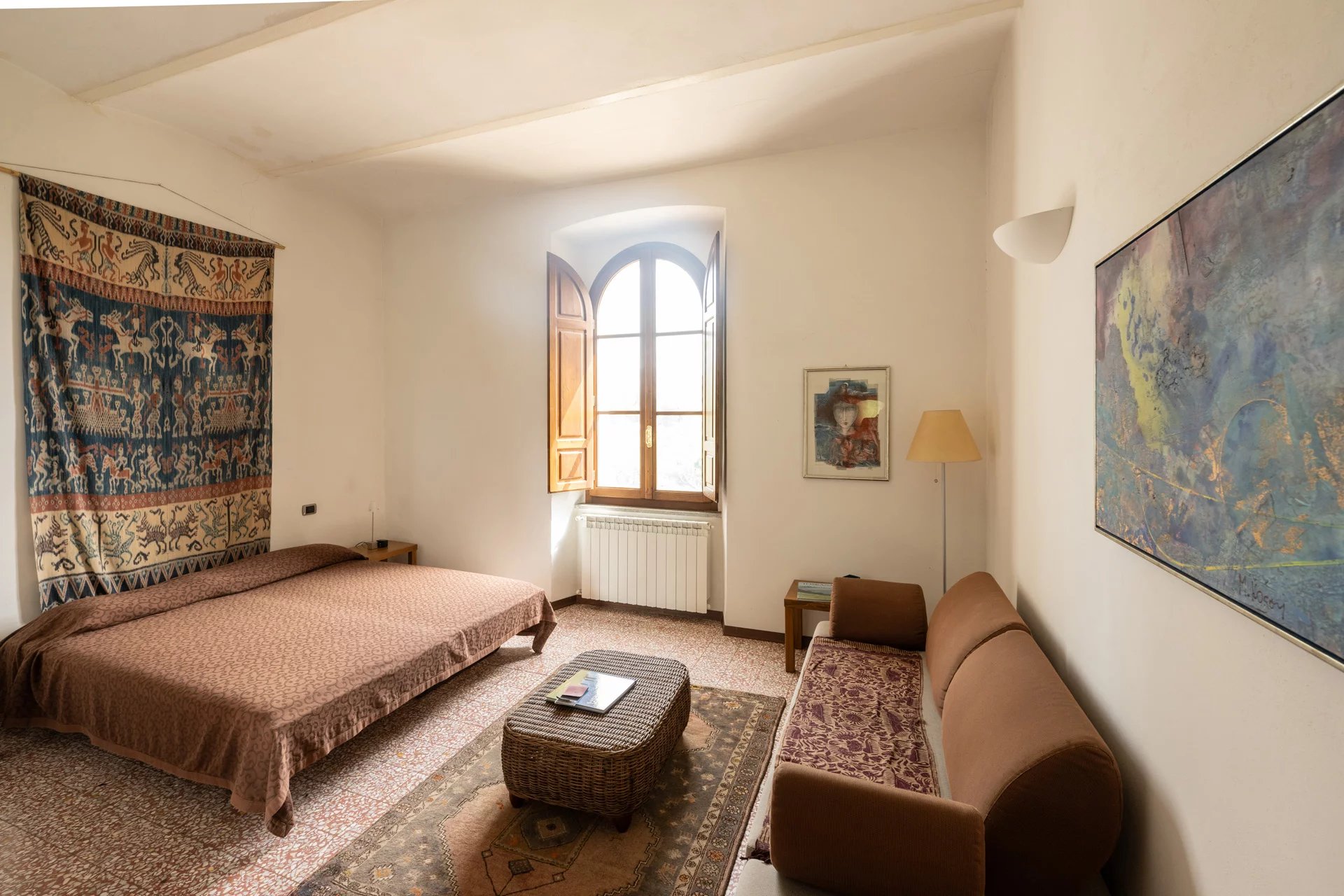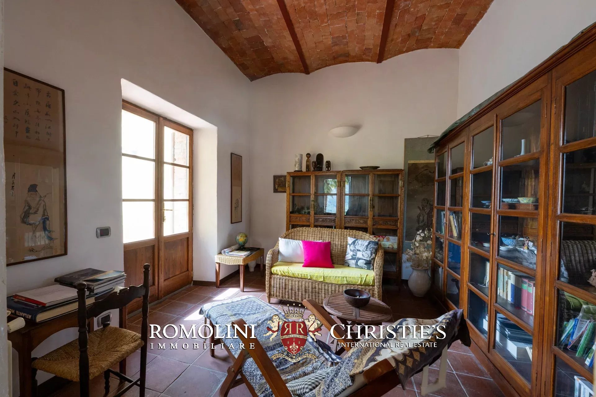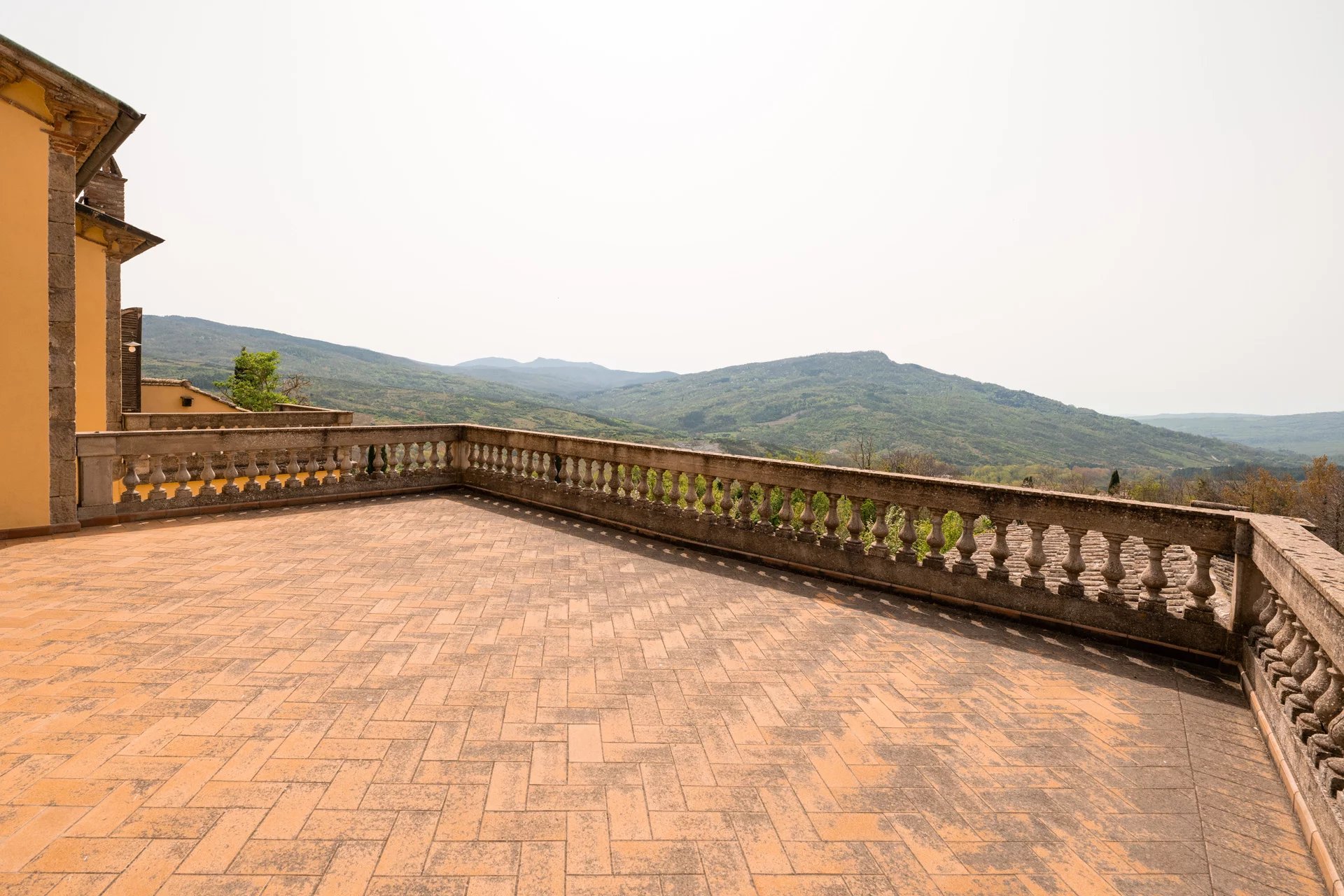In a panoramic position on the hills between Val d’Orcia and Monte Amiata, historic villa with park for sale. The complex (over 800 m²) includes several buildings: the main villa, heart of the property, is fully restored and preserves the original finishes; the other buildings need renovation works instead and could be used to create several guest annexes. The 22,500-m² park surrounds the building.