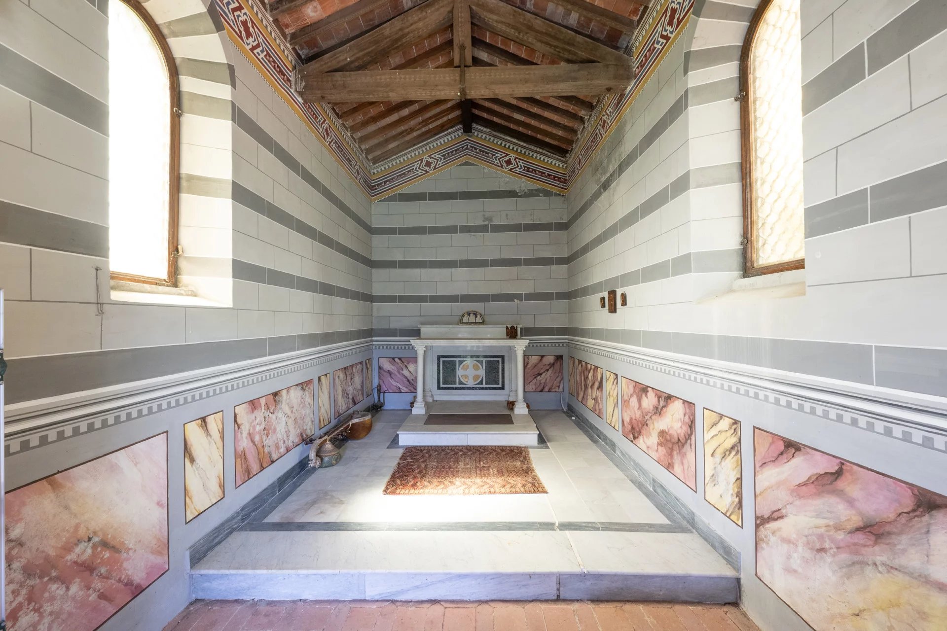 On the west side of the villa, a small projecting body houses the aristocratic chapel (30 m² – 323 ft²) of the property, entirely renovated and with all the original finishes well maintained. Also on the west side is a very convenient porch with a scenic fountain for al fresco dining.