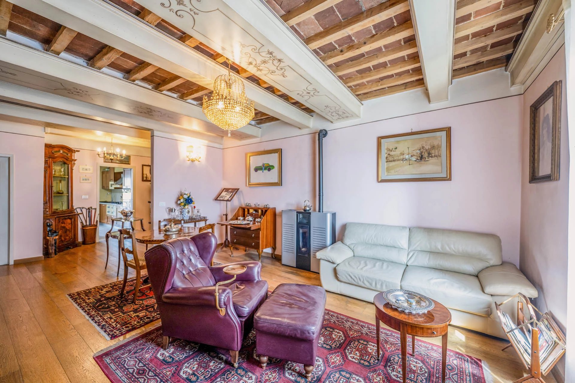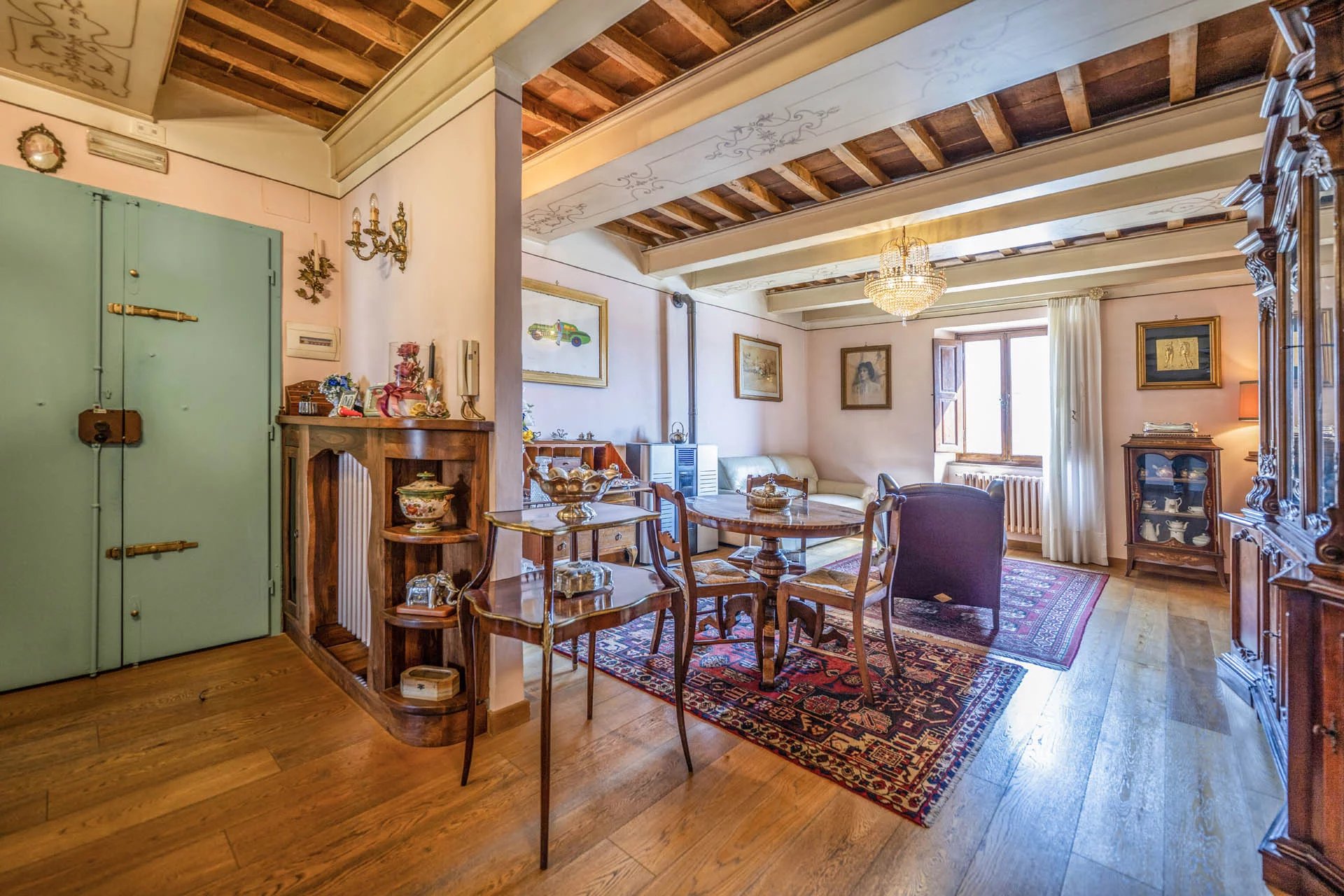 Am Hauptplatz von Soci, einem Dorf im Casentino, das für seine Wollberei und den berühmten Wollstoff bekannt ist, steht eine 141 m² große Wohnung im ersten Stock zum Verkauf. Das Gebäude, das aus sechs Wohneinheiten besteht, befindet sich in einem sehr guten Zustand. Auch der Platz, der kürzlich komplett restauriert wurde, bietet heute ein gepflegtes und einladendes Ambiente, auf das zwei Fenster der Wohnung blicken.