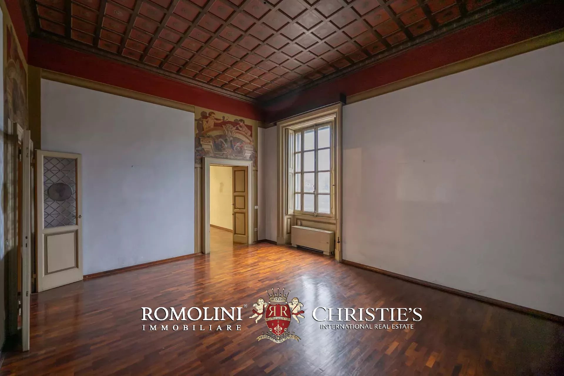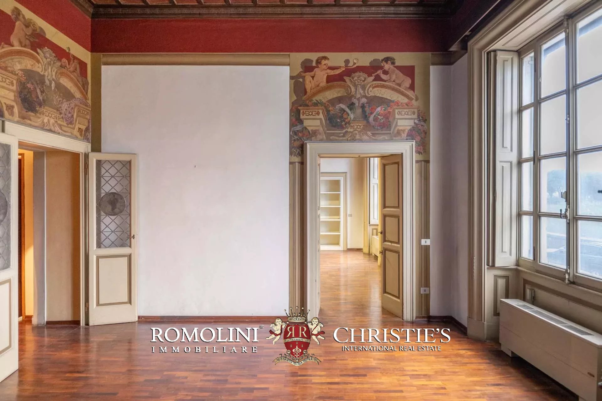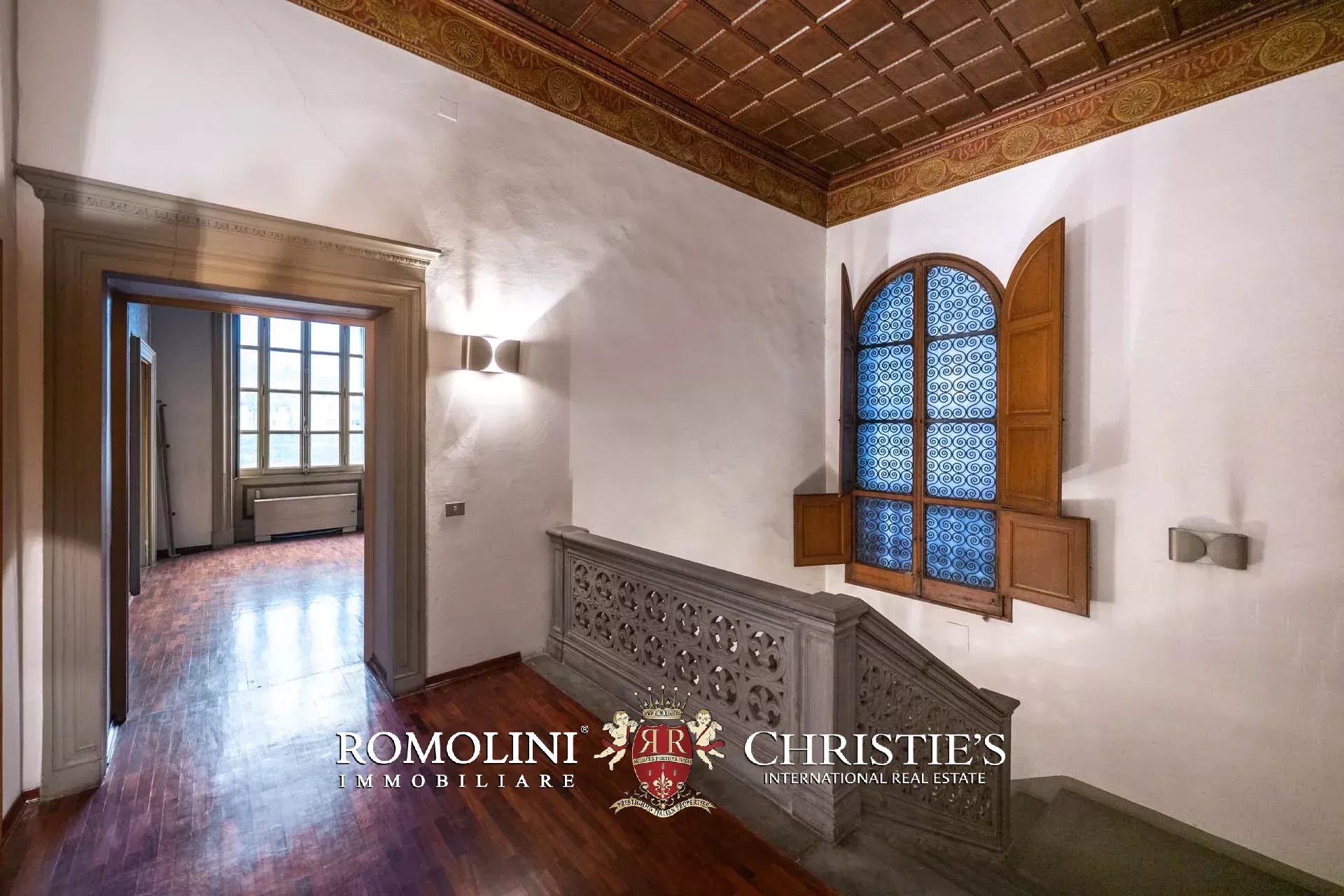 In einem prestigeträchtigen historischen Palazzo mit Blick auf den Lungarno in Florenz, nur wenige Minuten von den wichtigsten Sehenswürdigkeiten der Stadt entfernt, befindet sich diese faszinierende, mit Fresken verzierte Wohnung mit einer Fläche von ca. 650 m², verteilt auf zwei Ebenen und mit doppeltem Zugang.
