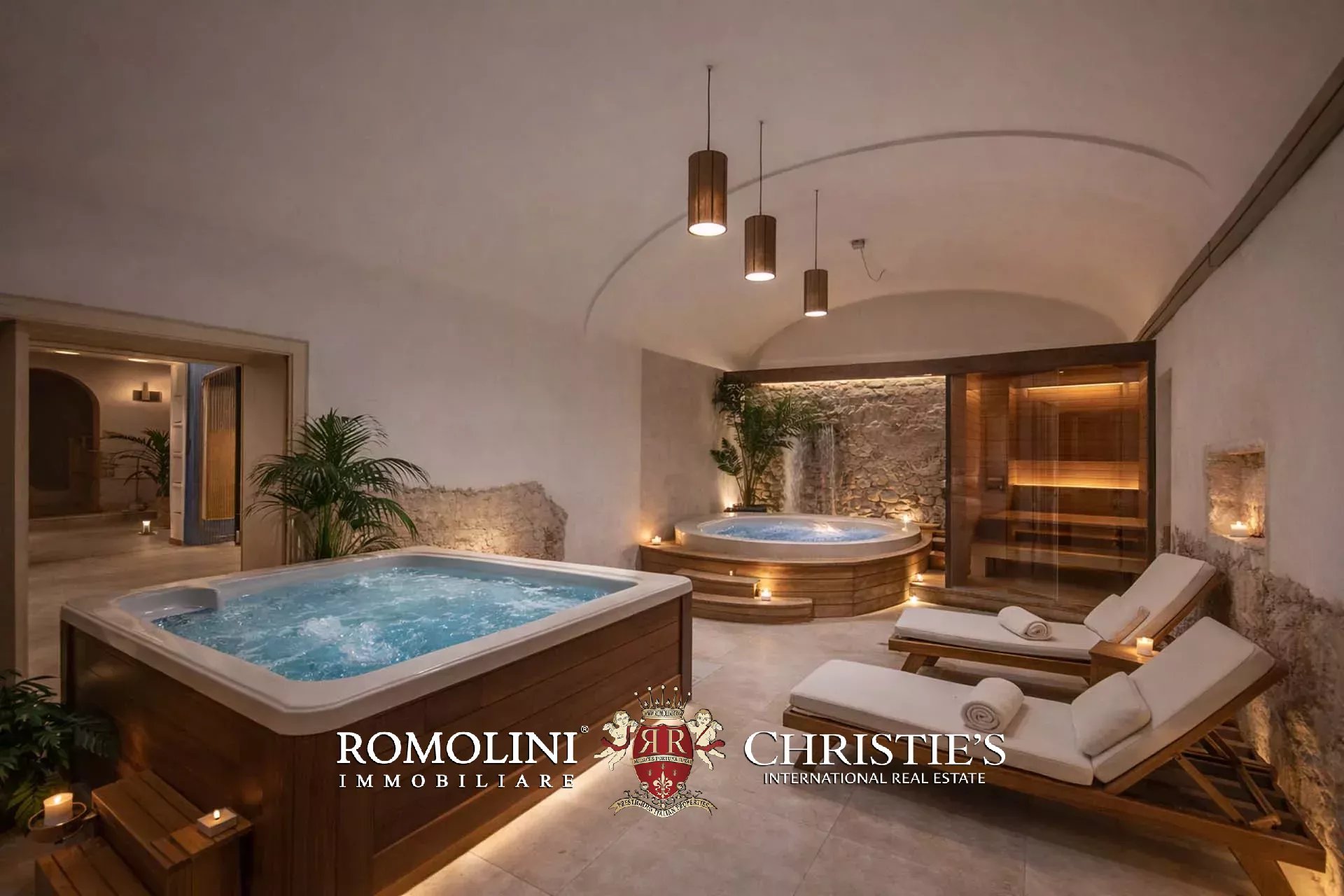 Zur Immobilie gehören außerdem eine edle Skulptur, ein Außenbrunnen und der Zugang zu einem gepflegten gemeinschaftlichen Innenhof, der über zwei Zufahrten mit dem Auto erreichbar ist. Hier verfügt die Wohnung über einen reservierten Stellplatz sowie zwei private Stellplätze in der 38 m² großen Garage im Eigentum.