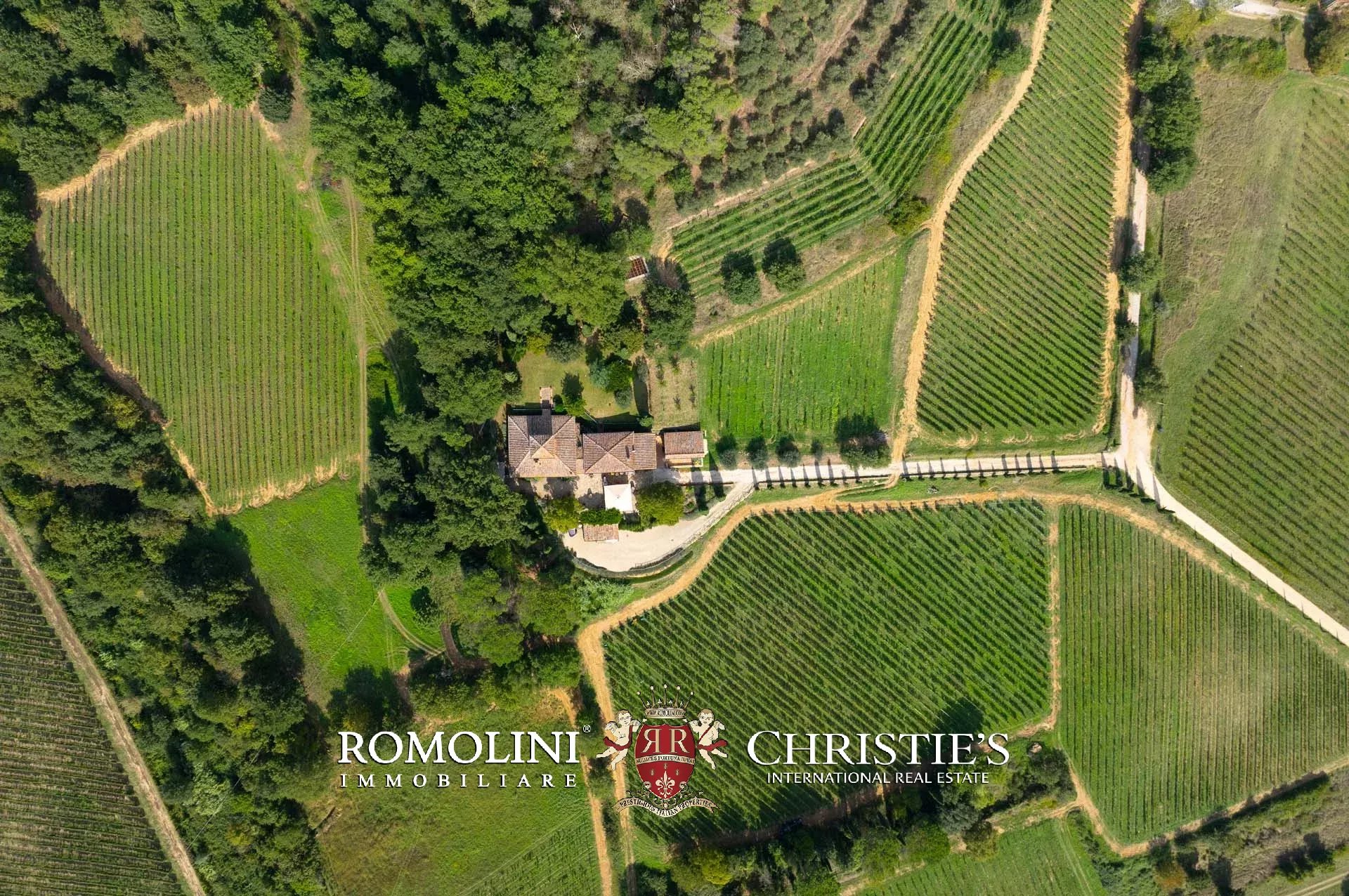 Direkt außerhalb des mittelalterlichen Dorfes Greve in Chianti, in einer sehr günstigen Lage zwischen Florenz und Siena, kleines Weingut zu verkaufen. Das Herzstück des Anwesens ist ein schönes Bauernhaus aus Stein (711 m²), das komplett saniert wurde und den Keller im Erdgeschoss und eine große Privatwohnung im Obergeschoss beherbergt. Der Chianti Classico-Weinberg (3,5 ha) produziert ca. 20.000 Flaschen Wein pro Jahr.
