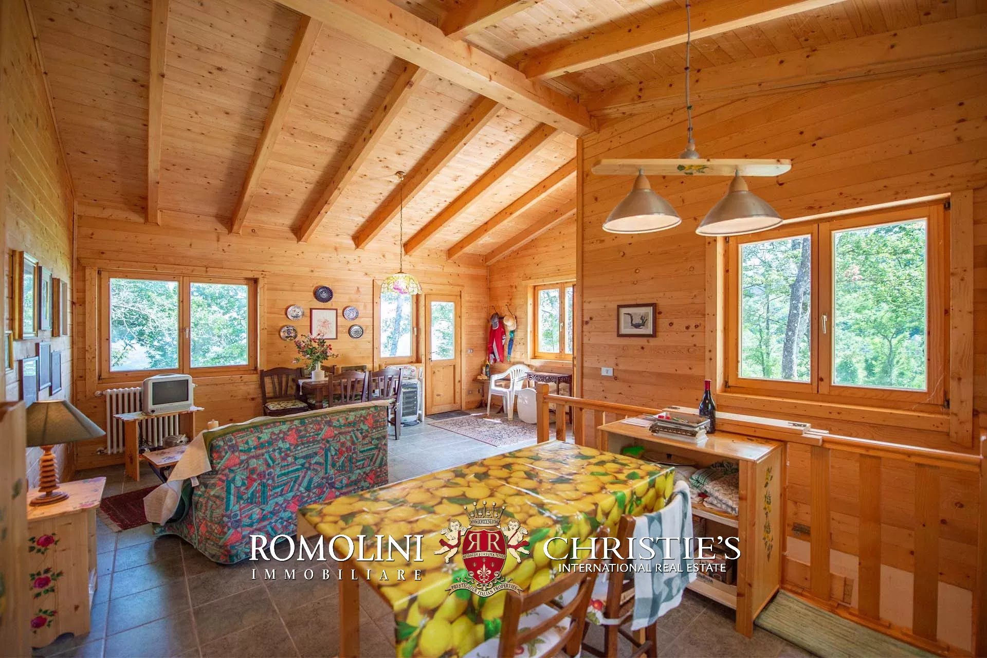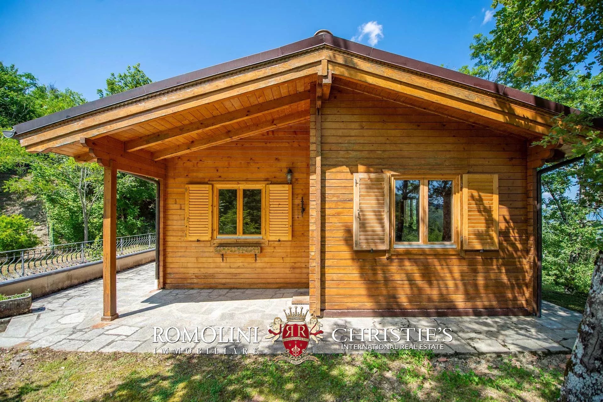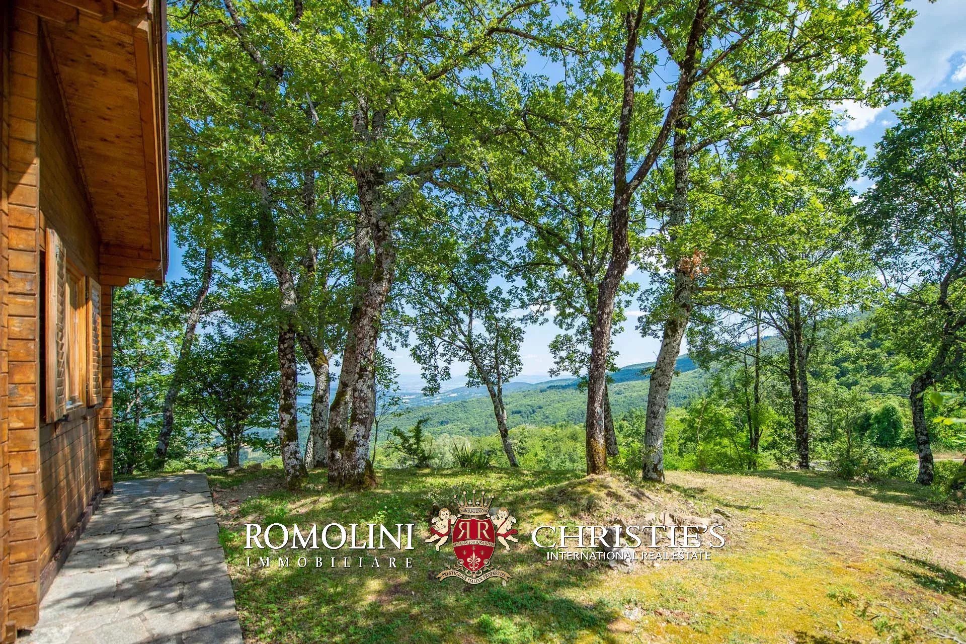 Nicht weit vom historischen Zentrum von Caprese Michelangelo entfernt, in panoramischer Lage mit Blick auf den Montedoglio-See, steht ein neu erbautes Chalet mit Garten zum Verkauf.