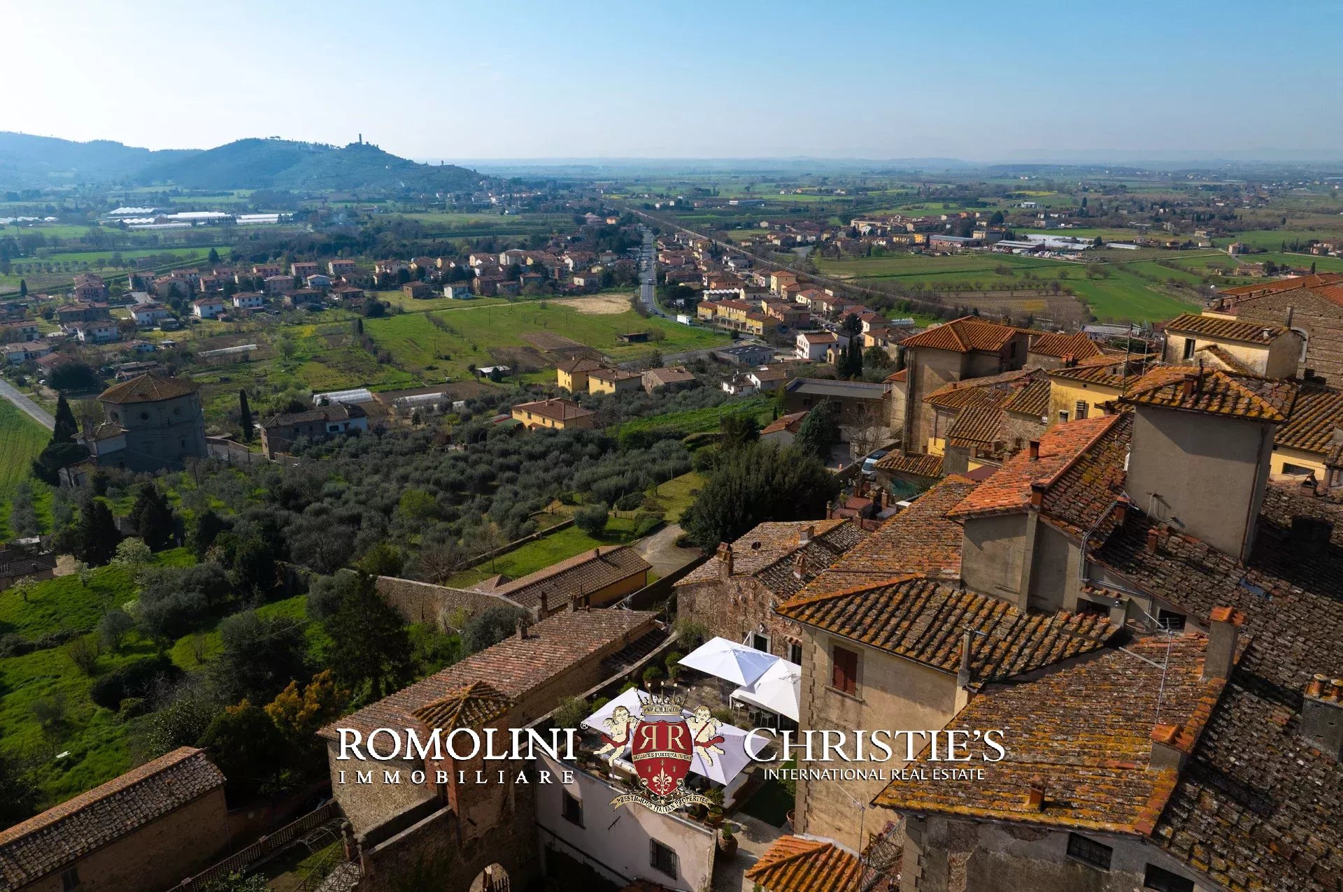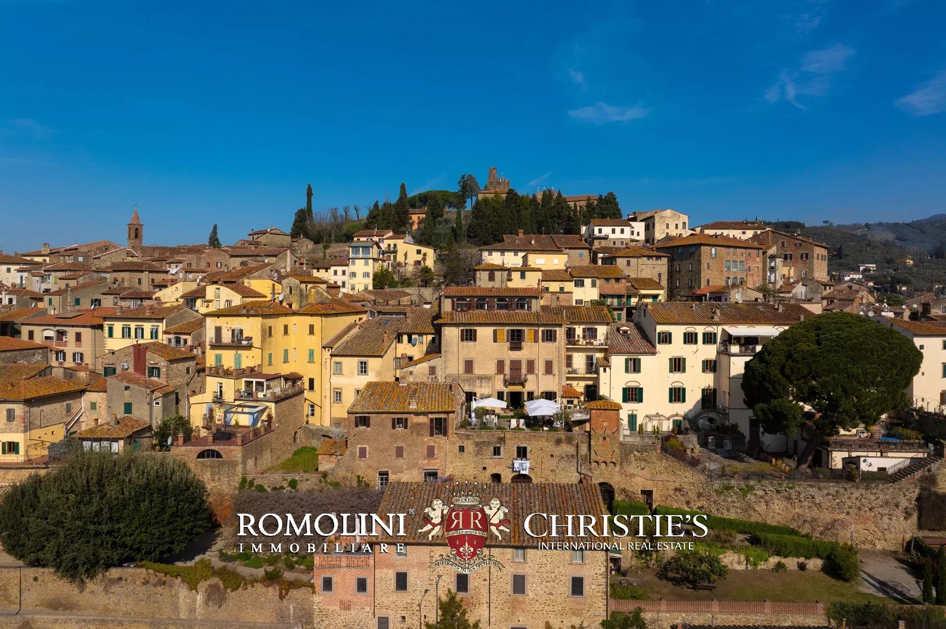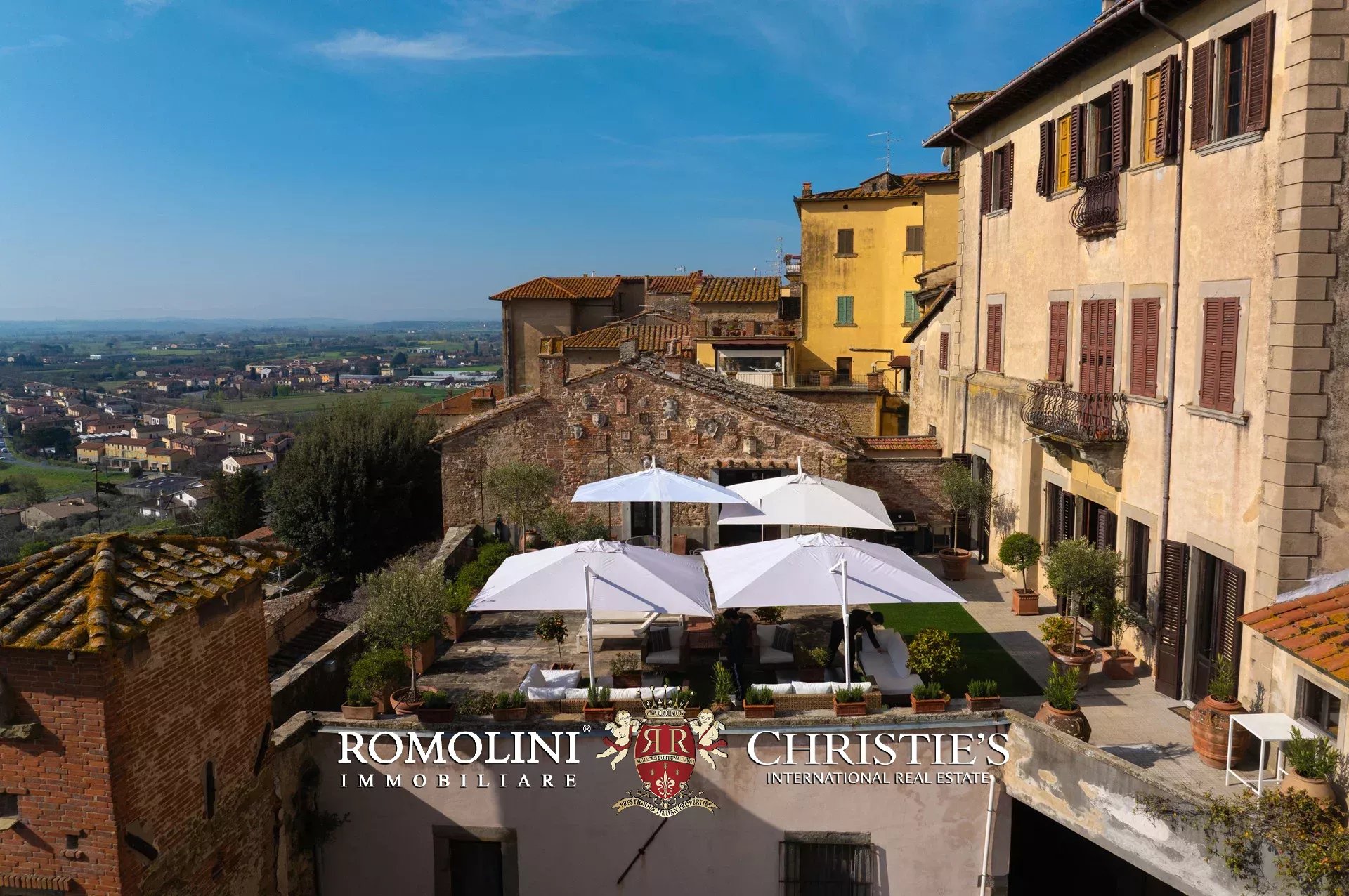 Diese außergewöhnliche Residenz liegt am Rande der mittelalterlichen Stadtmauer und bietet einen Panoramablick von seltener Schönheit auf das Tal. Die Lage des Dorfes Castiglion Fiorentino ist strategisch günstig, zwischen den faszinierenden etruskischen Städten Arezzo und Cortona.