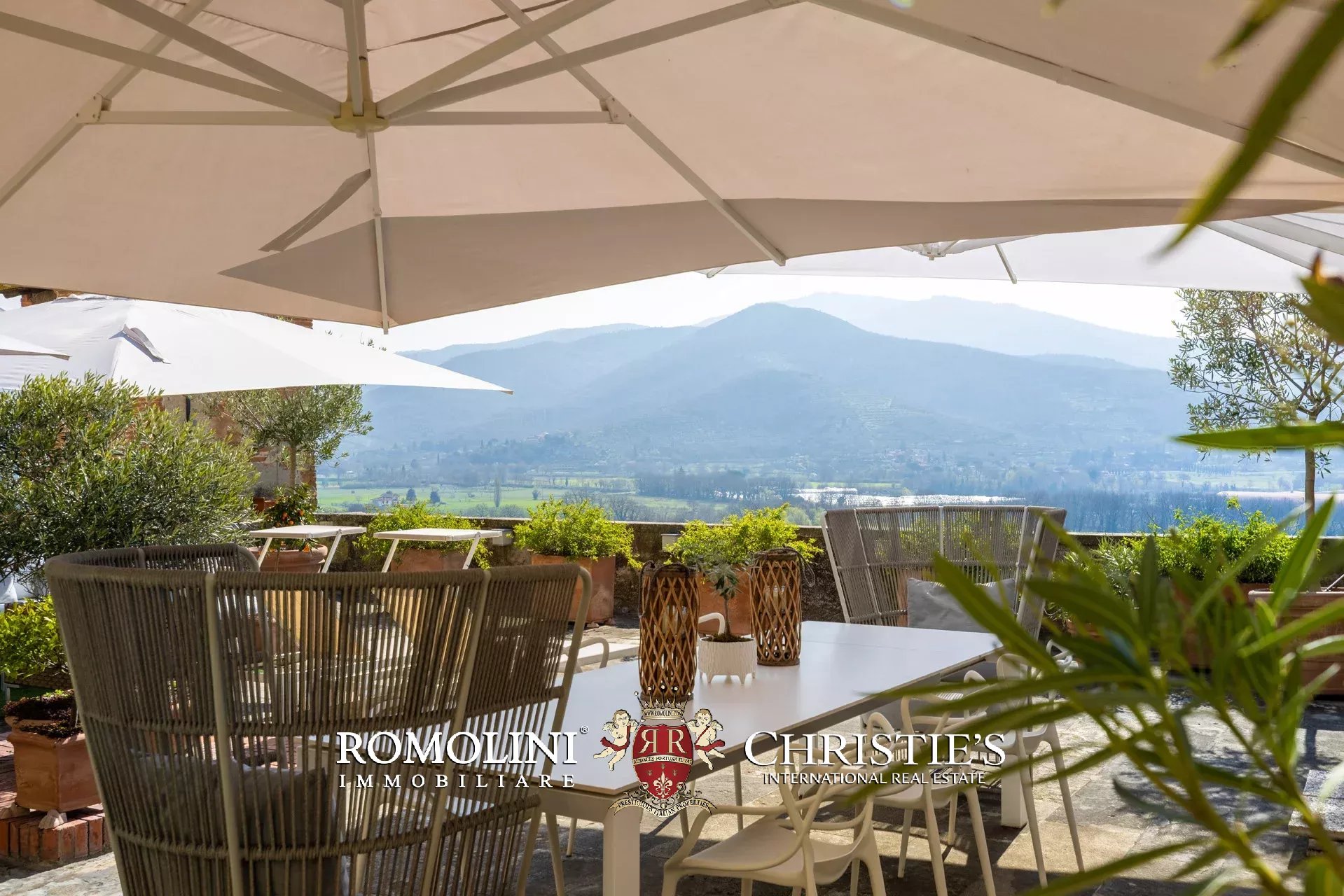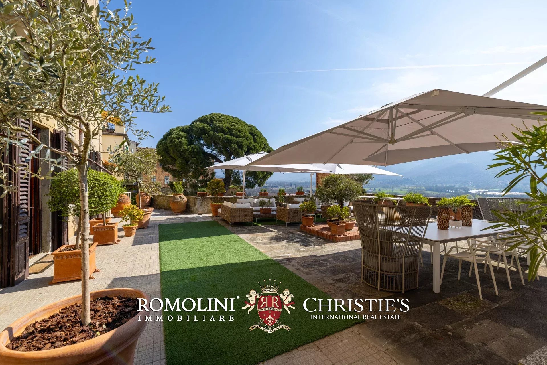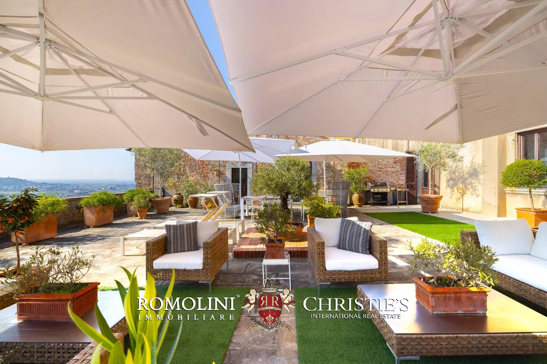 Die Terrasse, die durch ihre Größe (ca. 220 m²) und ihren Panoramablick besticht, ist ein einzigartiger Außenbereich mit einem privilegierten Blick auf die Valdichiana, die Burg von Montecchio und die historischen Dächer des Dorfes – ein idealer Ort für gesellige Momente mit Familie und Gästen.