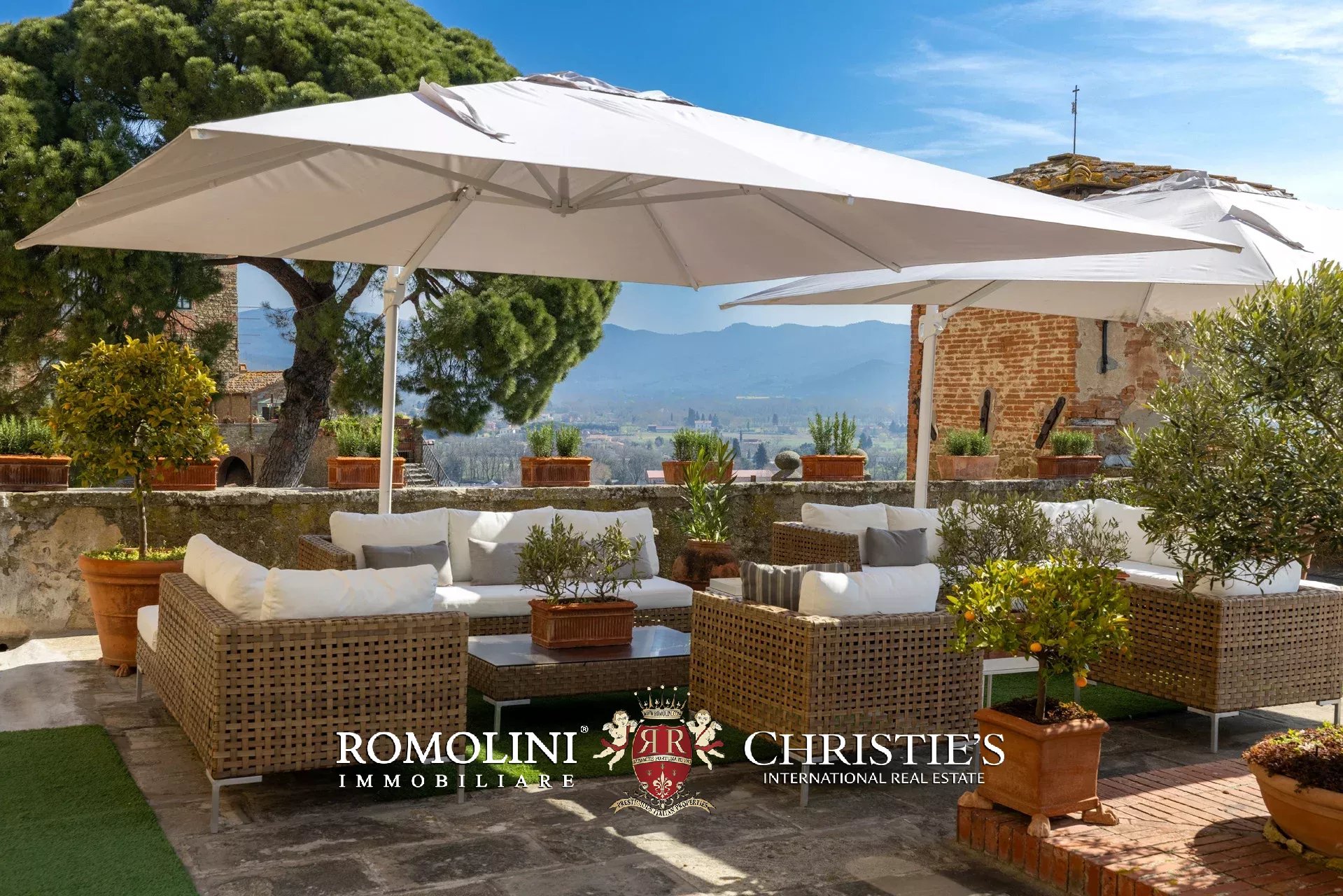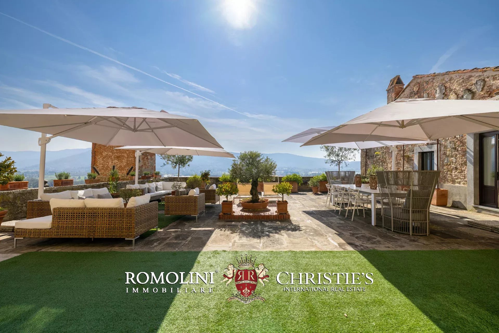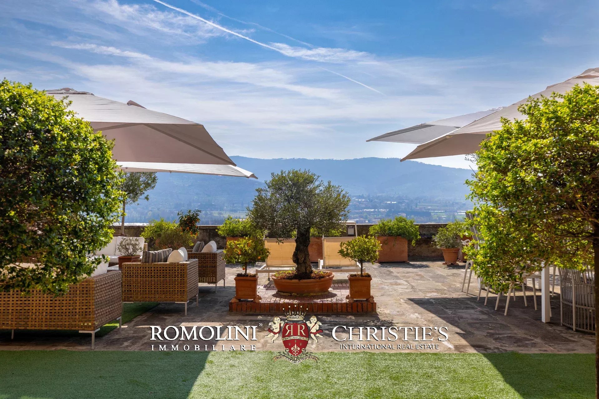 Die Terrasse, die durch ihre Größe (ca. 220 m²) und ihren Panoramablick besticht, ist ein einzigartiger Außenbereich mit einem privilegierten Blick auf die Valdichiana, die Burg von Montecchio und die historischen Dächer des Dorfes – ein idealer Ort für gesellige Momente mit Familie und Gästen.