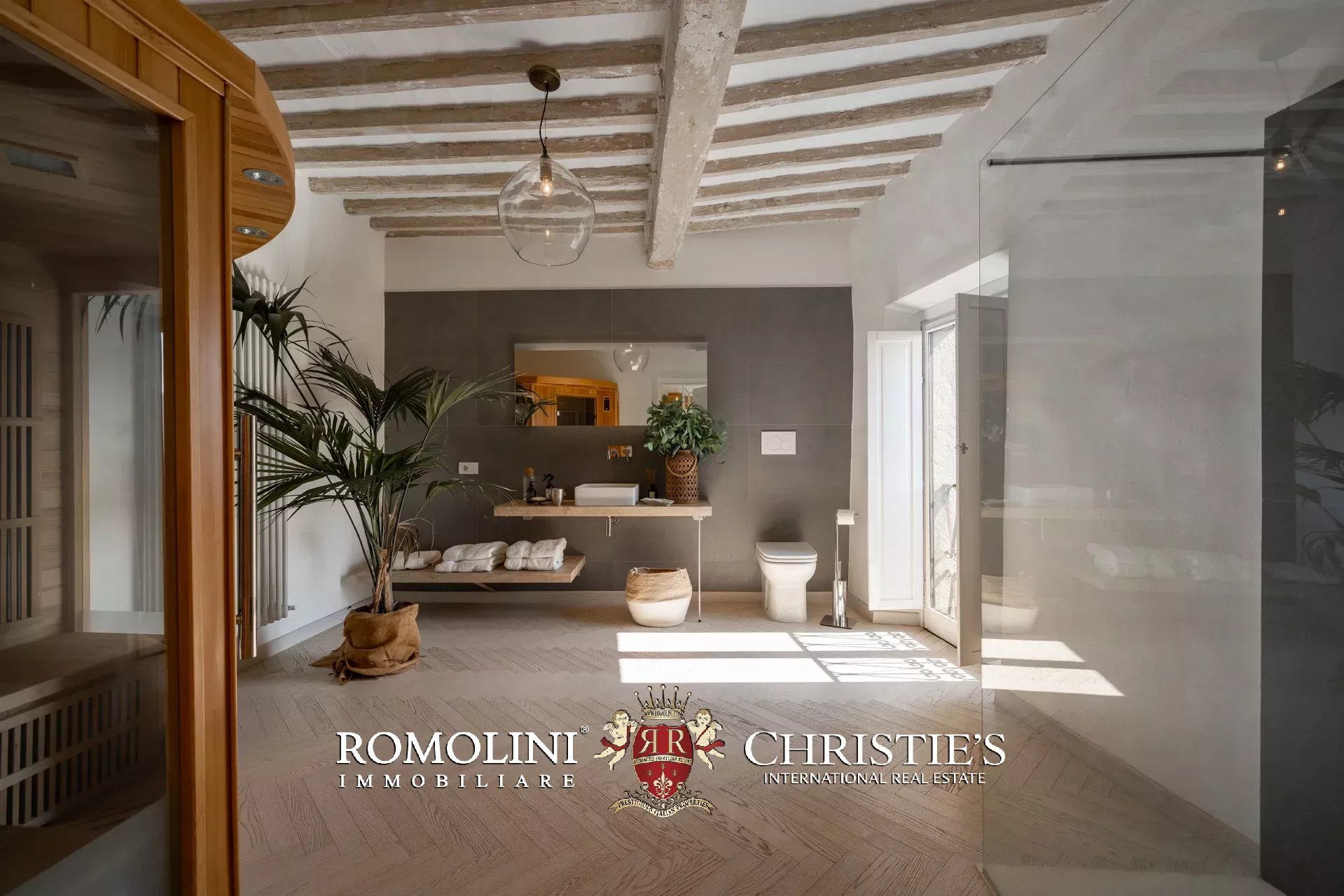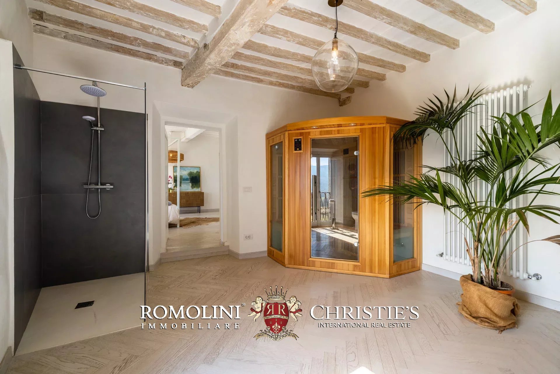 Das Anwesen wird durch drei weitere Zimmer ergänzt, die sich durch Gewölbedecken oder sichtbare Holzbalken auszeichnen; eines davon verfügt zudem über eine eigene Sauna.