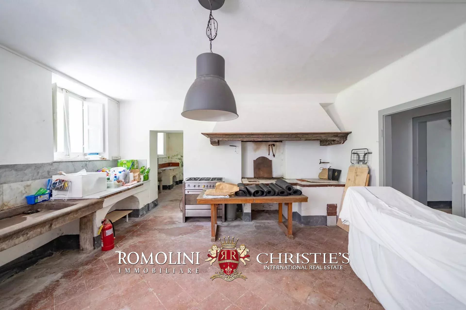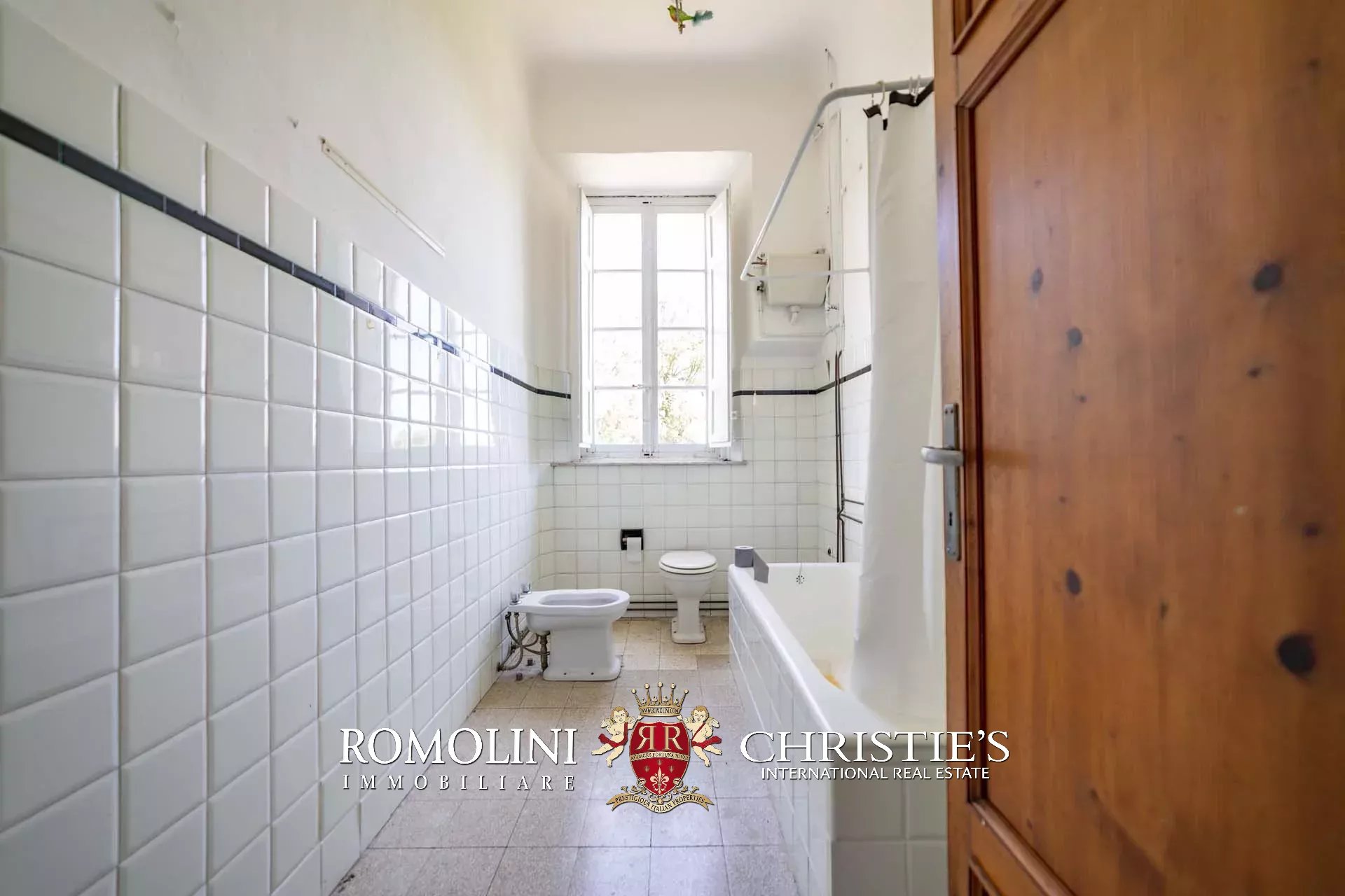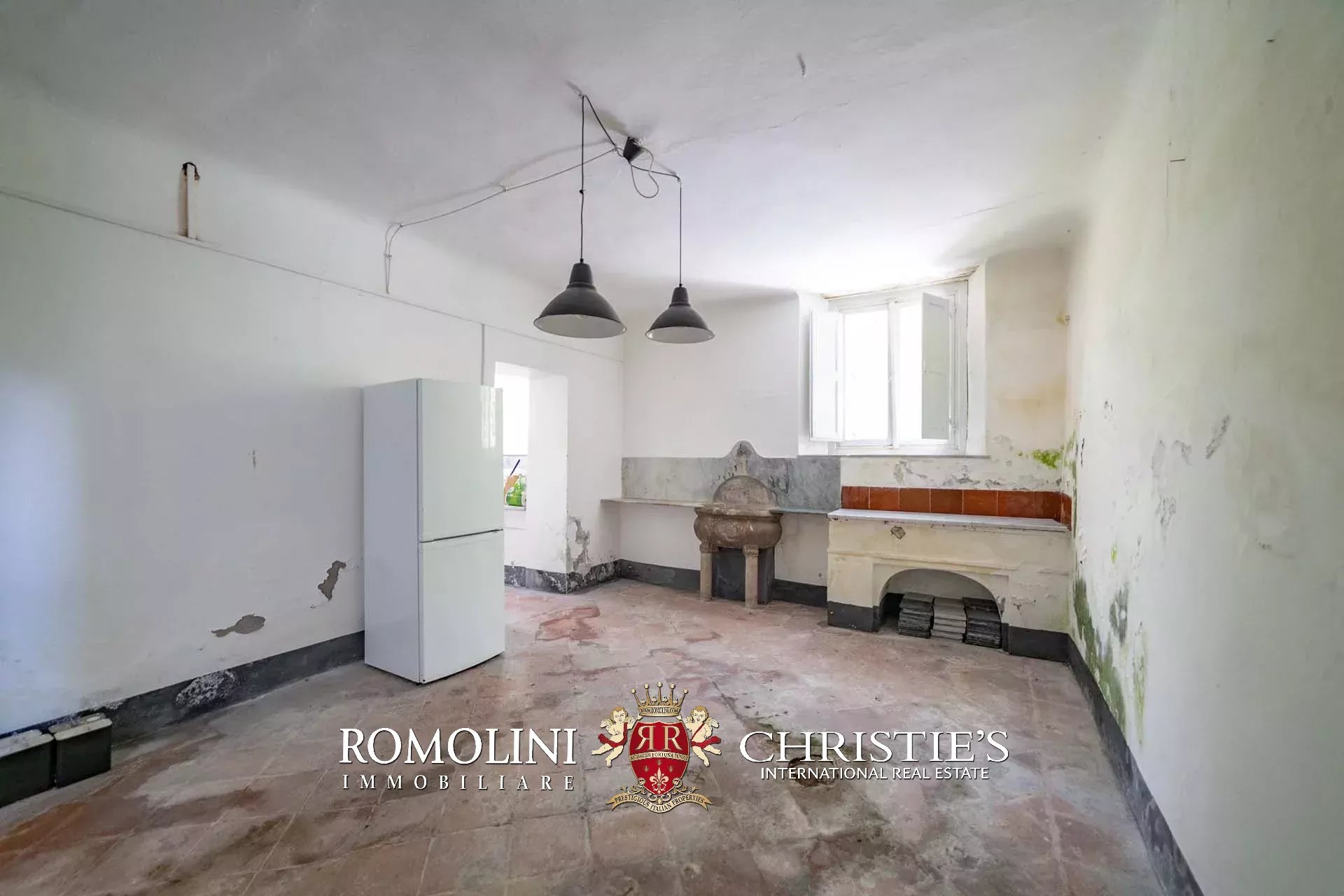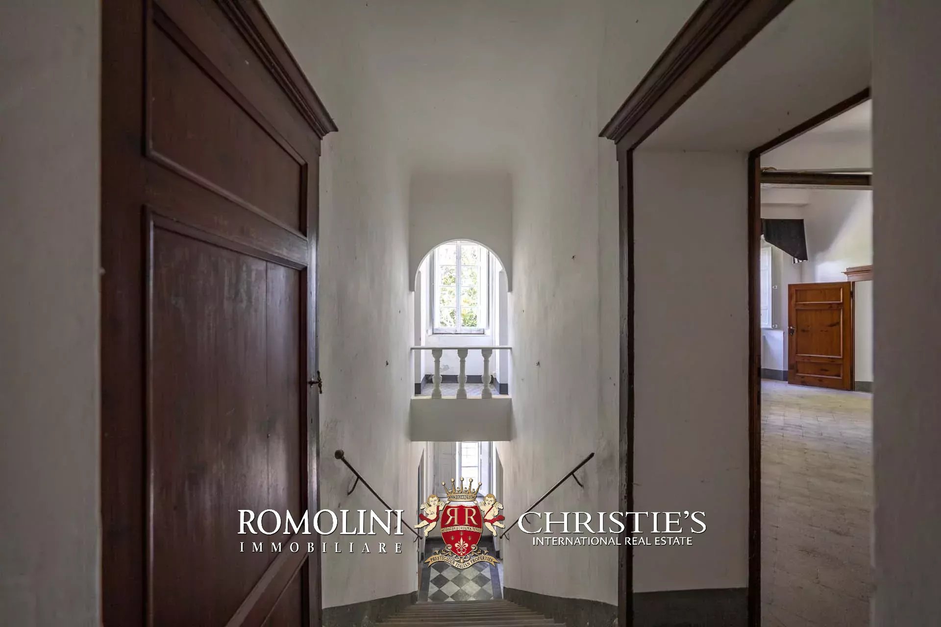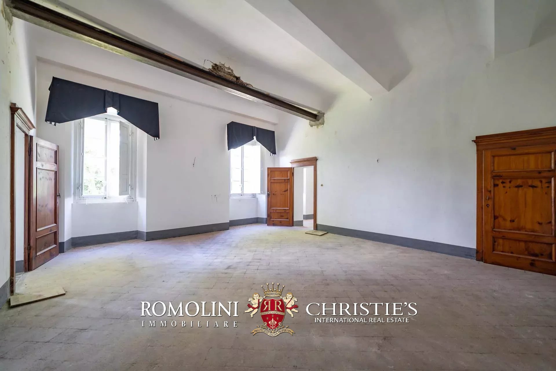 Just outside a medieval town in the province of Lucca, period villa with park, manorial chapel and swimming pool for sale. The property, dating back to the 16th century, consists of several buildings including a guesthouse and the old barn for a total of over 1,800 m². The villa is in need of some restoration work, while the guesthouse is in excellent condition and regularly rented out to tourists and holidaymakers. The property is completed by 5.8 hectares of land with park, small vineyard and 100 olive trees.
