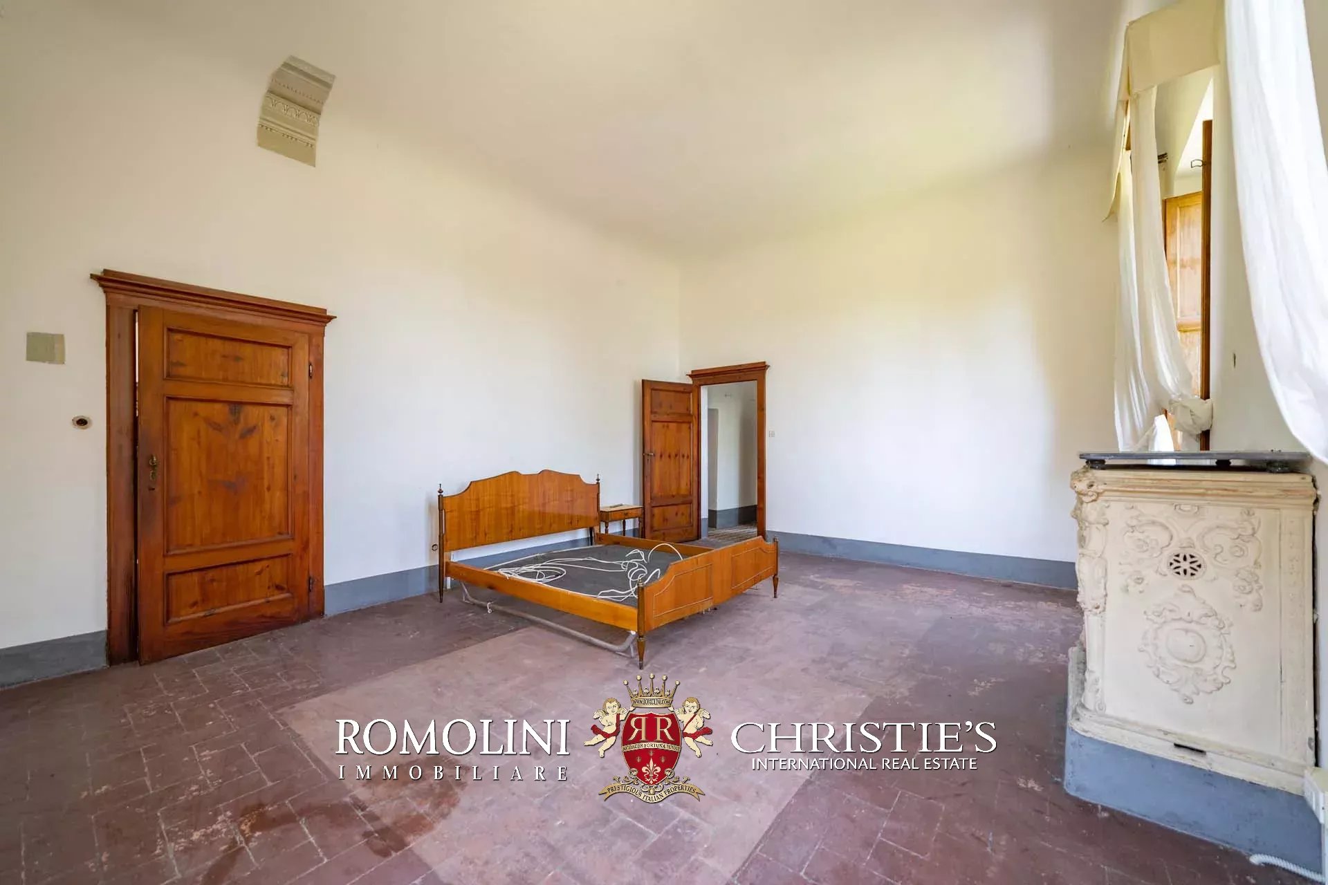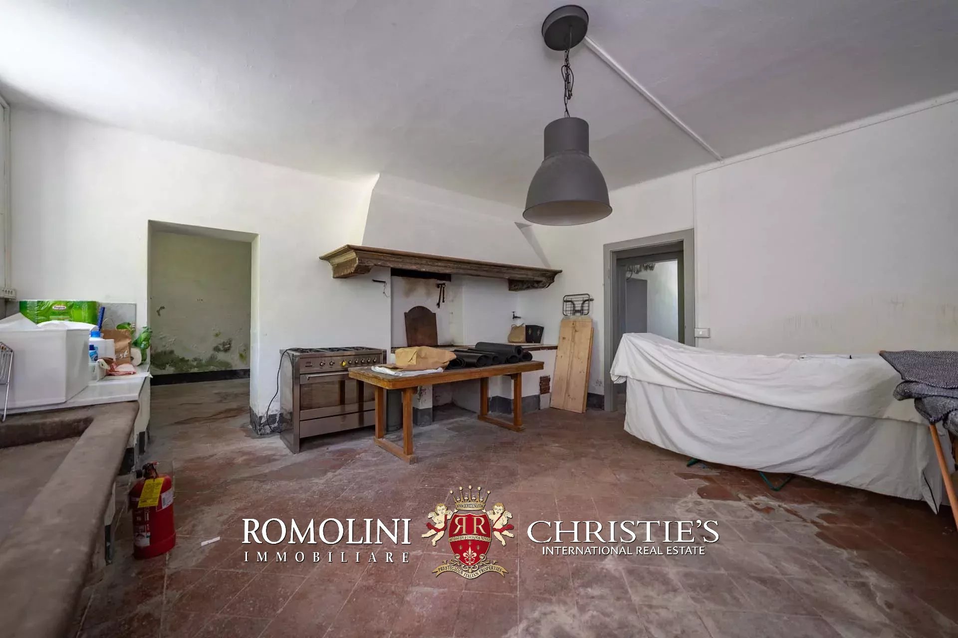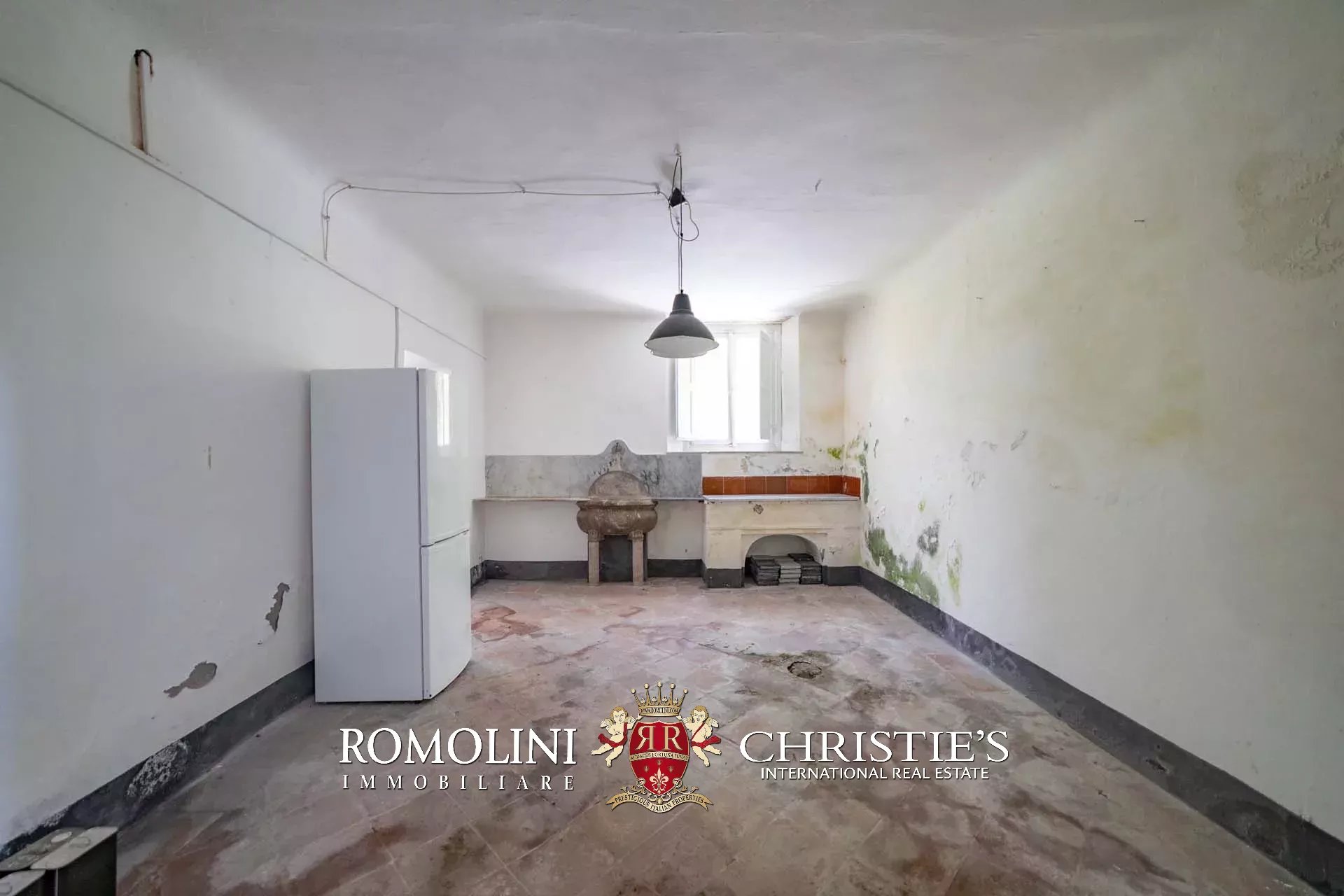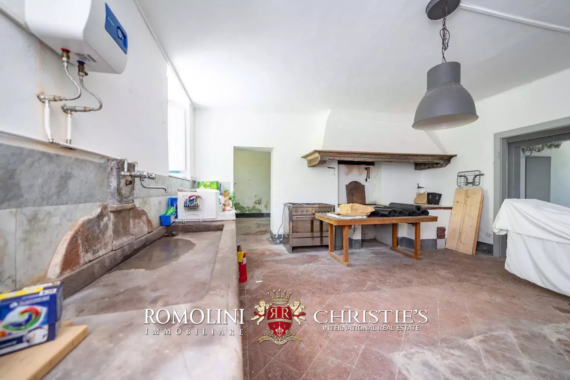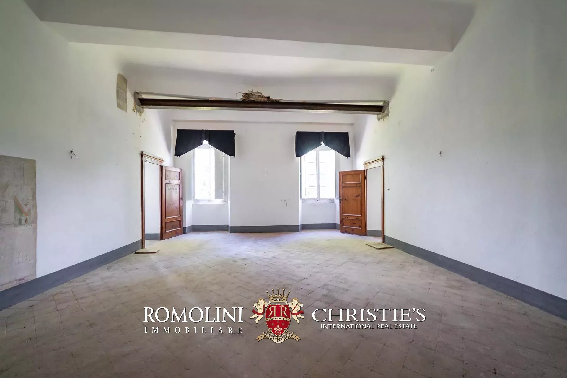 Just outside a medieval town in the province of Lucca, period villa with park, manorial chapel and swimming pool for sale. The property, dating back to the 16th century, consists of several buildings including a guesthouse and the old barn for a total of over 1,800 m². The villa is in need of some restoration work, while the guesthouse is in excellent condition and regularly rented out to tourists and holidaymakers. The property is completed by 5.8 hectares of land with park, small vineyard and 100 olive trees.