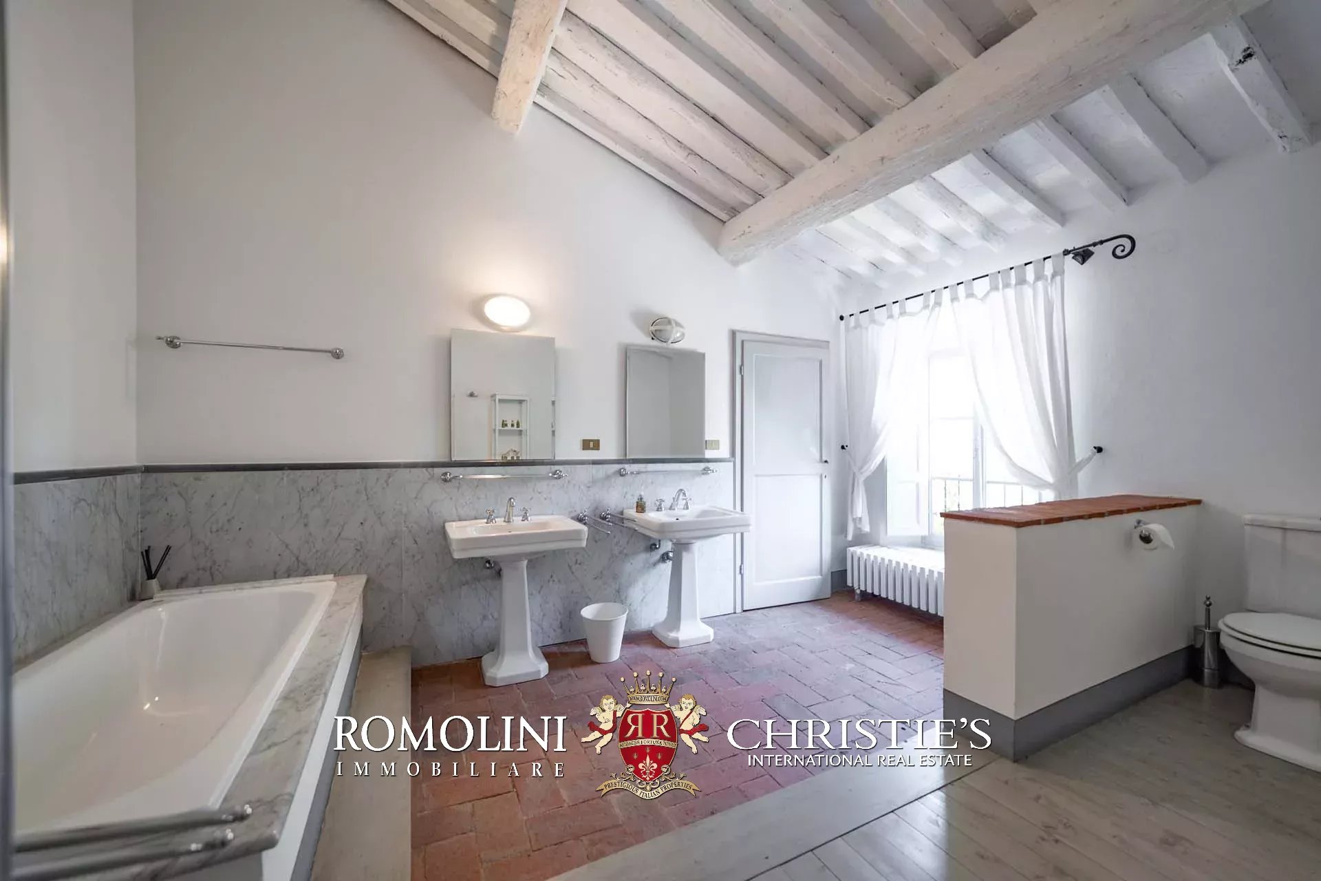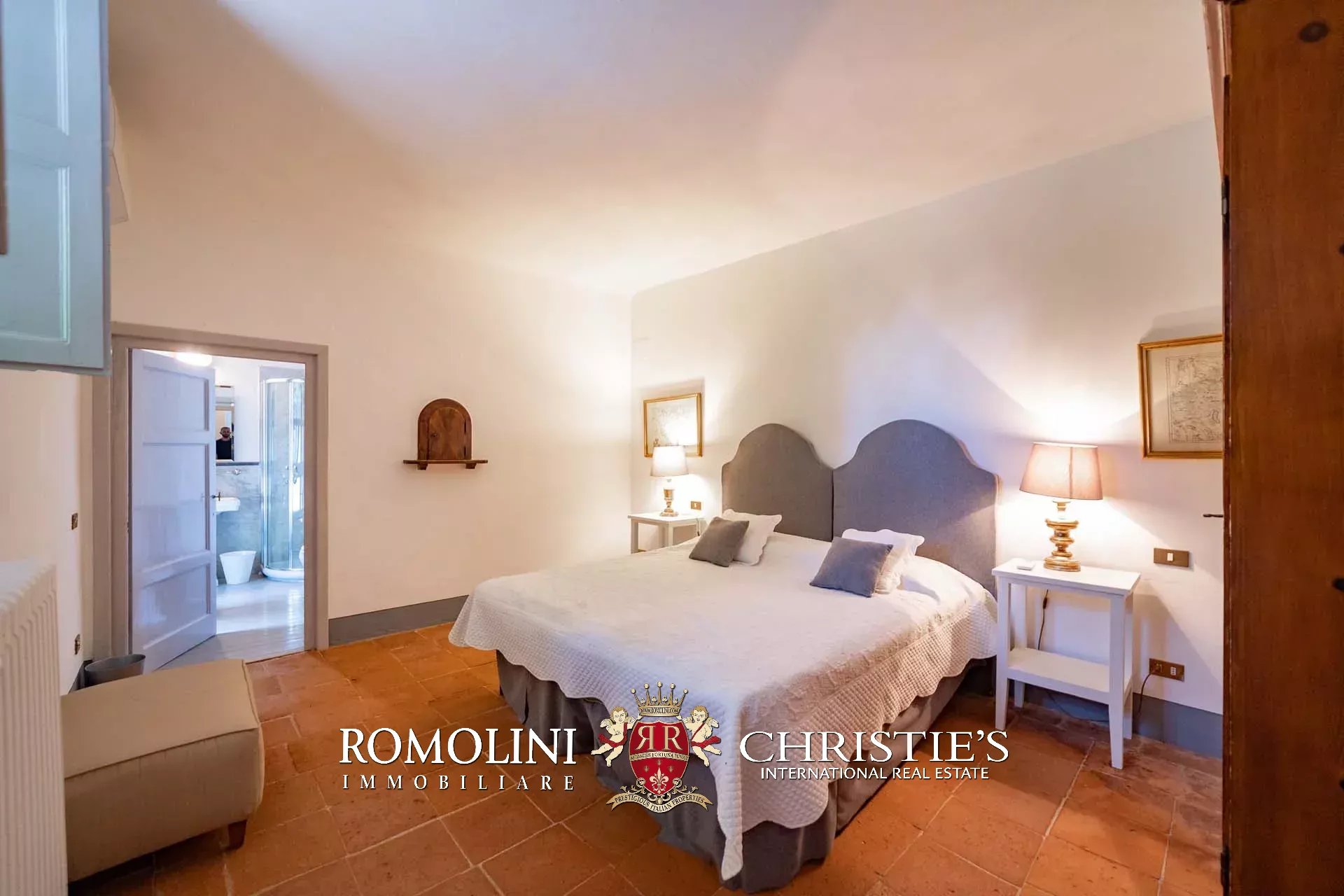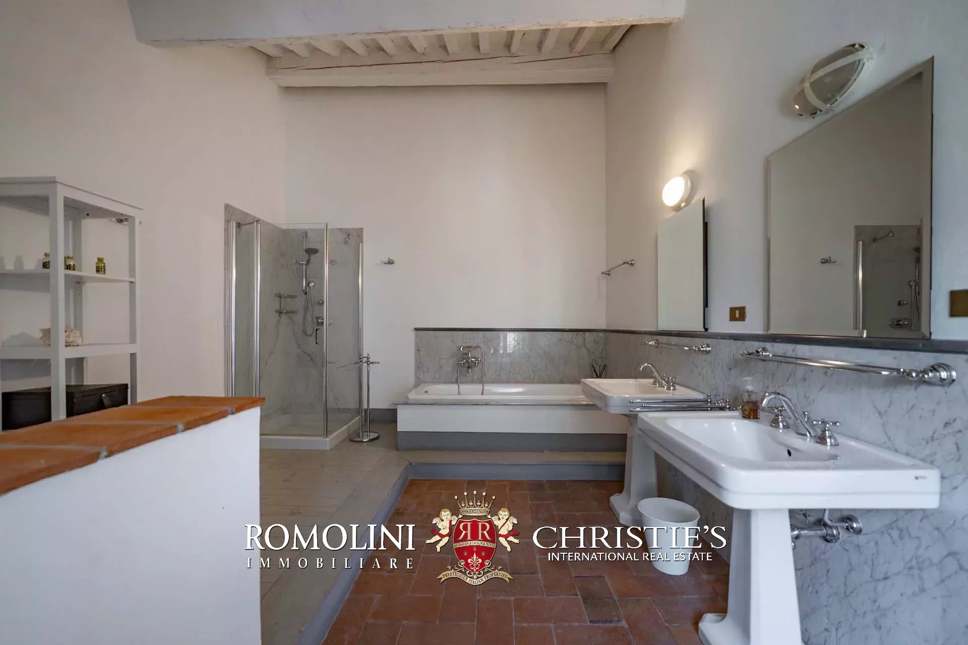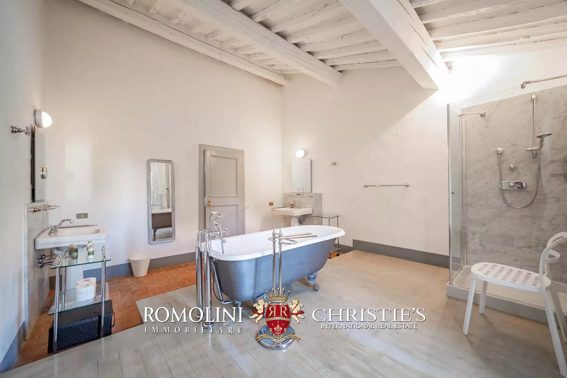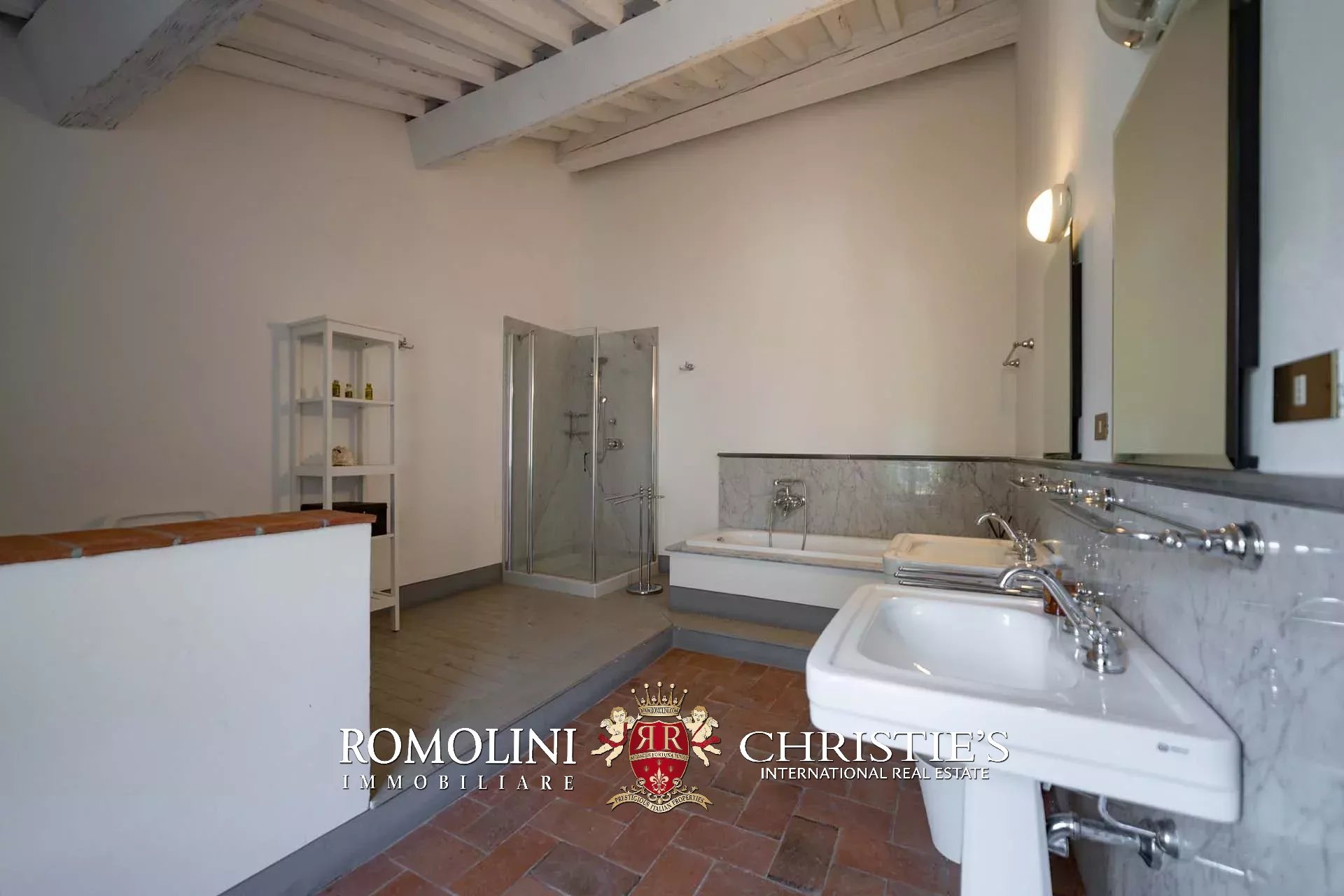 Just outside a medieval town in the province of Lucca, period villa with park, manorial chapel and swimming pool for sale. The property, dating back to the 16th century, consists of several buildings including a guesthouse and the old barn for a total of over 1,800 m². The villa is in need of some restoration work, while the guesthouse is in excellent condition and regularly rented out to tourists and holidaymakers. The property is completed by 5.8 hectares of land with park, small vineyard and 100 olive trees.