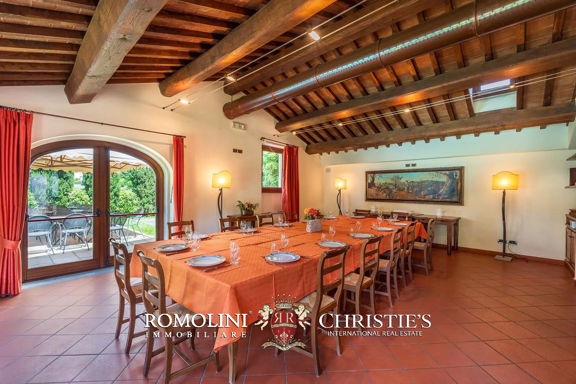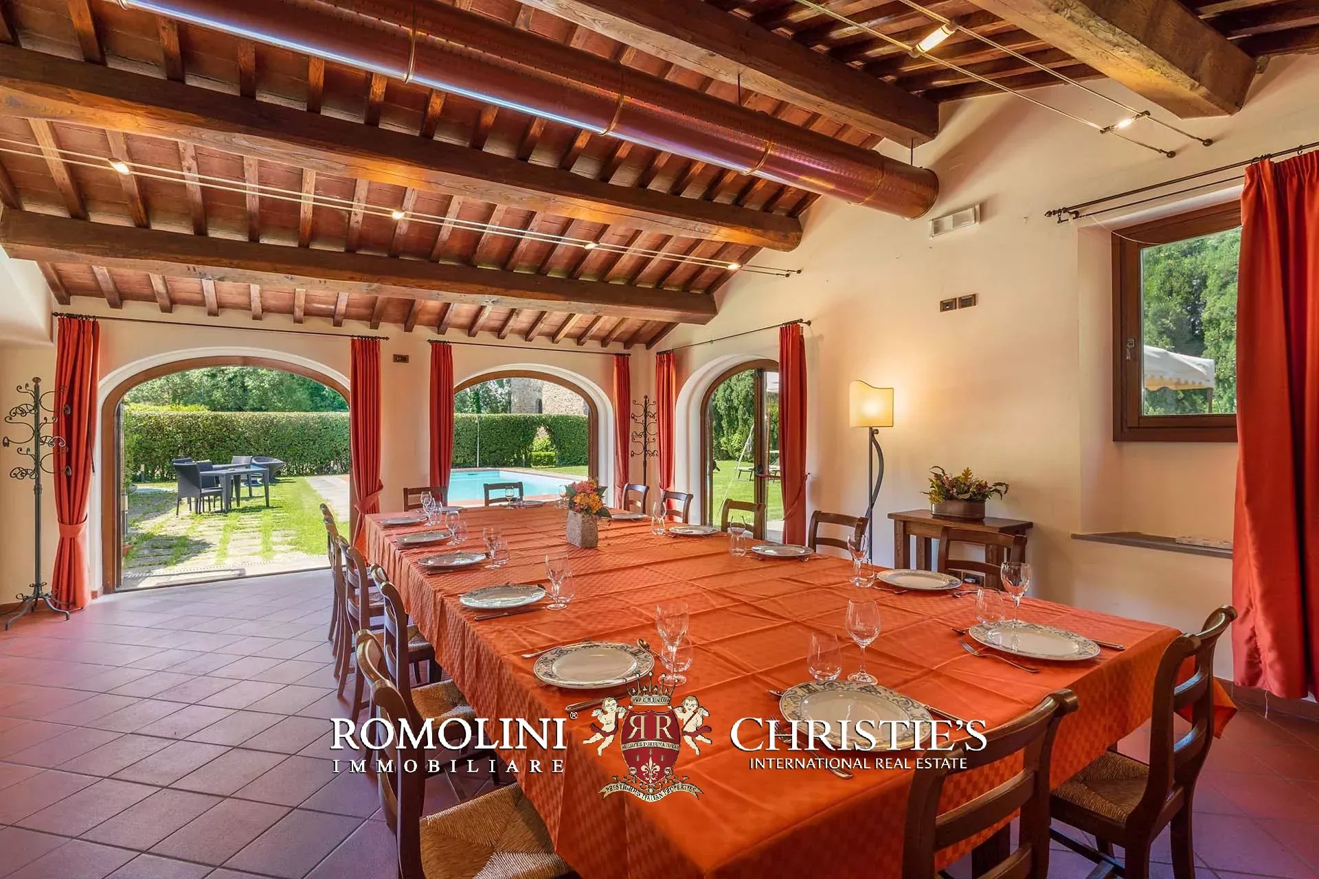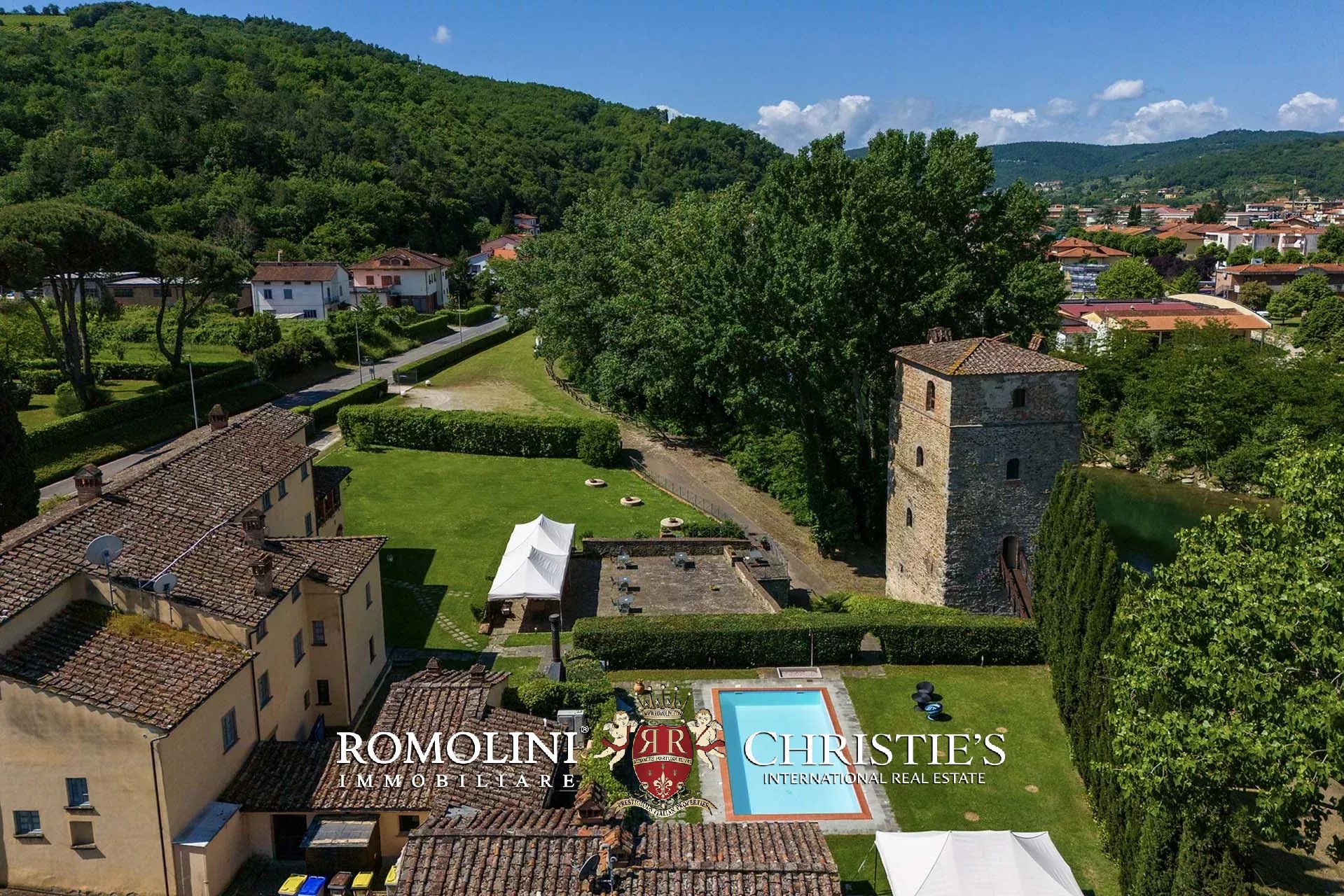 Der Turm und die Villa sind harmonisch durch einen 6.900 m² großen Park mit jahrhundertealten Zypressen und Pappeln verbunden, in dem sich das komplett ausgestattete große Schwimmbad 10 × 5 m, die Sommerterrasse und das Wellnesscenter befinden.