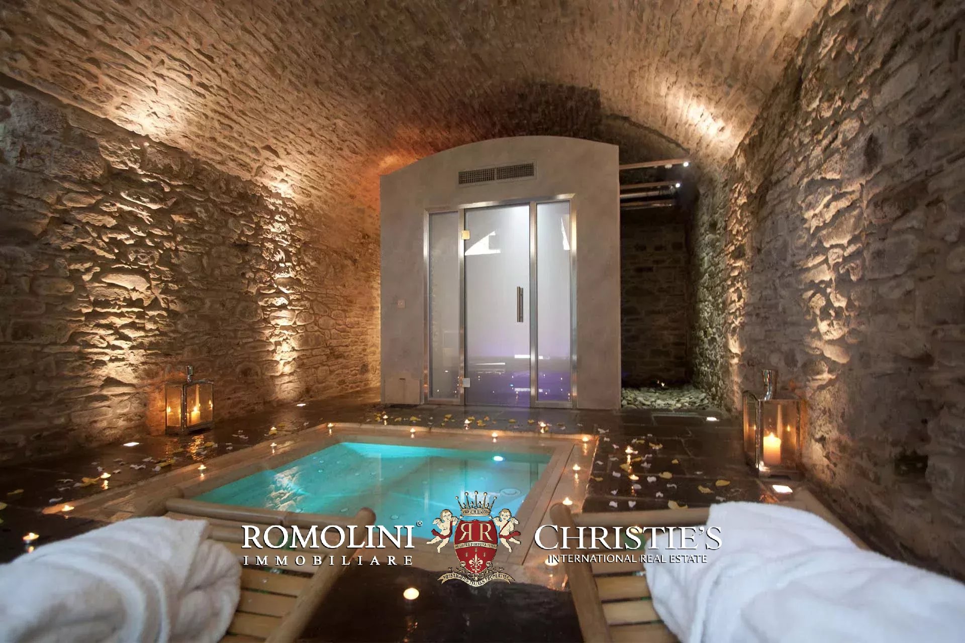 Der Wellnessbereich, der in einer alten mittelalterlichen Grotte gebaut wurde, ist vom Bereich vor dem Schwimmbad aus zugänglich und umfasst einen Whirlpool mit Farbentherapie, ein türkisches Bad mit Thalassotherapie und eine Erlebnisdusche.