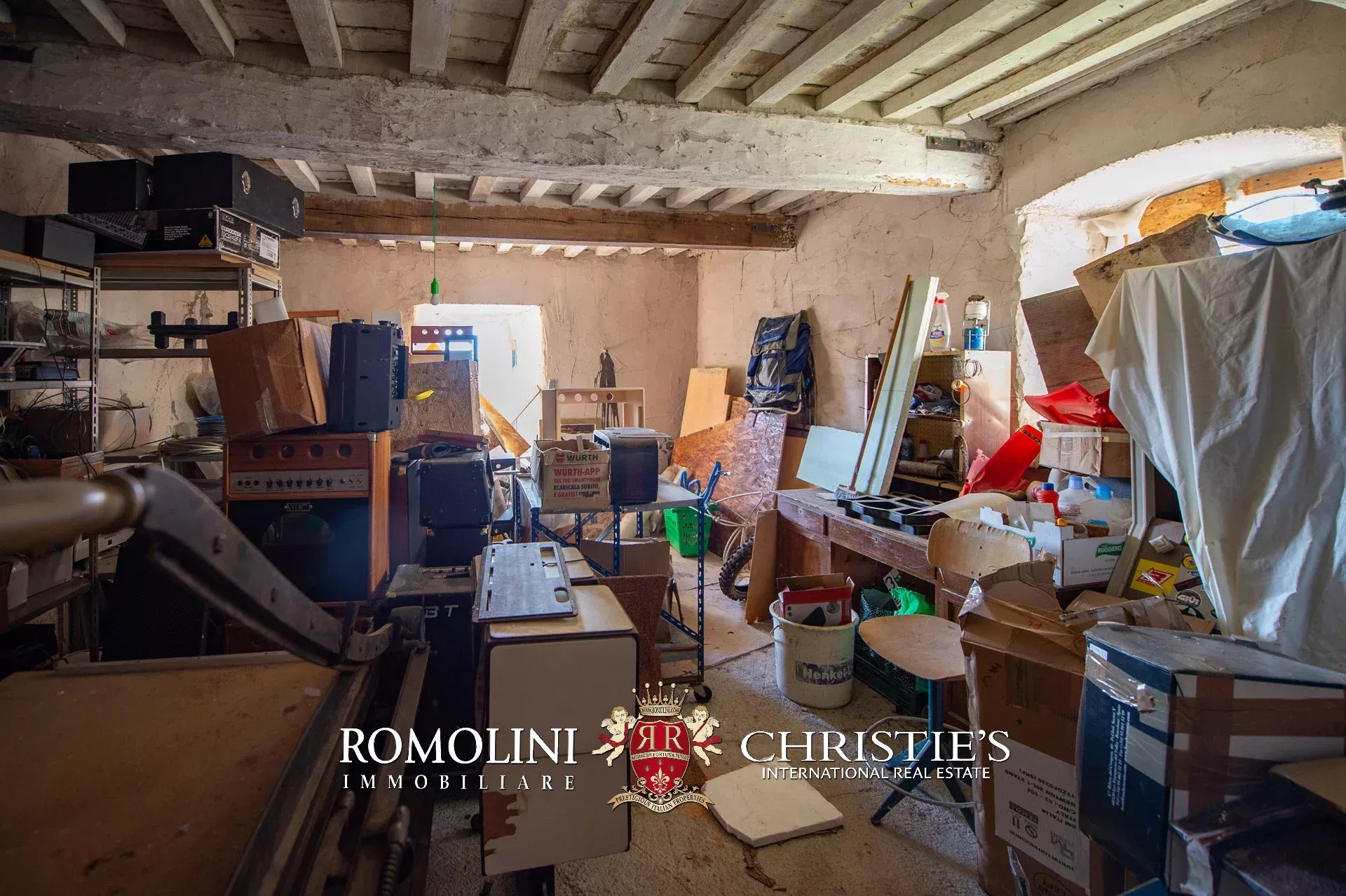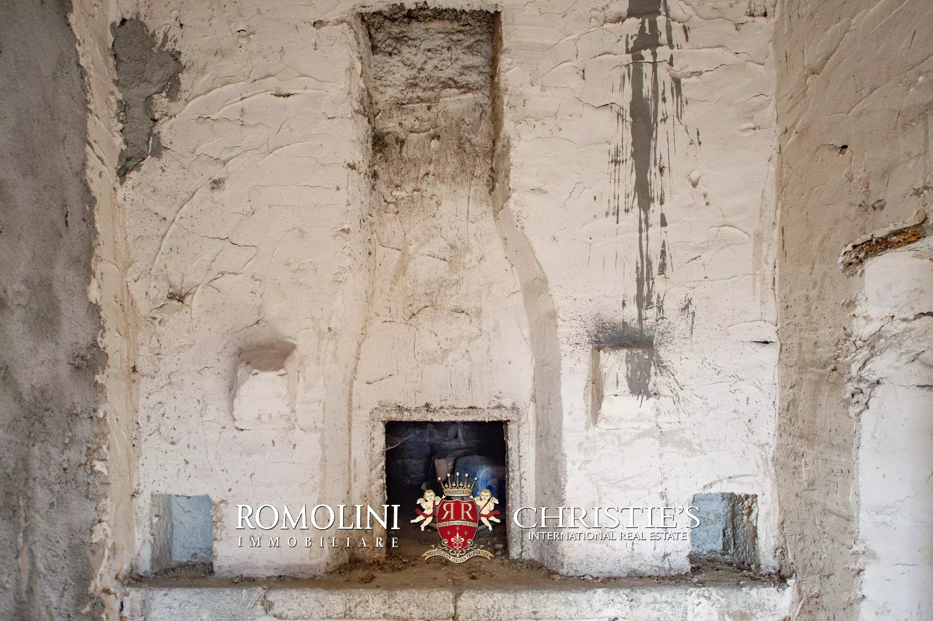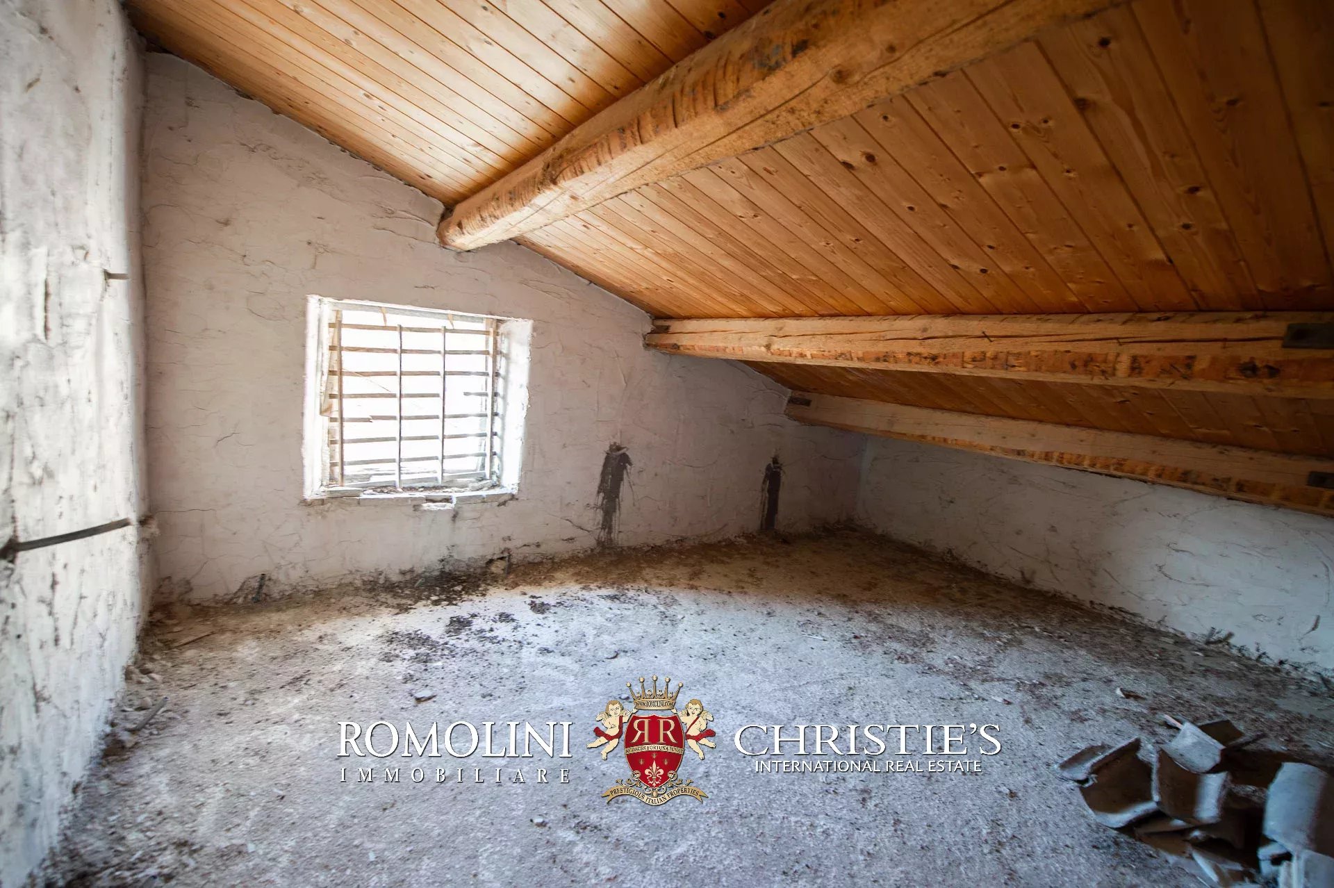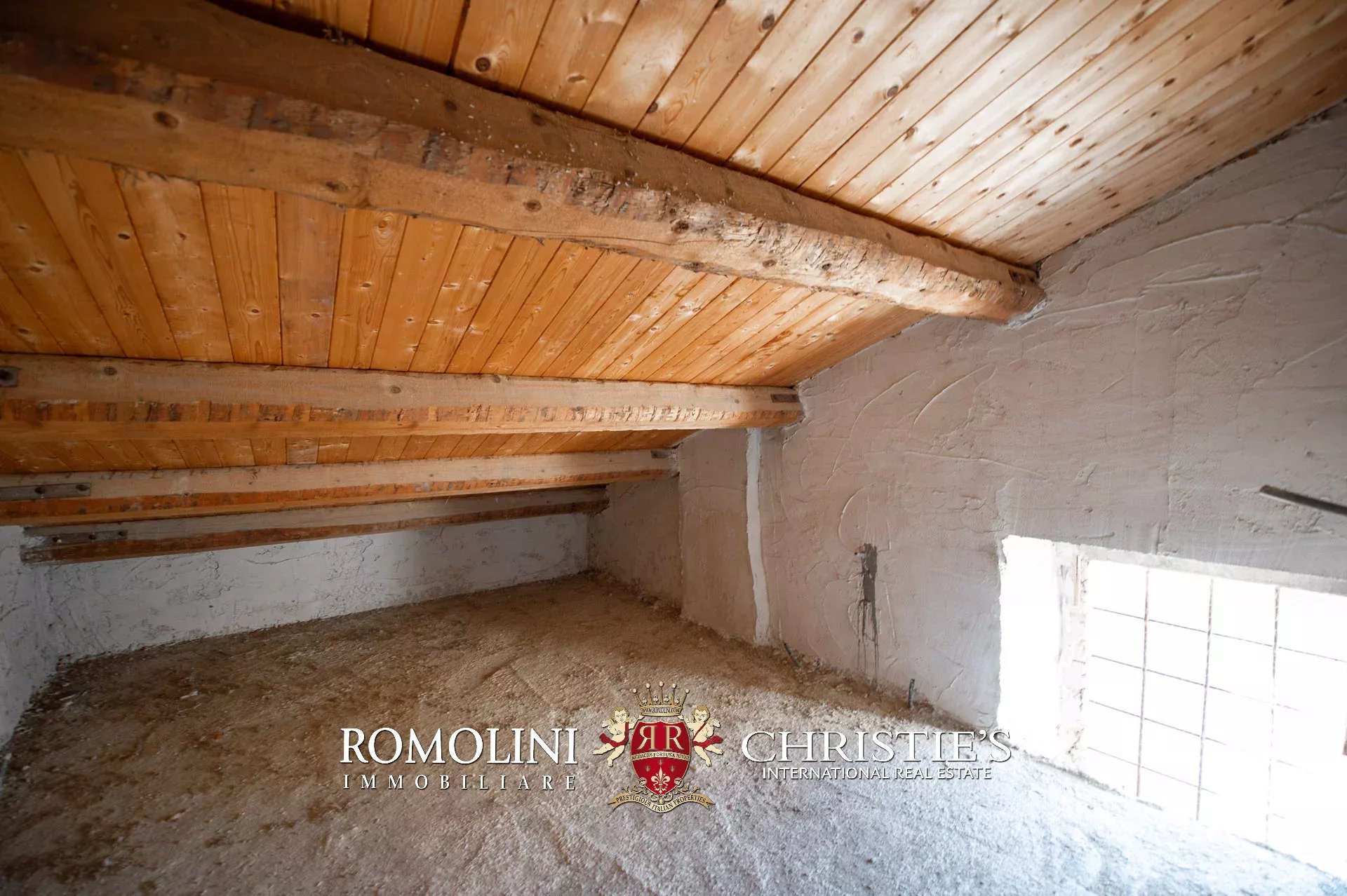 Going further, one reaches the piano nobile, located at the same level as the main avenue. This first piano nobile houses four rooms, the oven area and a large hall once used as a gallery for hunting trophies that leads to a veranda room. Further up, one reaches the second piano nobile, consisting of a parlor with a fireplace connected to a large living room. From here one then proceeds to a veranda living room and two small bedrooms. On the last floor is a large attic with exposed beams and divided into three separate rooms.