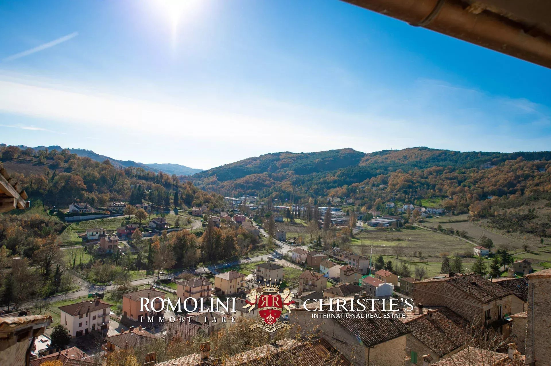 In the heart of Pietralunga, in the heart of the Umbrian countryside and with unparalleled views of the surrounding landscape, historic 13th-century palazzo with hanging garden for sale. The property (over 700 m²) has been consolidated in recent years but needs finishing work on the interior: the large size of the building and the ample rooms within make it very suitable both as a prestigious private residence and as a rental property.