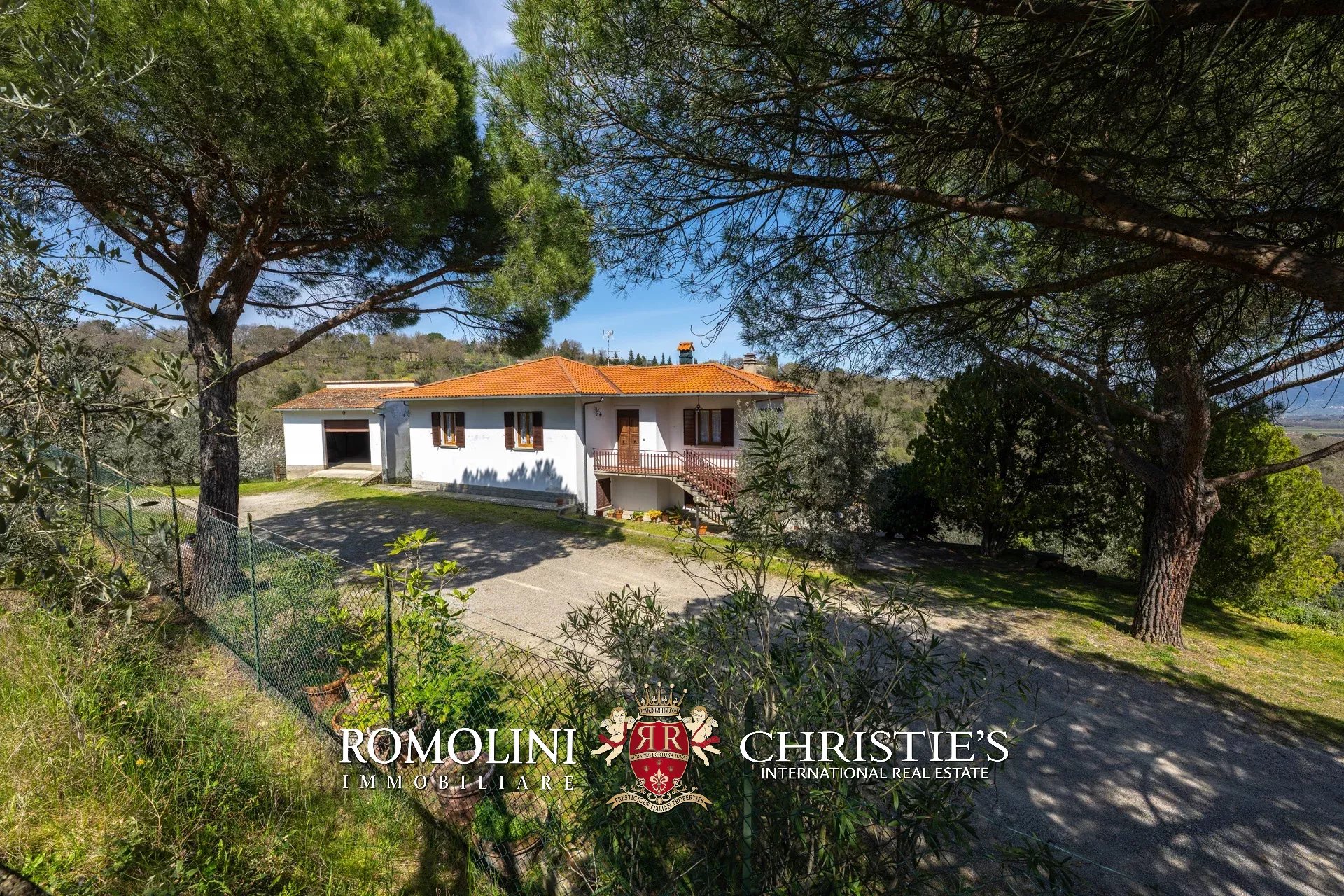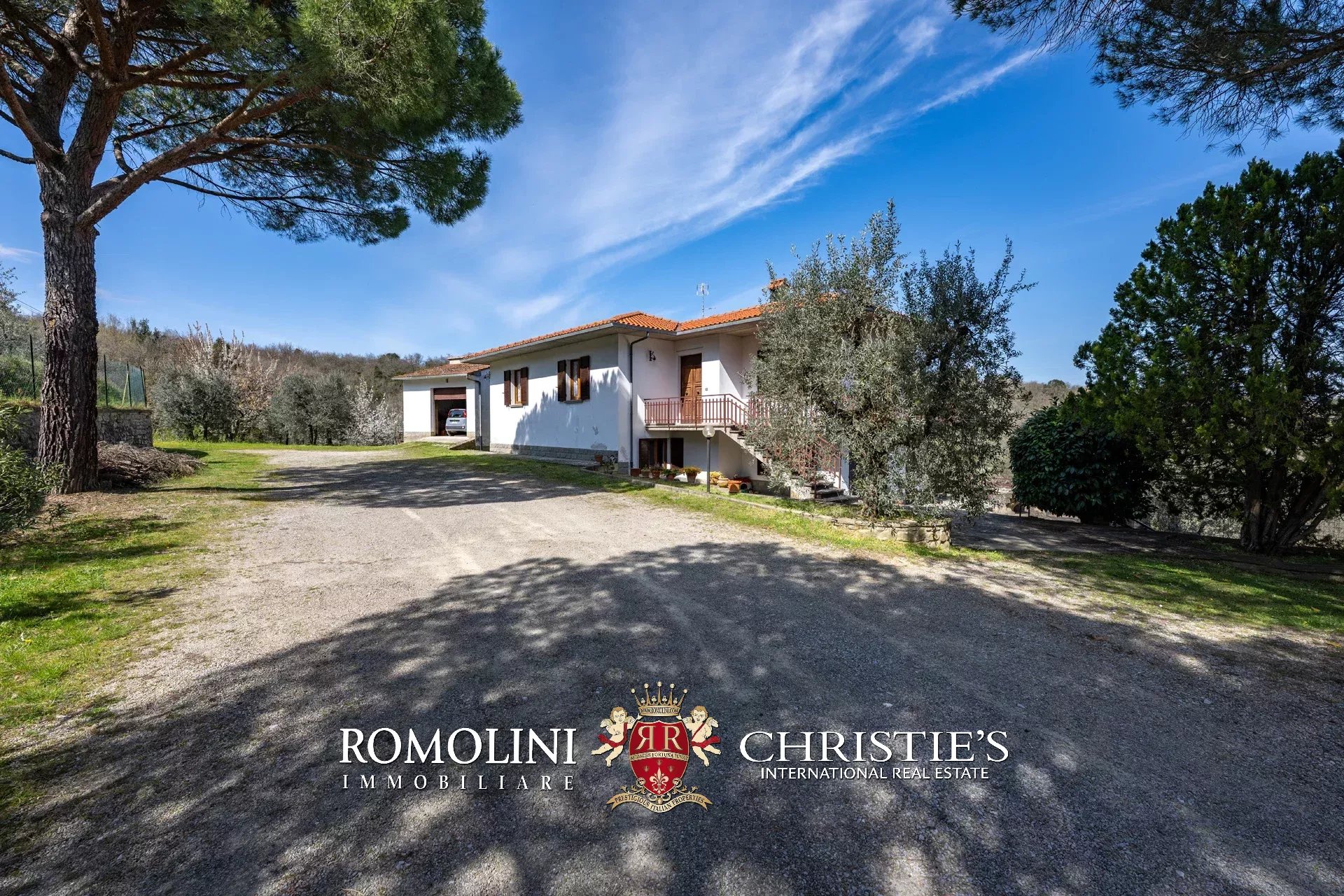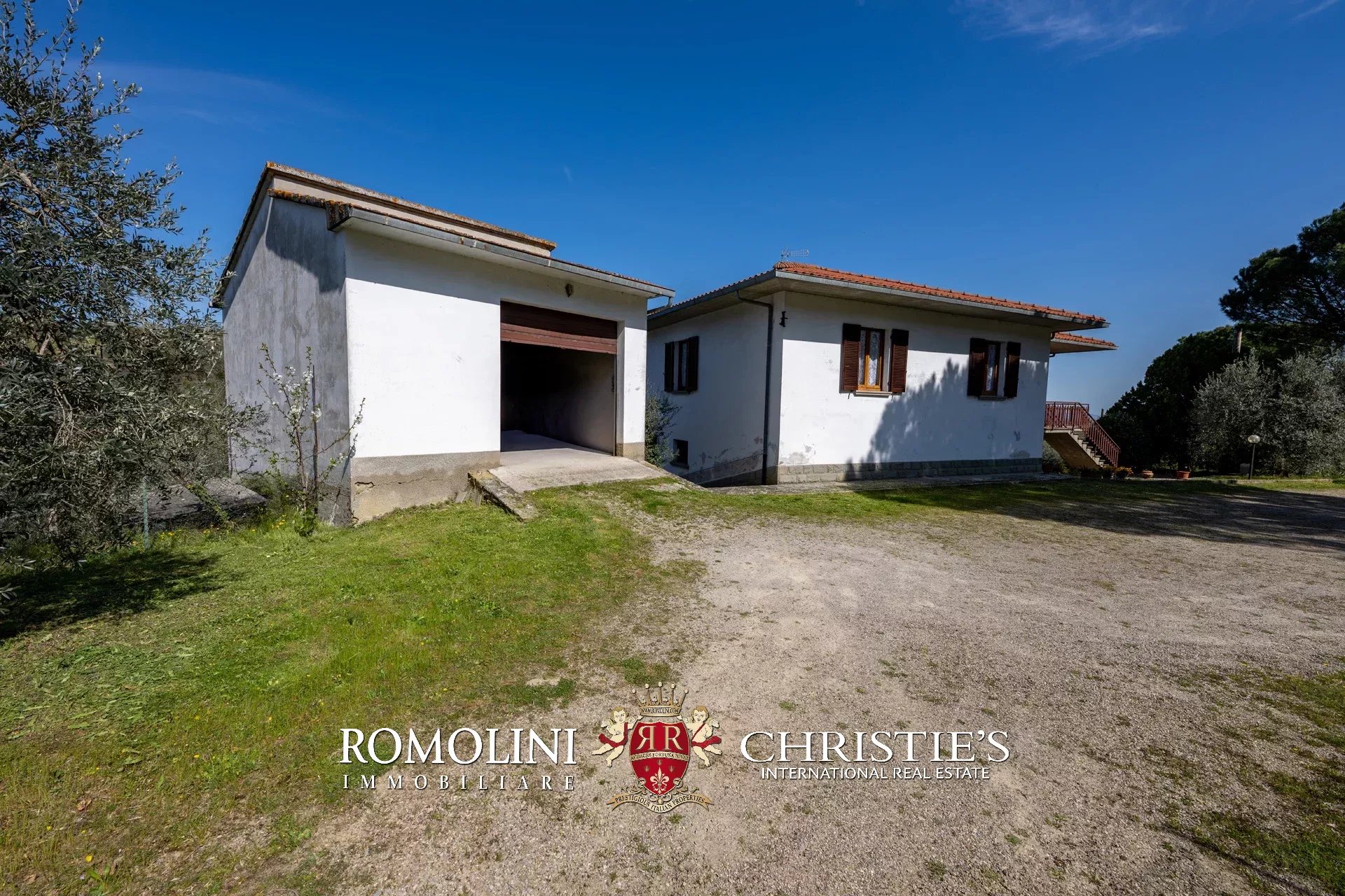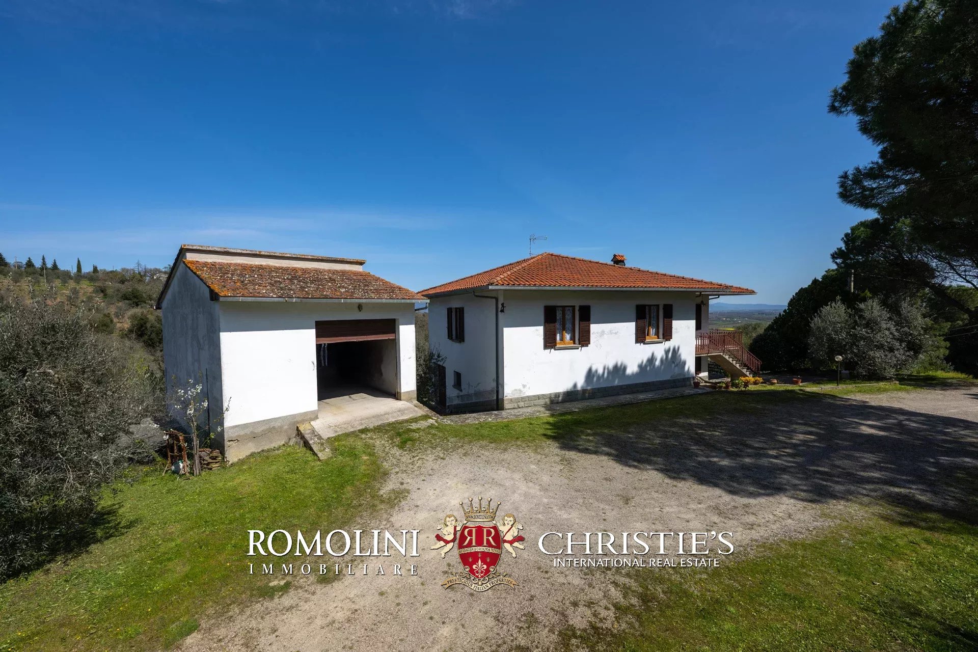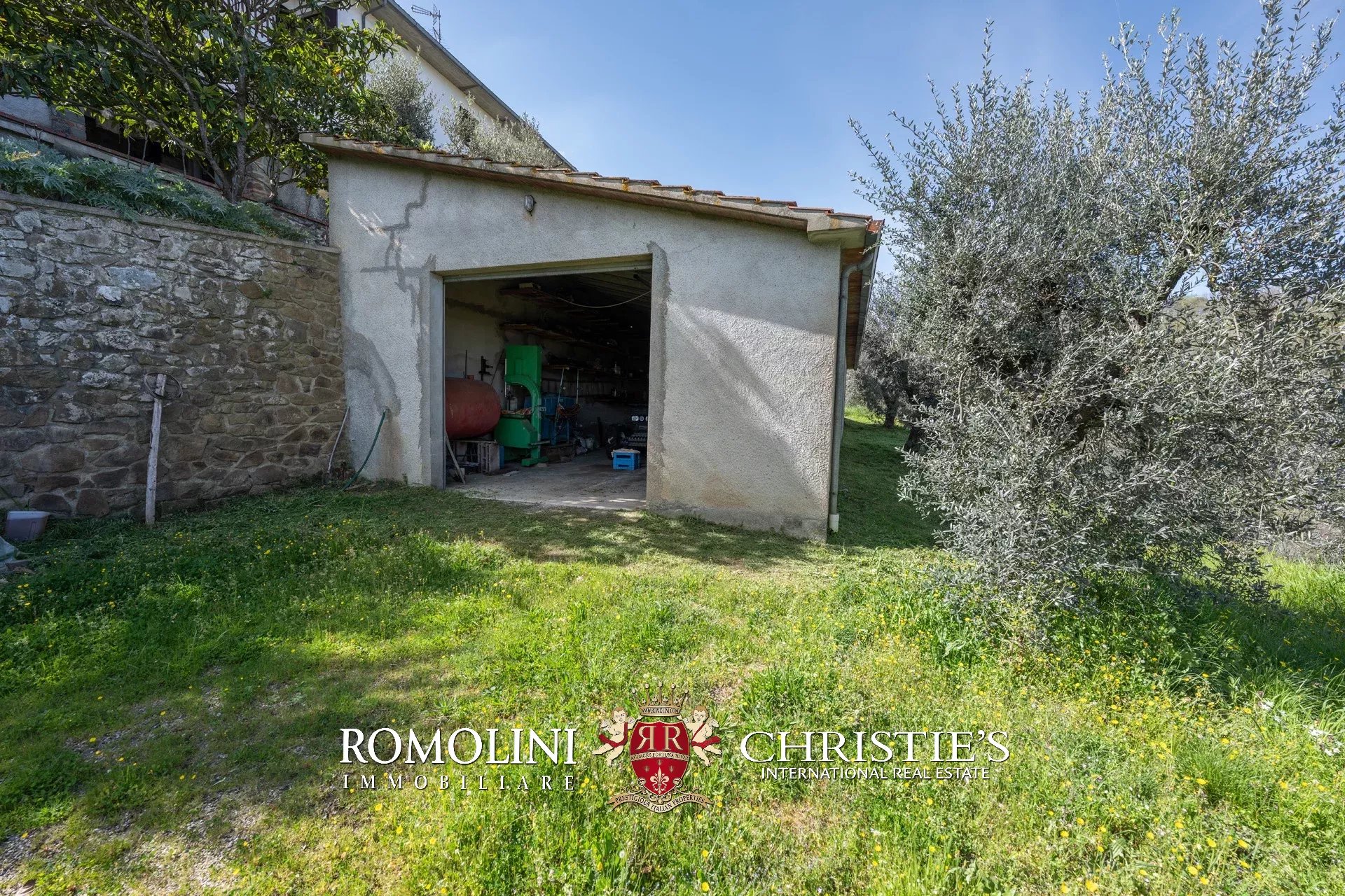 Das Haus stammt aus einem ca. Der 1.700 Quadratmeter große Garten ist umgeben, der über einen praktischen Kiesplatz für weitere Autos verfügt. Am Hang unterhalb des Hauses wurde das Grundstück sorgfältig terrassiert und mit Olivenbäumen (8.900 Quadratmeter) bepflanzt, die die Produktion von exzellentem toskanischem nativem Olivenöl extra ermöglichen. Neben dem Schuppen befindet sich ein kleinerer Weinberg (ca. 550 Quadratmeter).