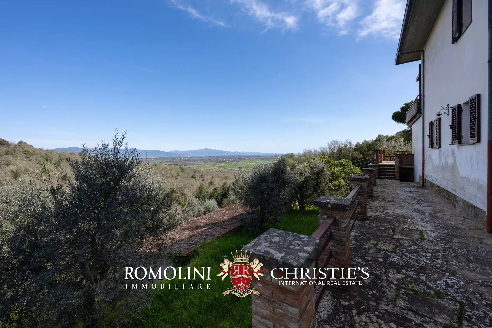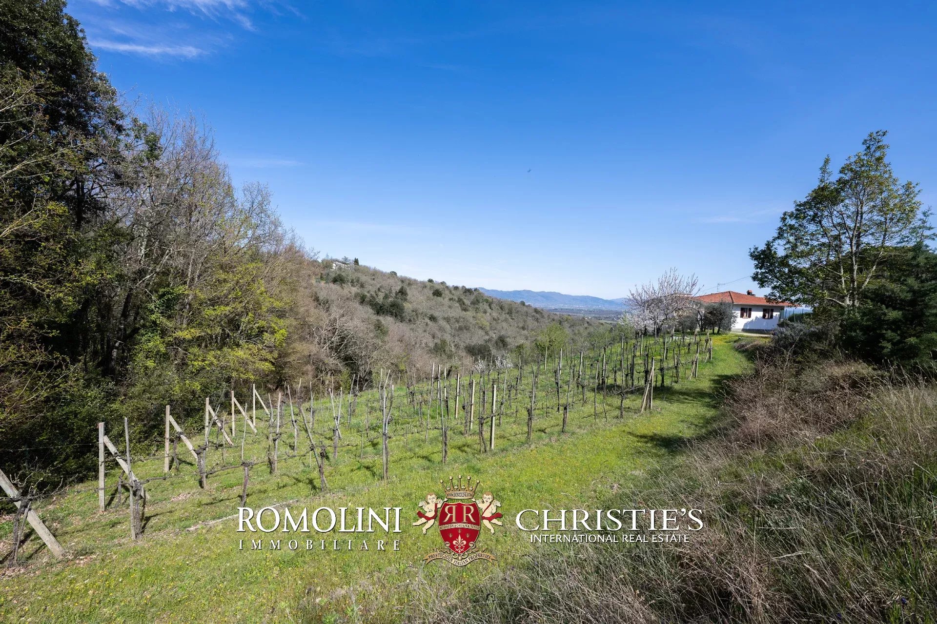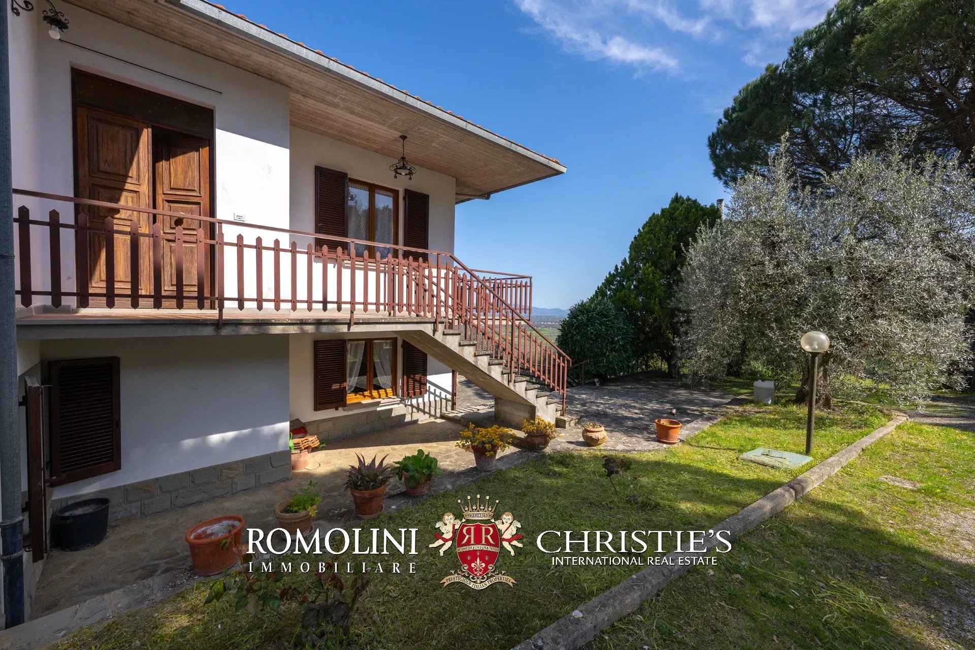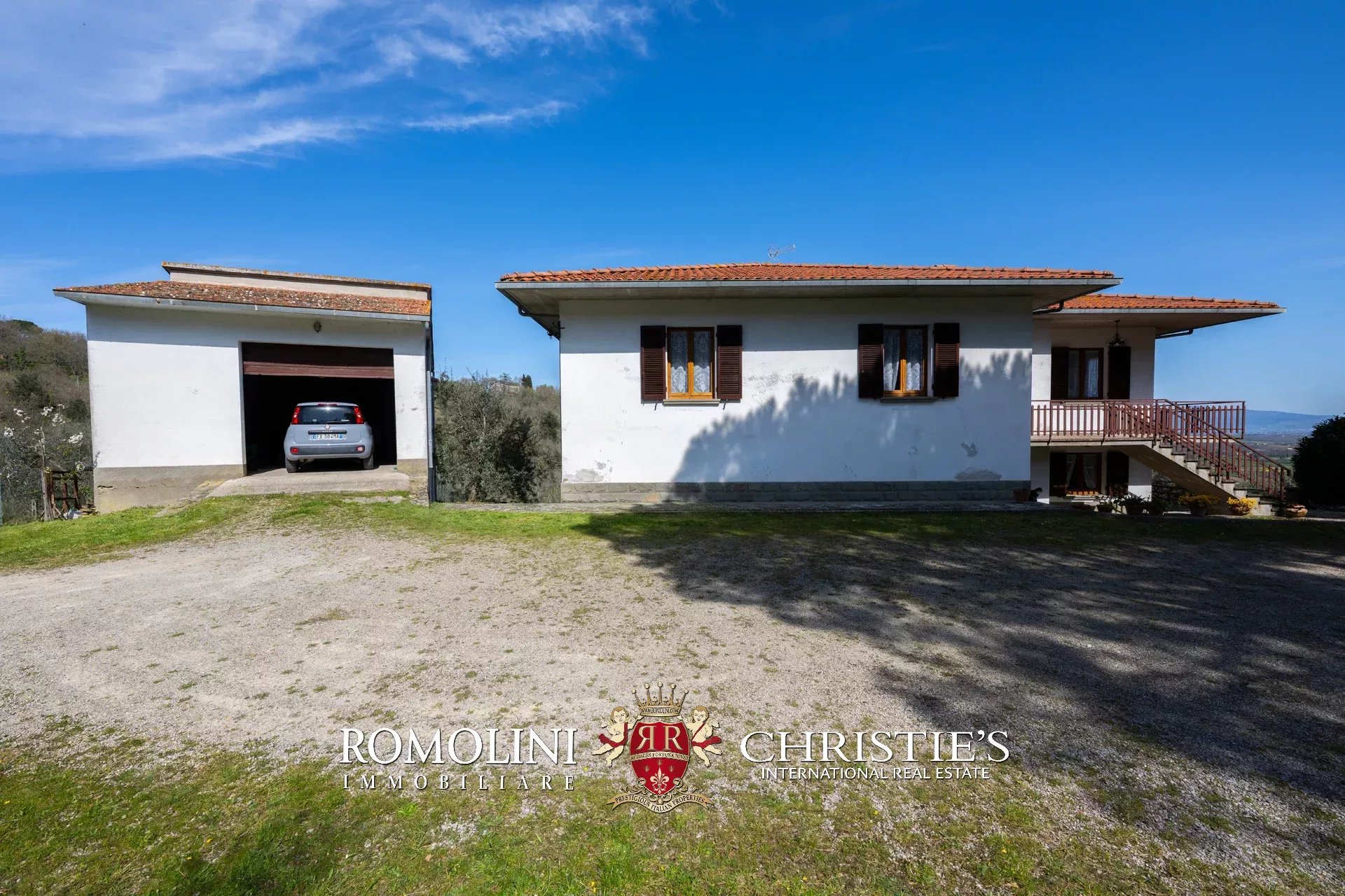 Das Haus stammt aus einem ca. Der 1.700 Quadratmeter große Garten ist umgeben, der über einen praktischen Kiesplatz für weitere Autos verfügt. Am Hang unterhalb des Hauses wurde das Grundstück sorgfältig terrassiert und mit Olivenbäumen (8.900 Quadratmeter) bepflanzt, die die Produktion von exzellentem toskanischem nativem Olivenöl extra ermöglichen. Neben dem Schuppen befindet sich ein kleinerer Weinberg (ca. 550 Quadratmeter).