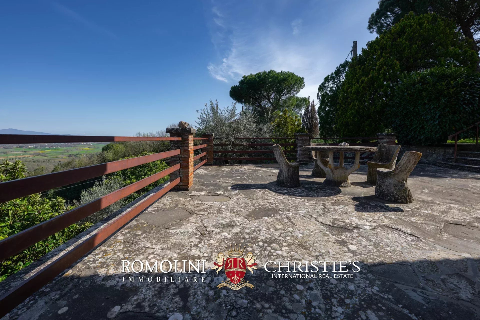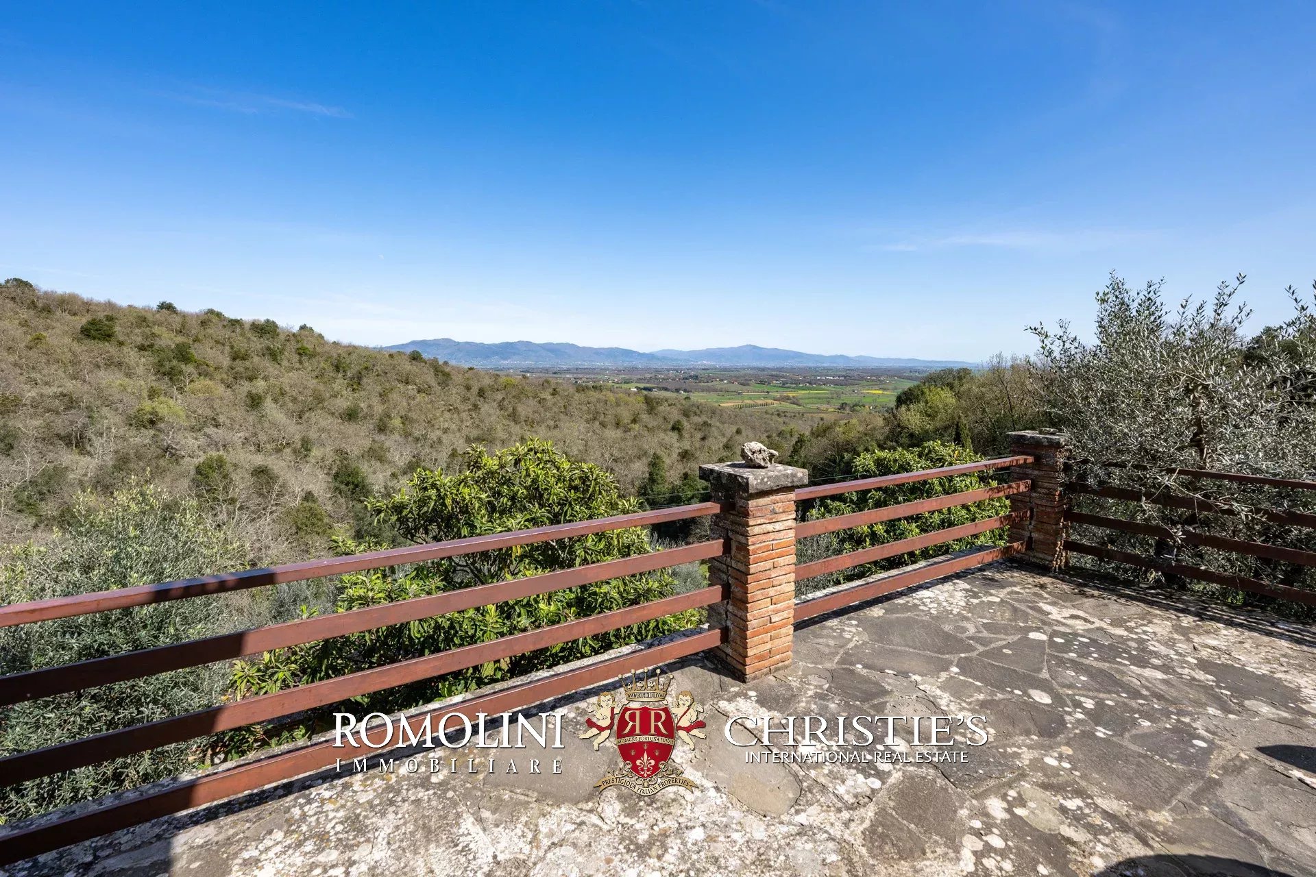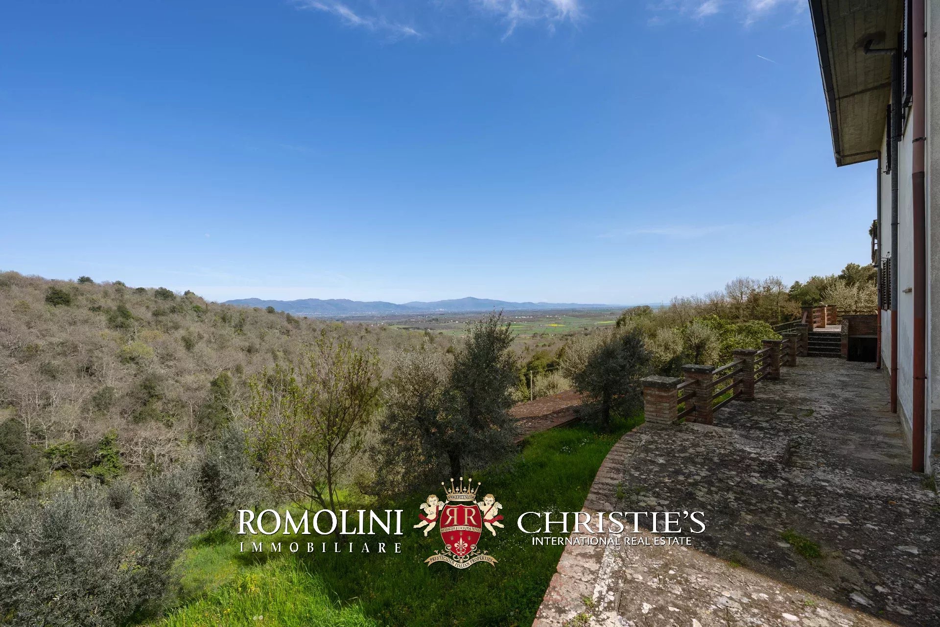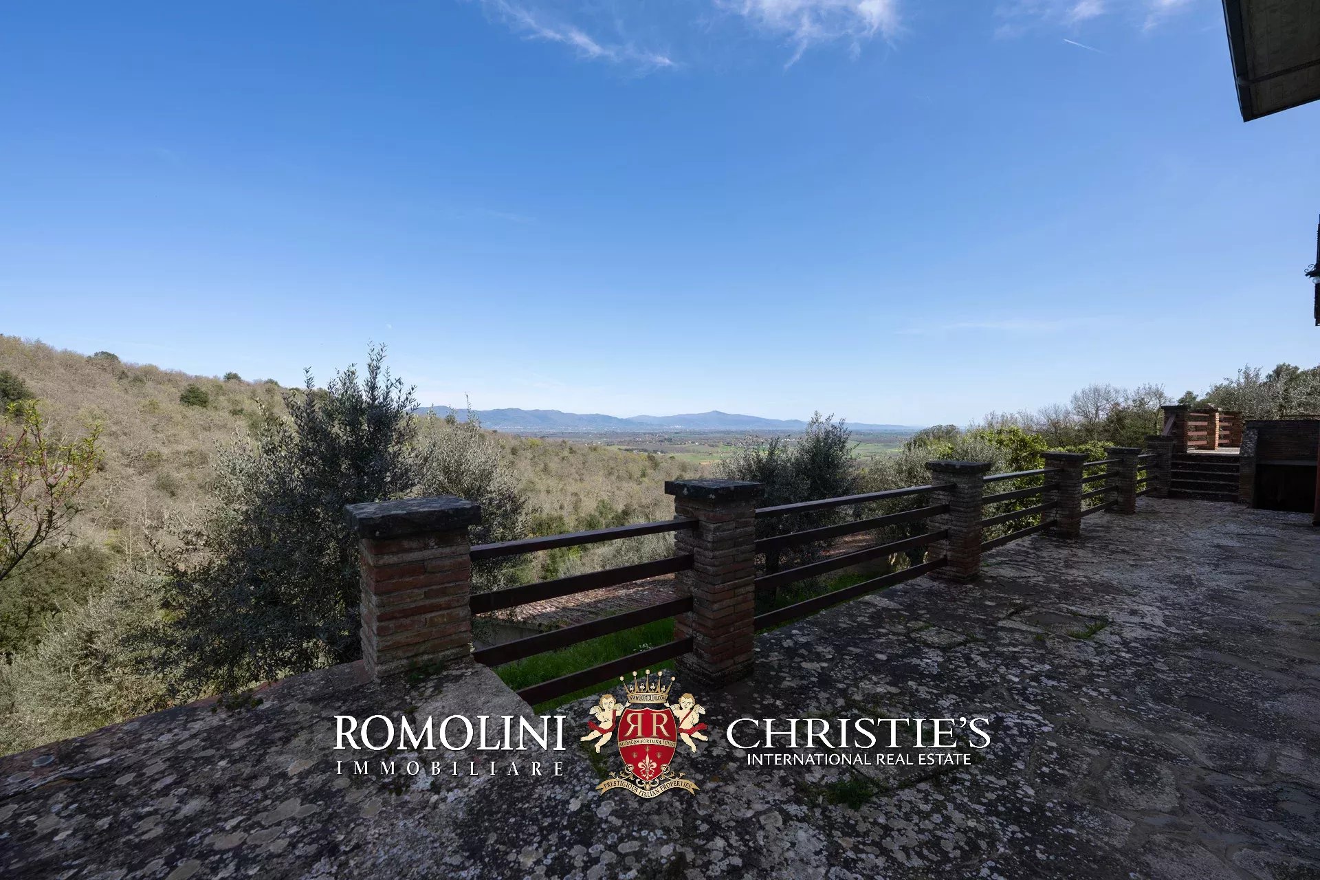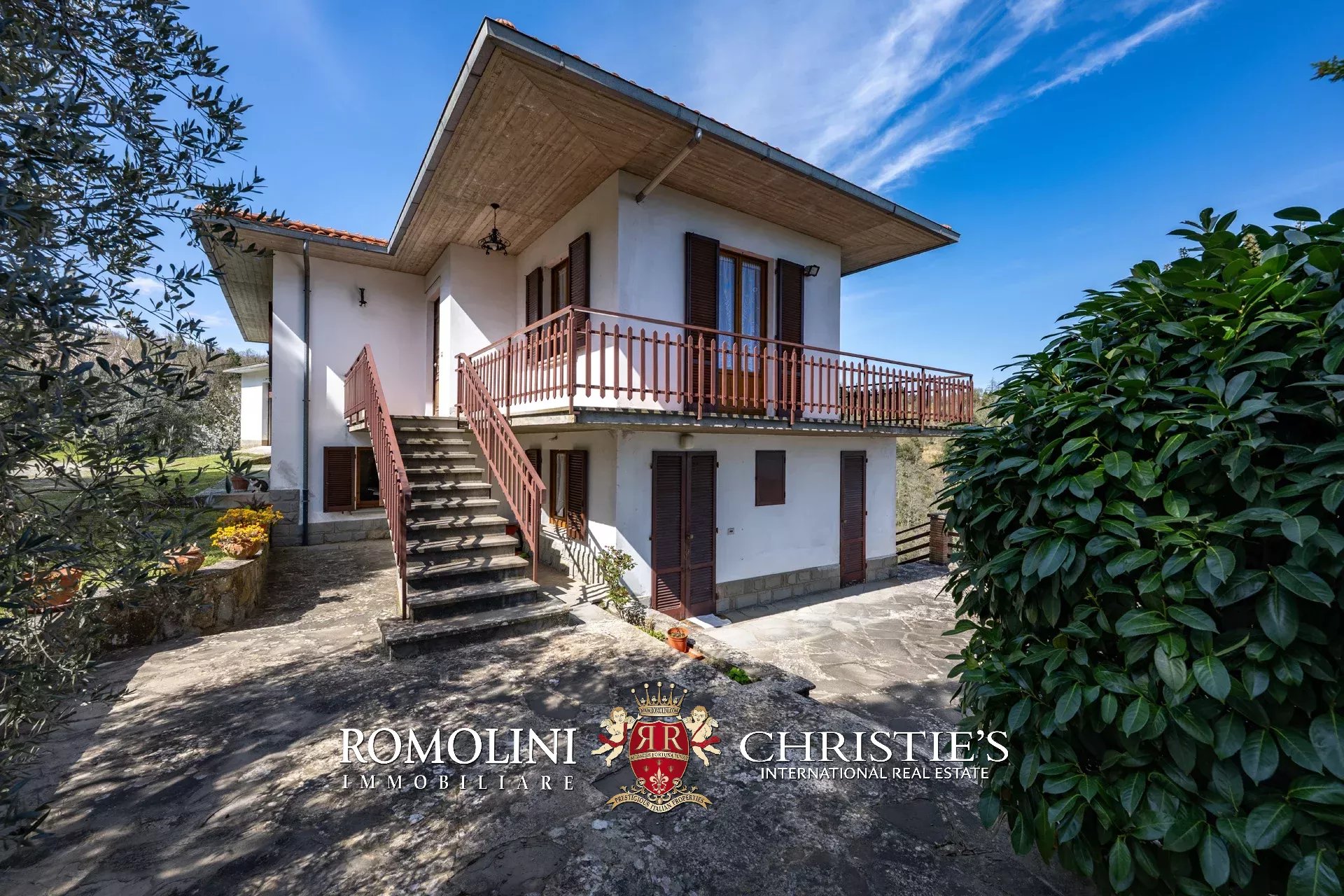 Das Haus stammt aus einem ca. Der 1.700 Quadratmeter große Garten ist umgeben, der über einen praktischen Kiesplatz für weitere Autos verfügt. Am Hang unterhalb des Hauses wurde das Grundstück sorgfältig terrassiert und mit Olivenbäumen (8.900 Quadratmeter) bepflanzt, die die Produktion von exzellentem toskanischem nativem Olivenöl extra ermöglichen. Neben dem Schuppen befindet sich ein kleinerer Weinberg (ca. 550 Quadratmeter).