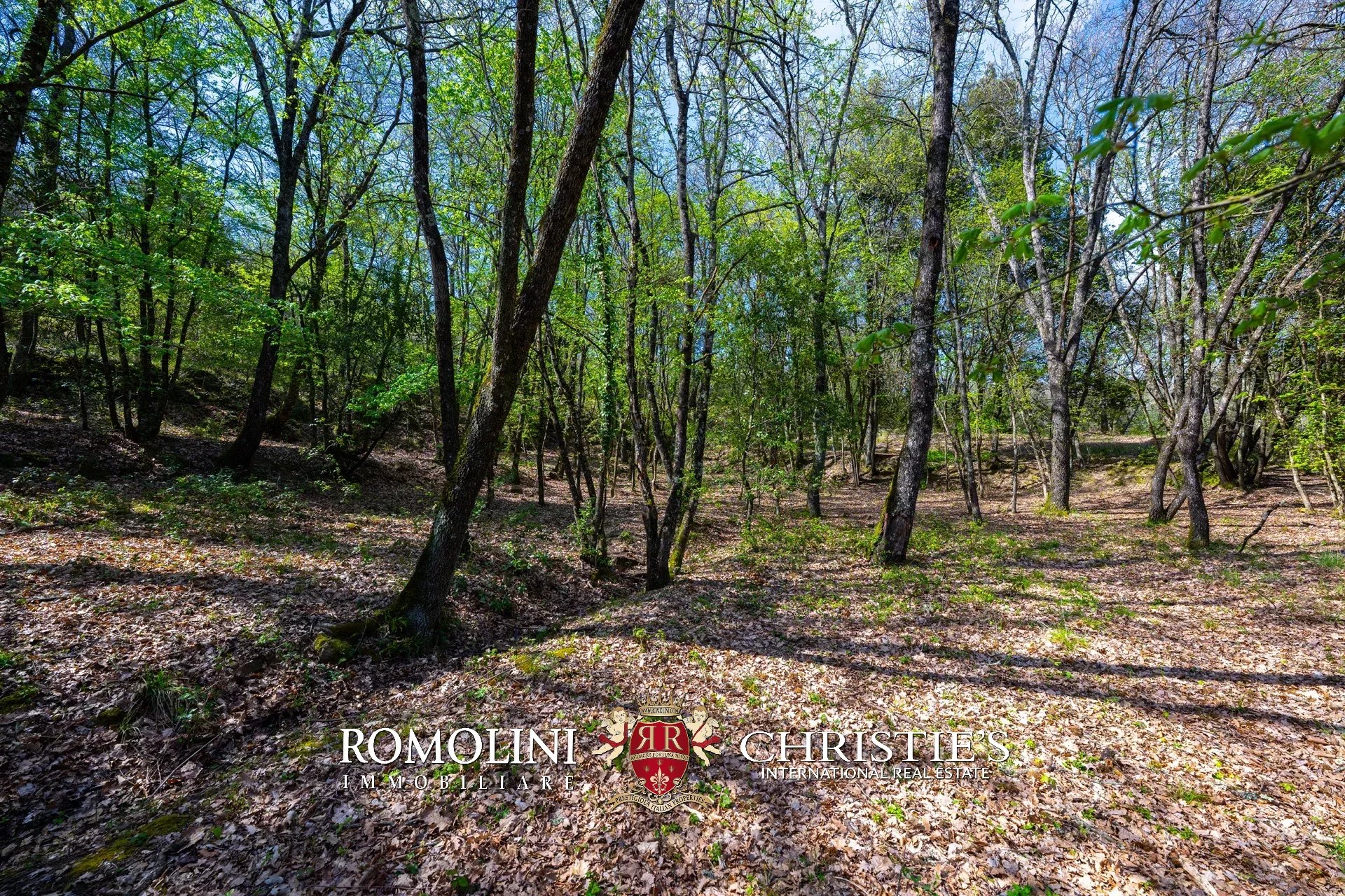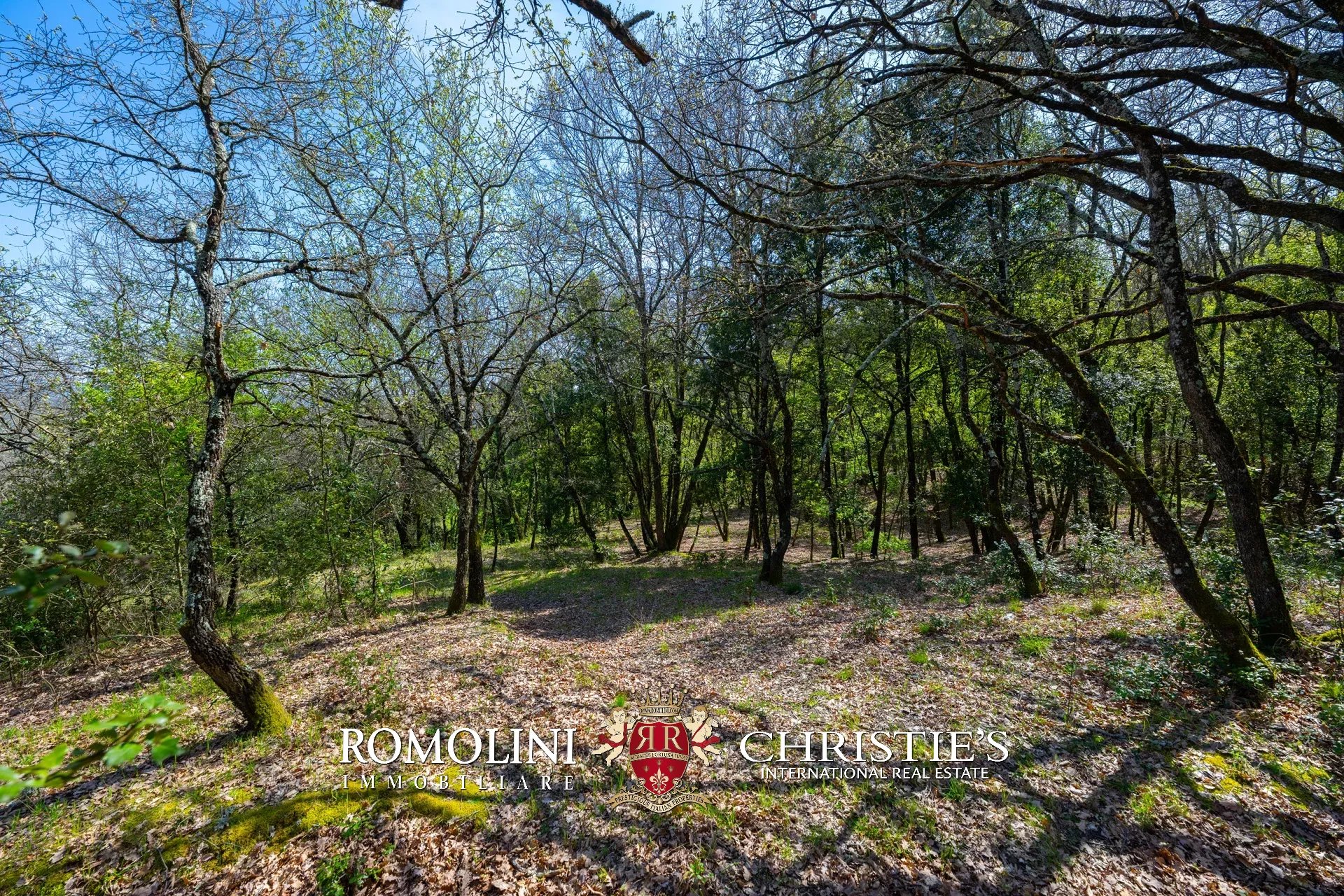 Auf der Nordseite ist das Anwesen durch einen kleinen Wald (2,9 Hektar) geschützt, der Privatsphäre und Vertraulichkeit gewährleistet.