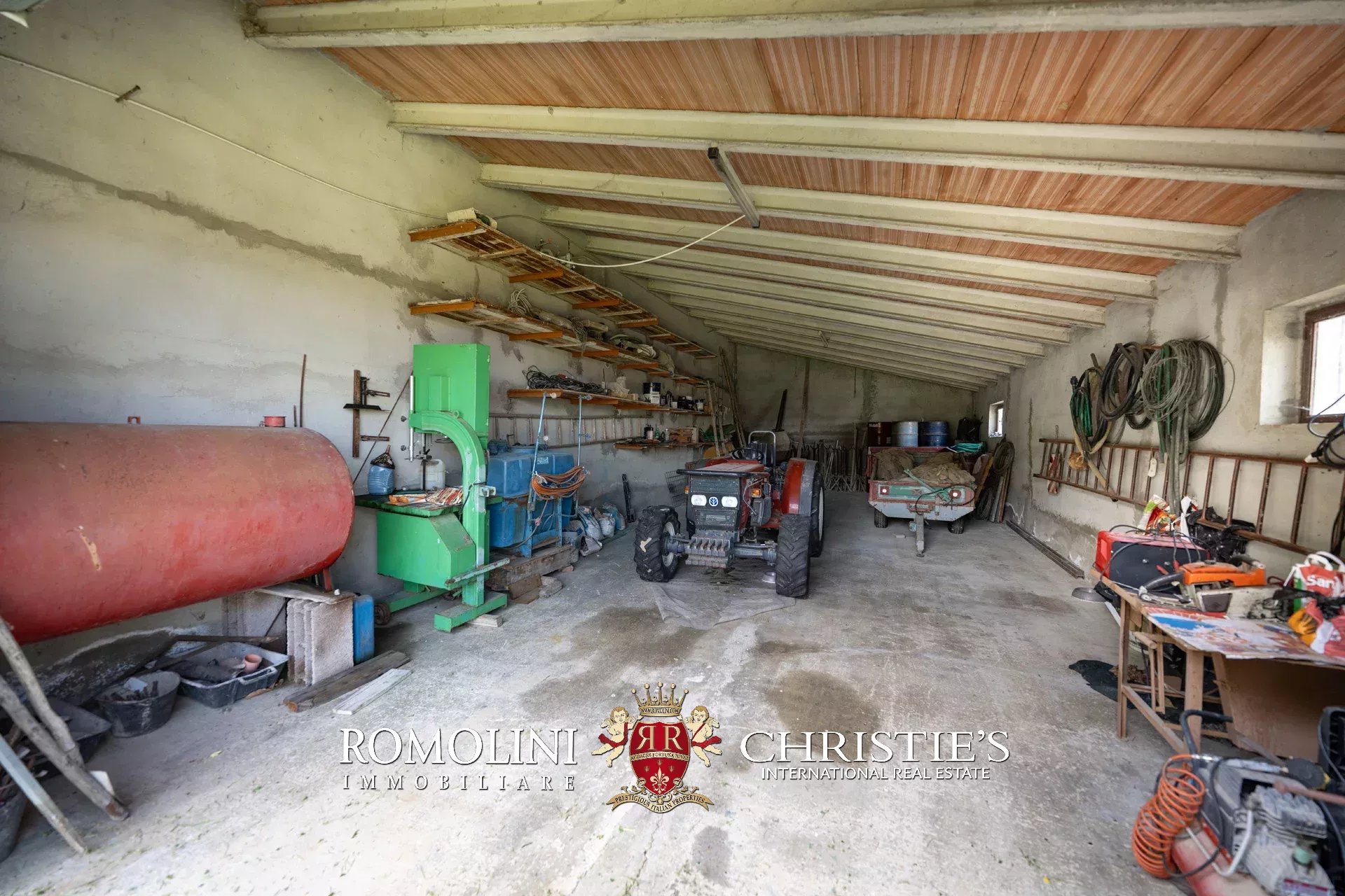 Unterhalb des Hauses, am Rande des Olivenhaines, befindet sich ein großer Schuppen (95 m²), der zur Unterbringung von landwirtschaftlichen Fahrzeugen und Werkzeugen für die Olivenbaumpflege genutzt werden kann.
