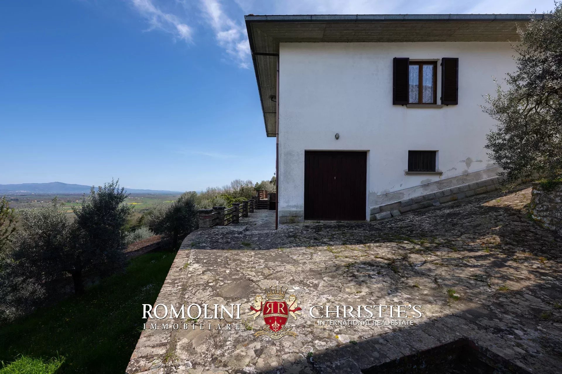 In Panoramalage auf den Hügeln rund um Civitella in Val di Chiana steht eine Villa mit Olivenhain zum Verkauf. Das über 430 m² große Anwesen umfasst das Haus sowie zwei praktische Geräte- und Maschinenschuppen und bedarf lediglich einiger Modernisierungen. Das 4,4 Hektar große Grundstück rund um die Villa umfasst einen Garten und einen Olivenhain.