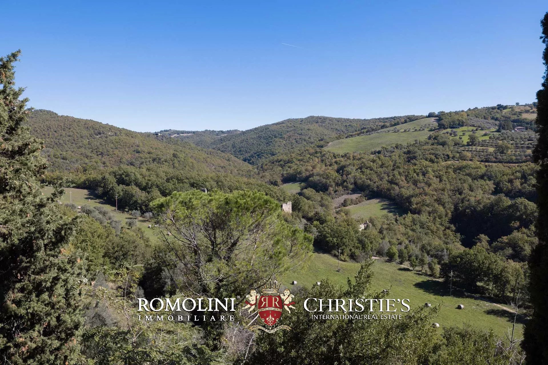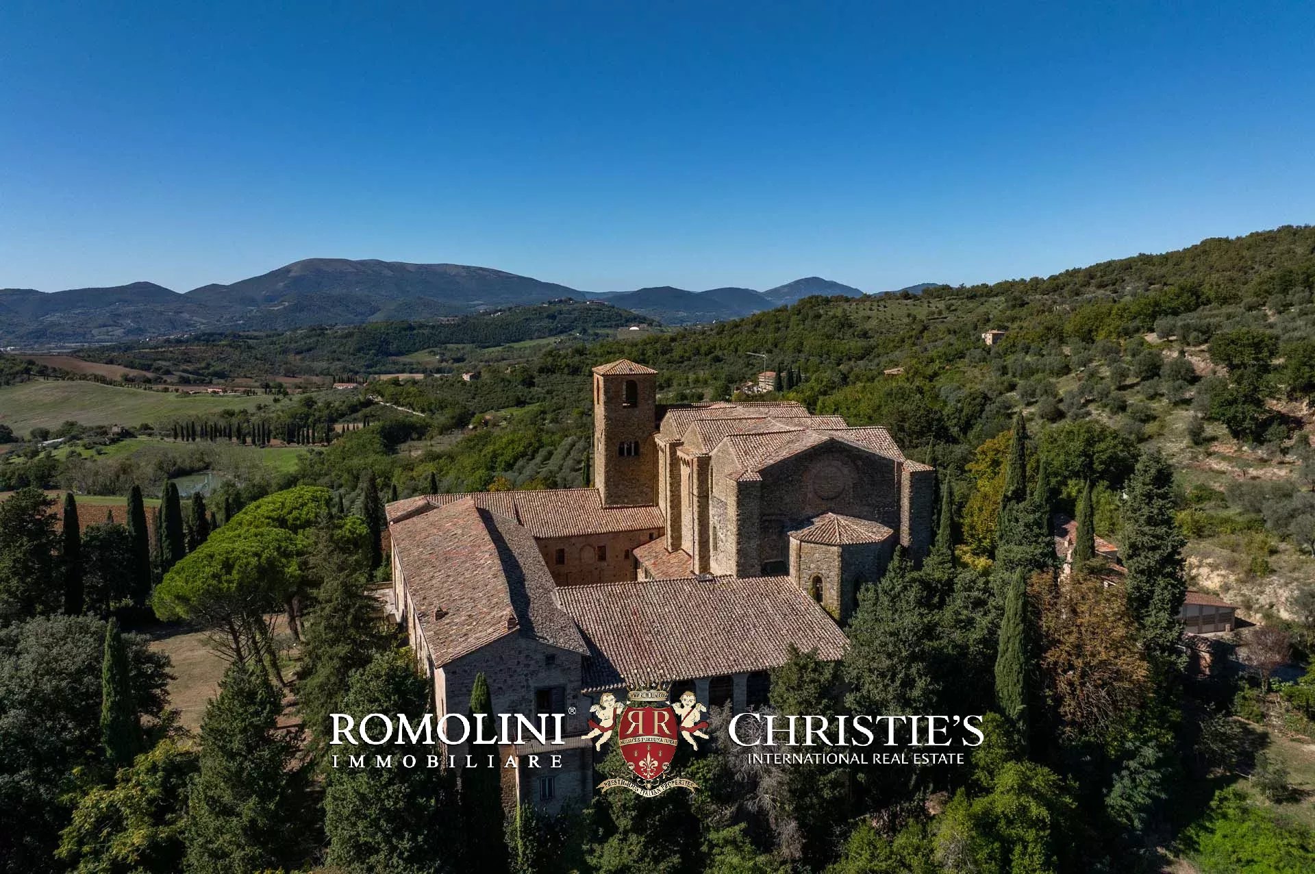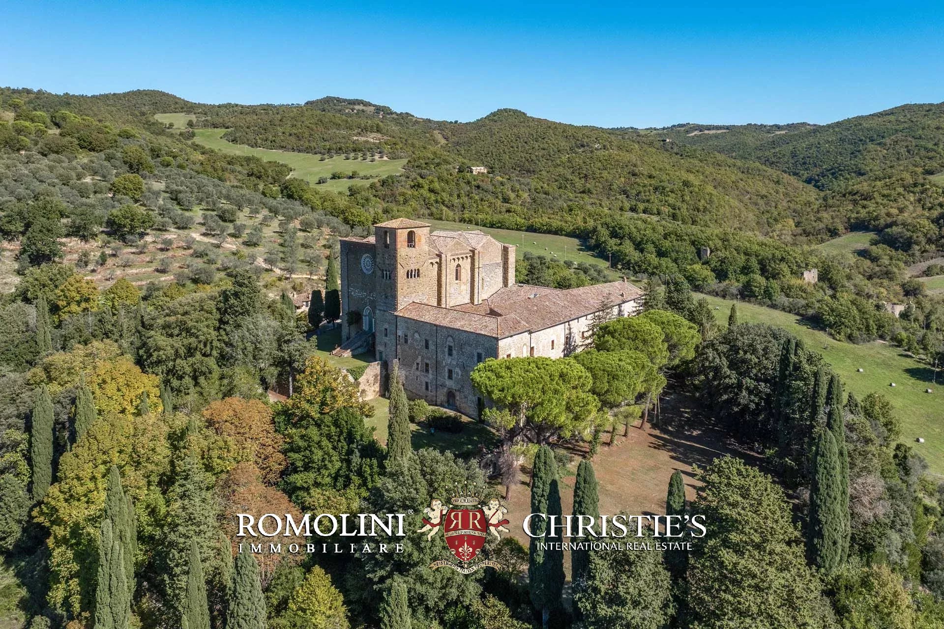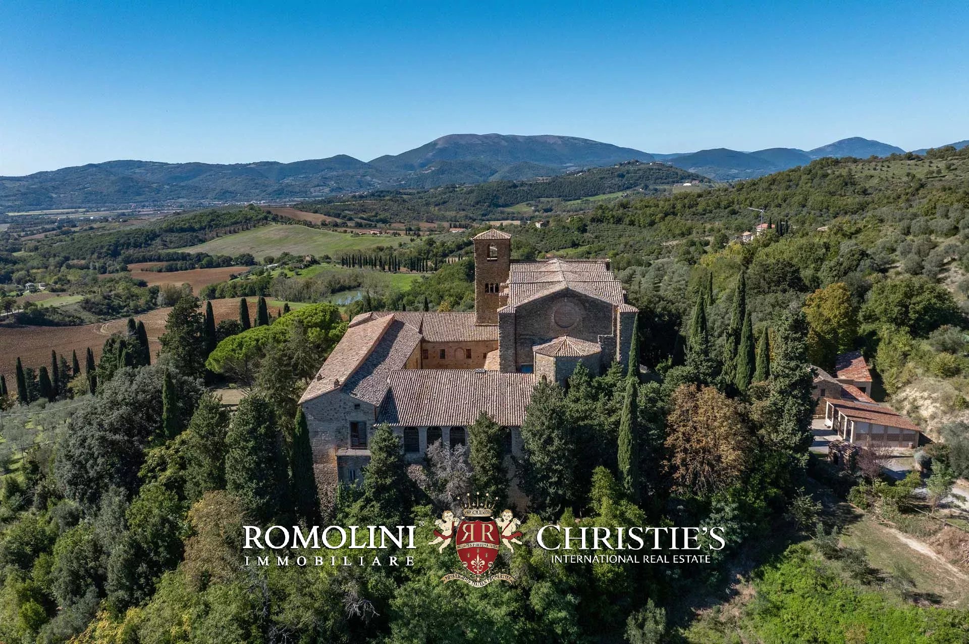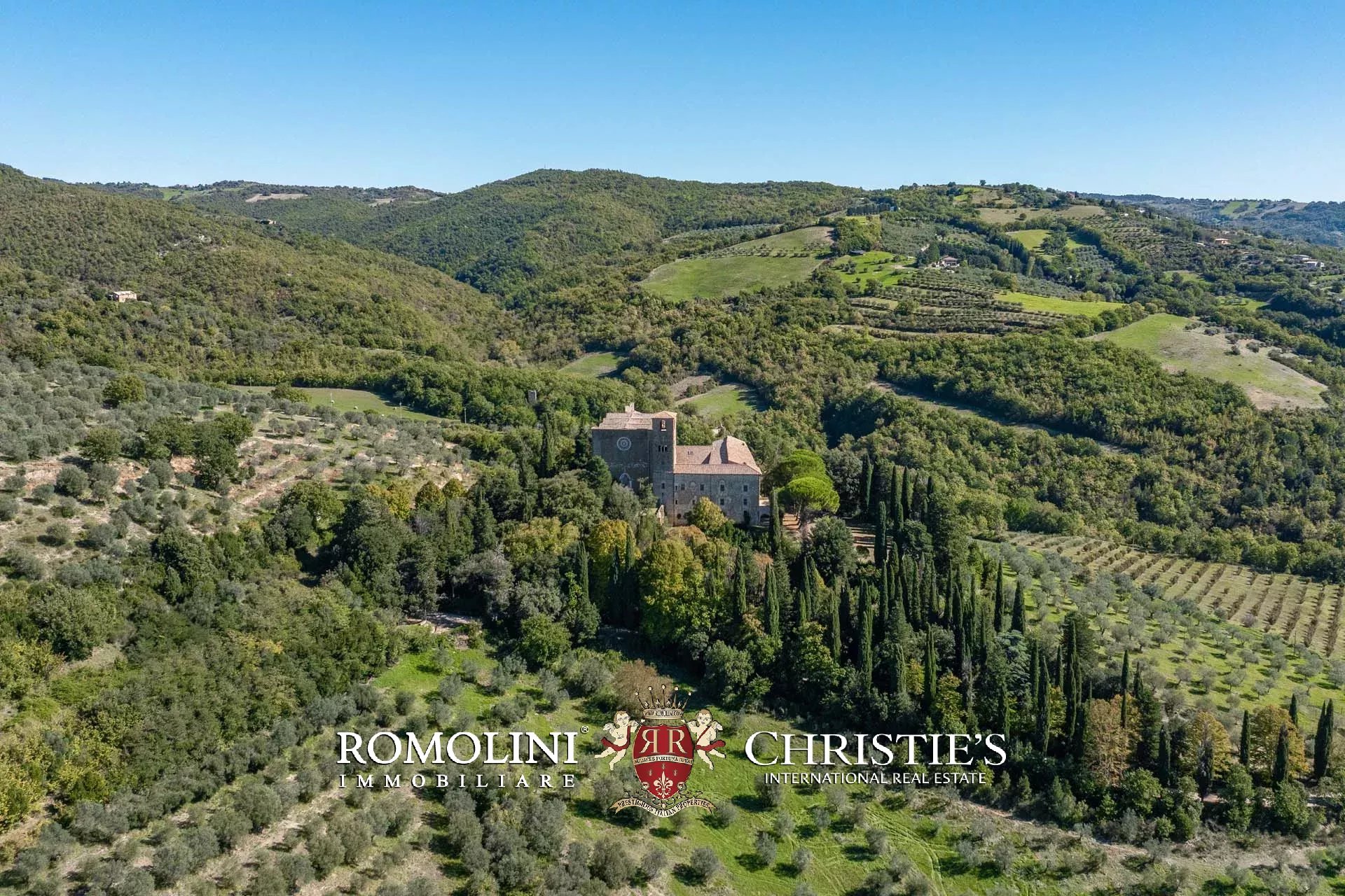 1800 HEKTAR GROßES LANDGUT MIT ABTEI UND 50 LANDHÄUSERN IN UMBRIEN ZU VERKAUFEN