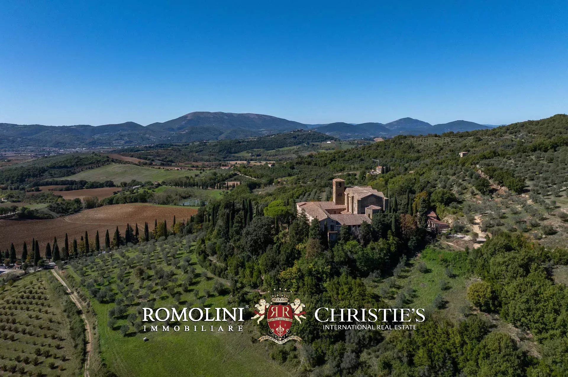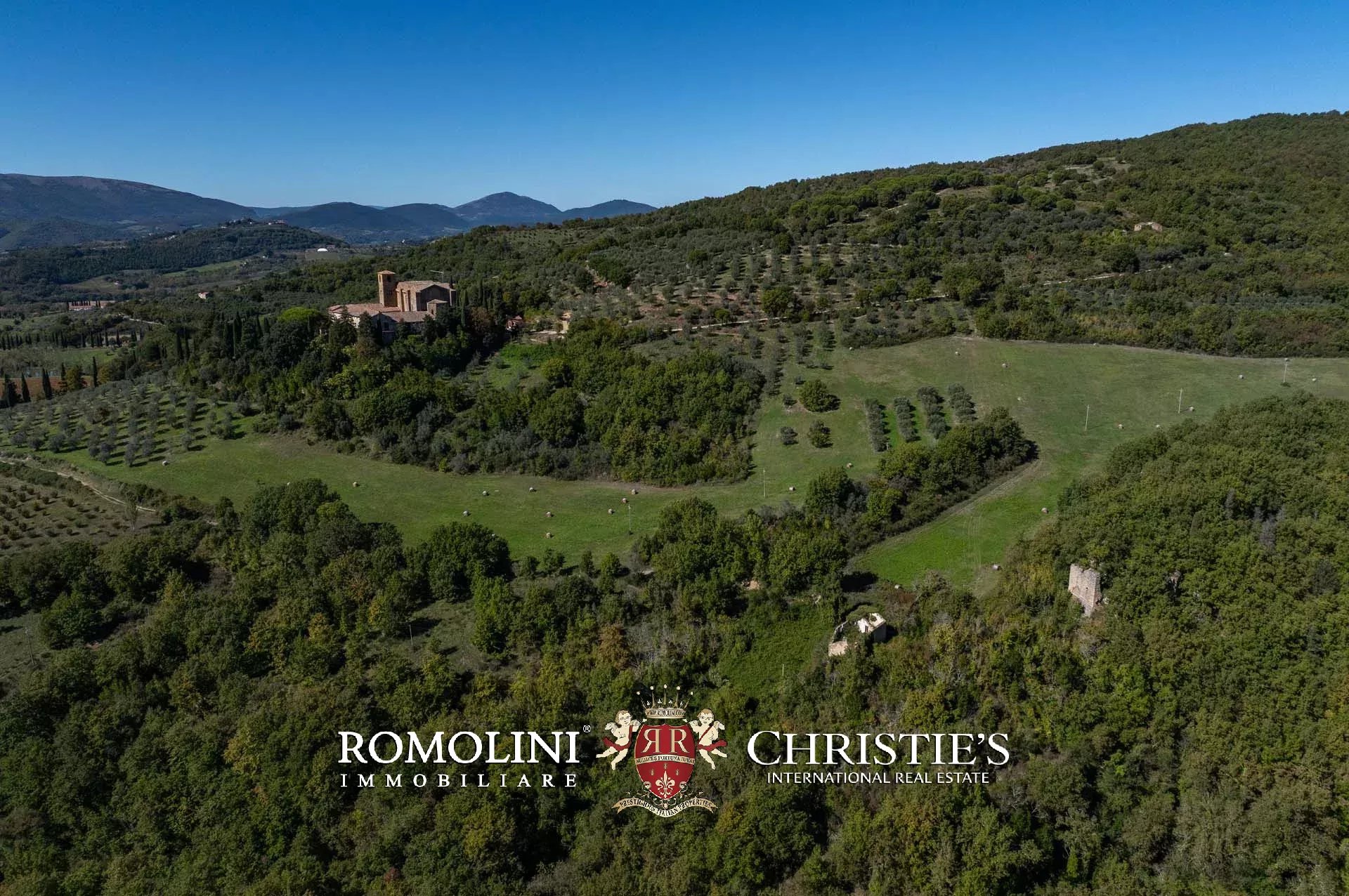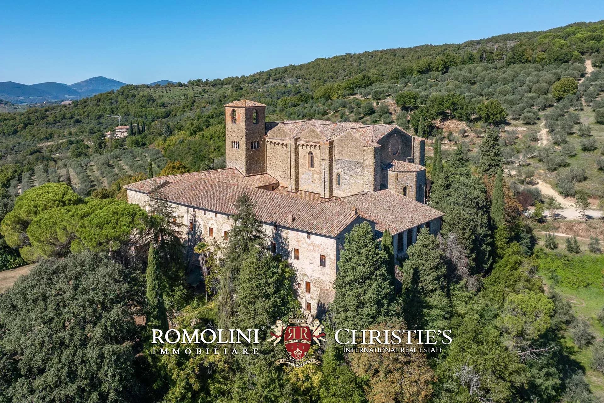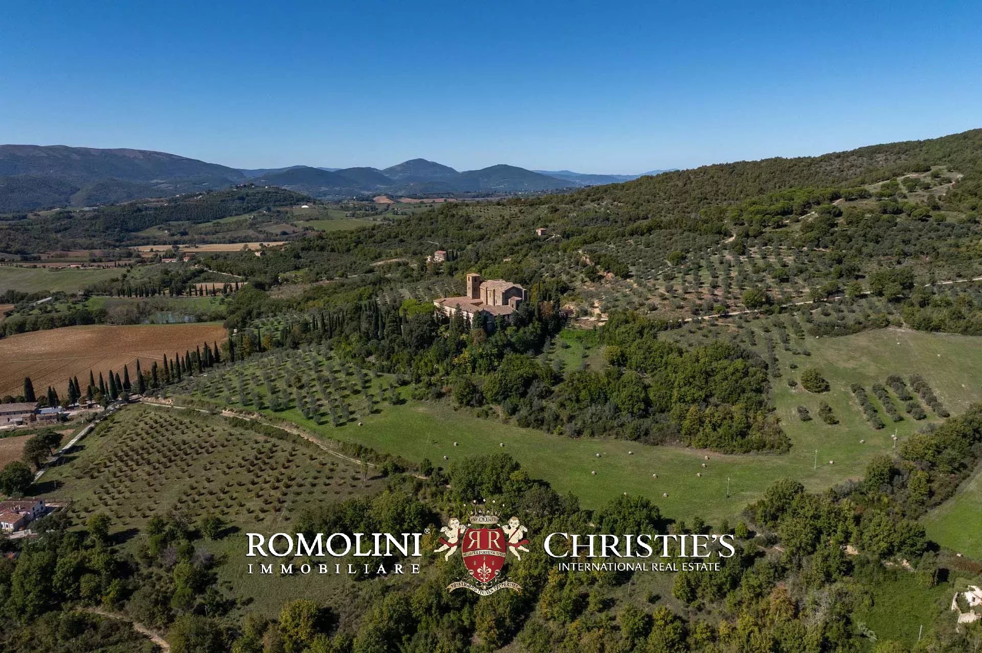 In den Hügeln Umbriens, unweit von Perugia und in einer Gegend von außergewöhnlicher Schönheit, steht ein imposanter Landwirtschaftsbetrieb mit mittelalterlicher Abtei zum Verkauf. Die zahlreichen Gebäude des Landgutes bedürfen größtenteils einer Restaurierung, doch die Liegenschaft bietet ein außergewöhnliches Entwicklungspotenzial mit der Möglichkeit, einen hochwertigen Beherbergungsbetrieb (mit über 150 potenziellen Zimmern) zu realisieren, kombiniert mit der bereits bestehenden landwirtschaftlichen Tätigkeit.