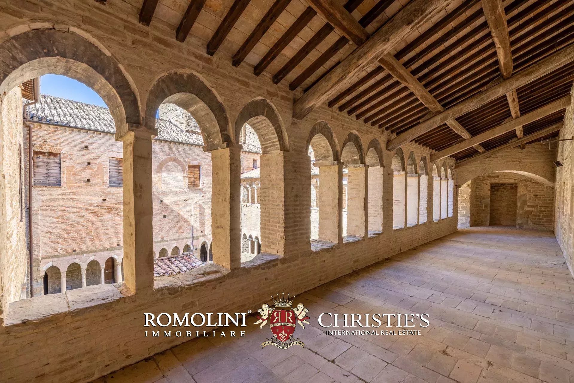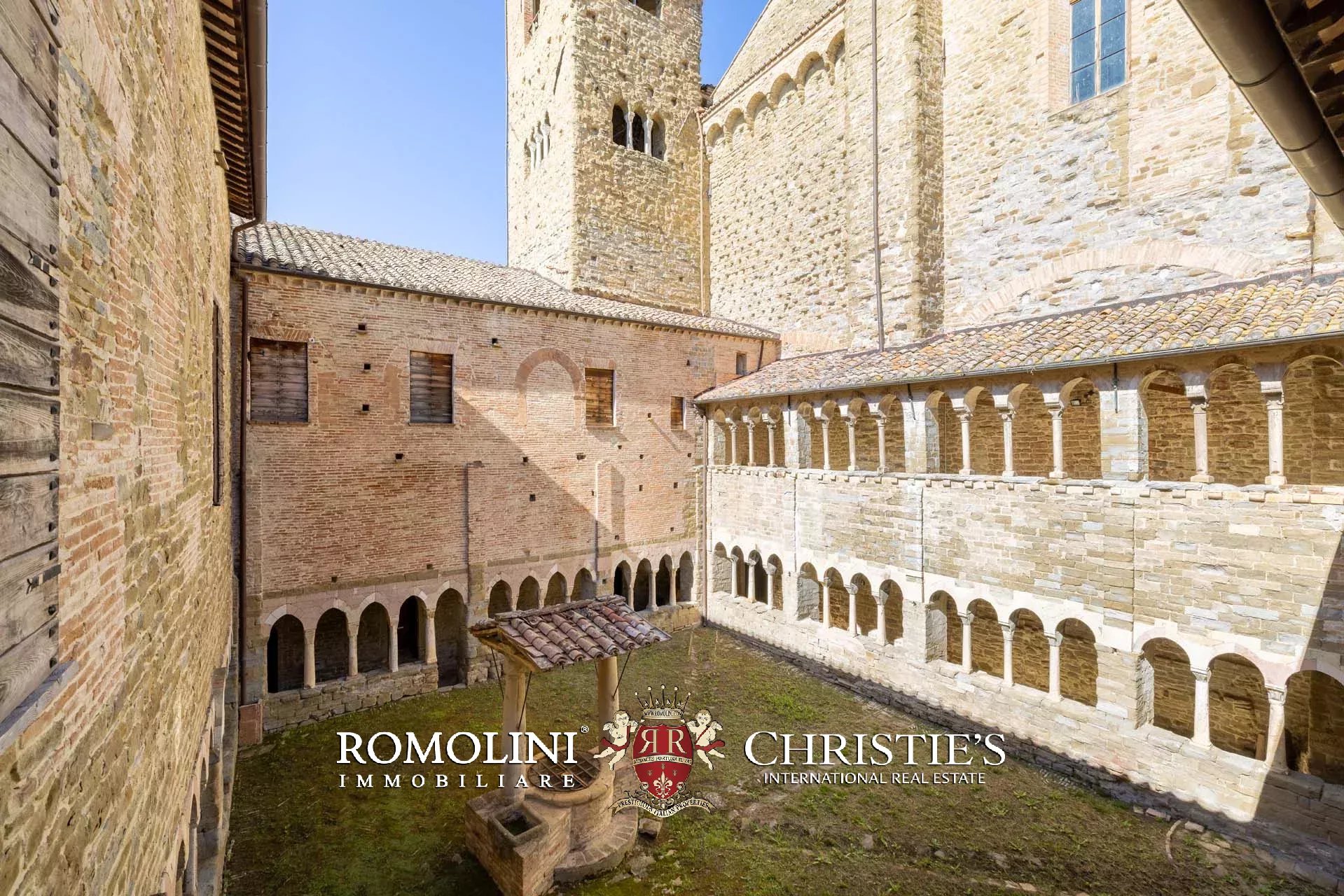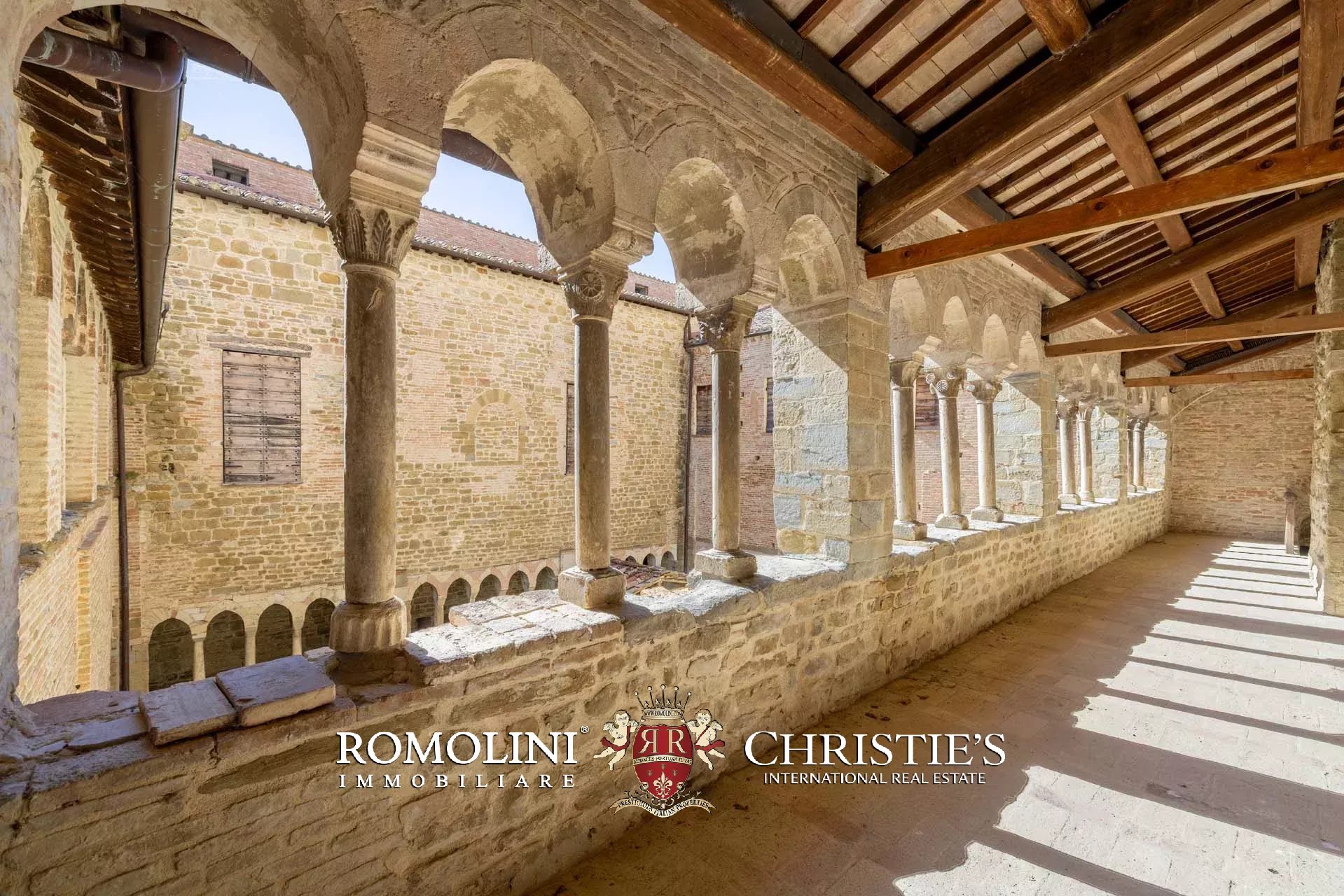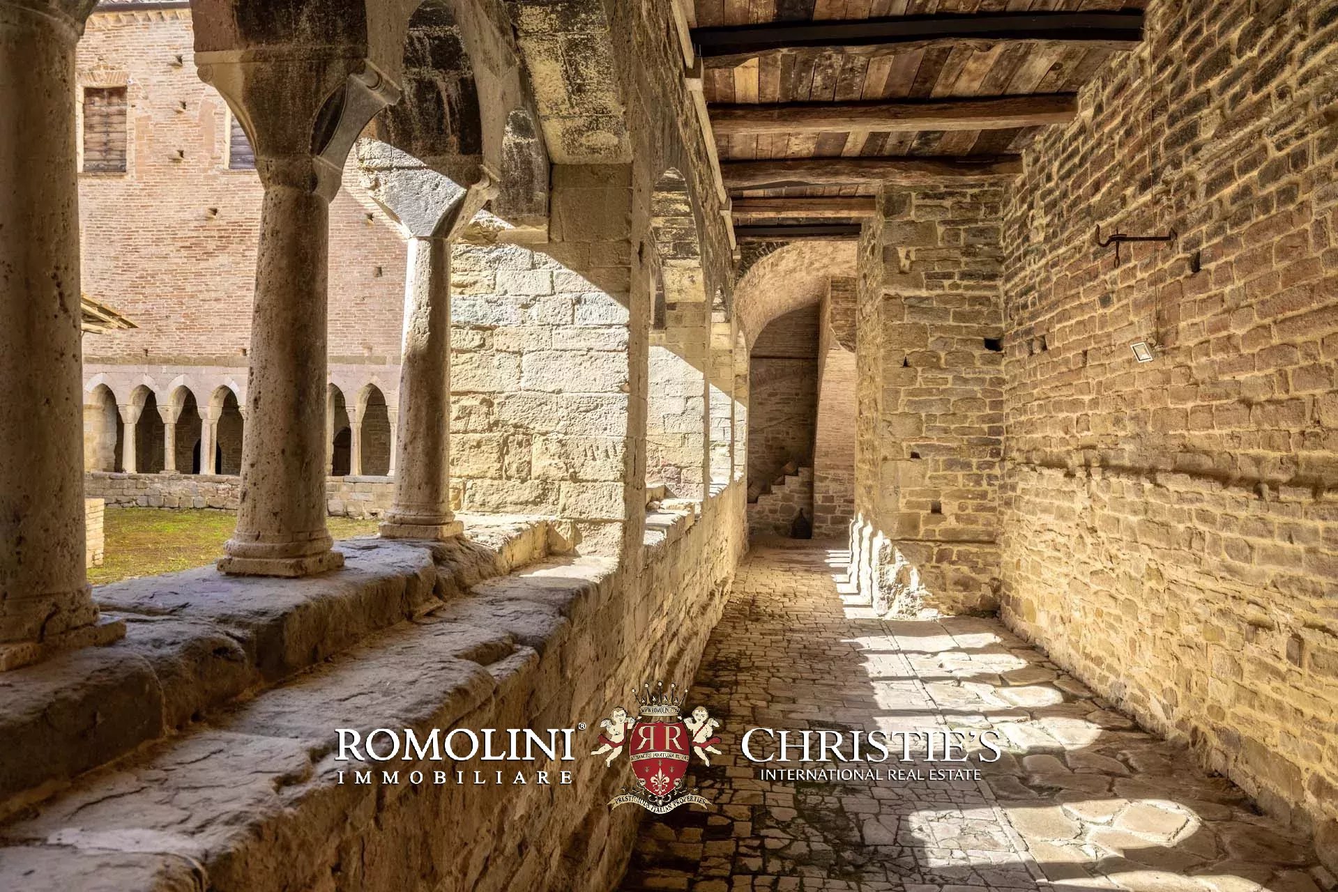 Das Herzstück des Anwesens bildet die wunderschöne Benediktinerabtei aus dem 10. Jahrhundert (6.876 m²). Das Gebäude wurde auf den Überresten eines früheren römischen Tempels errichtet und erreichte um das 12. Jahrhundert herum seinen Höhepunkt. Im Laufe der Jahre führten verschiedene Vermächtnisse und Schenkungen dazu, dass die Abtei ihren Einfluss auf über dreißig Ortschaften und zwanzig Burgen in der Region Perugia ausdehnen konnte. Der heute sichtbare Kreuzgang und die Kirche wurden im 13. Jahrhundert erbaut, und im gleichen Zeitraum wurden die Gebäude mit Kunstwerken und wertvollen Einrichtungsgegenständen ausgeschmückt. Ende des 14. Jahrhunderts machte sich die Krise bemerkbar, und die Abtei entvölkerte sich langsam, bis sie 1602 zum Mittelpunkt eines großen landwirtschaftlichen Betriebs wurde.