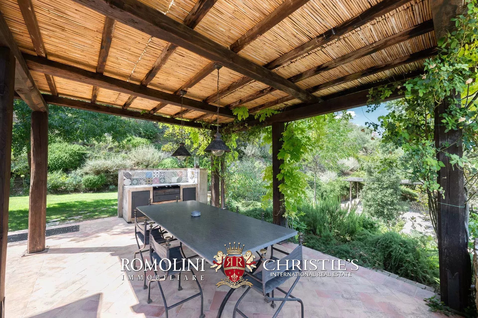 Das Anwesen verfügt über eine gepflasterte Terrasse mit Panoramablick und eine Pergola mit Grillbereich, ideal zum Grillen und für Mittag-und Abendessen im Freien. Die Villa ist von einem Garten von 2000 m² Garten umgeben, perfekt gepflegt und vollständig umzäunt, mit Parkplatz, Obst-und Gemüsegarten und Olivenbäumen. Ein Bewässerungssystem ermöglicht es Ihnen, den Garten immer in ausgezeichnetem Zustand zu halten.