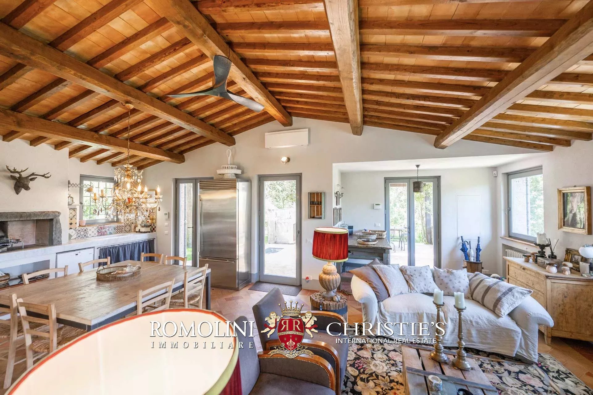 Die Villa wurde erdbebensicher gebaut, mit alten Baumaterialien sowohl drinnen als auch draußen. Das Anwesen verfügt über hochwertige Verzierungen und zeichnet sich durch Terrakotta-Fußböden, Marmorwaschbecken, Decken mit Holzbalken und Terrakotta-Fliesen, und Kamine aus Stein aus. Die Fenstertüren mit Panoramablick machen die Villa hell und gemütlich.