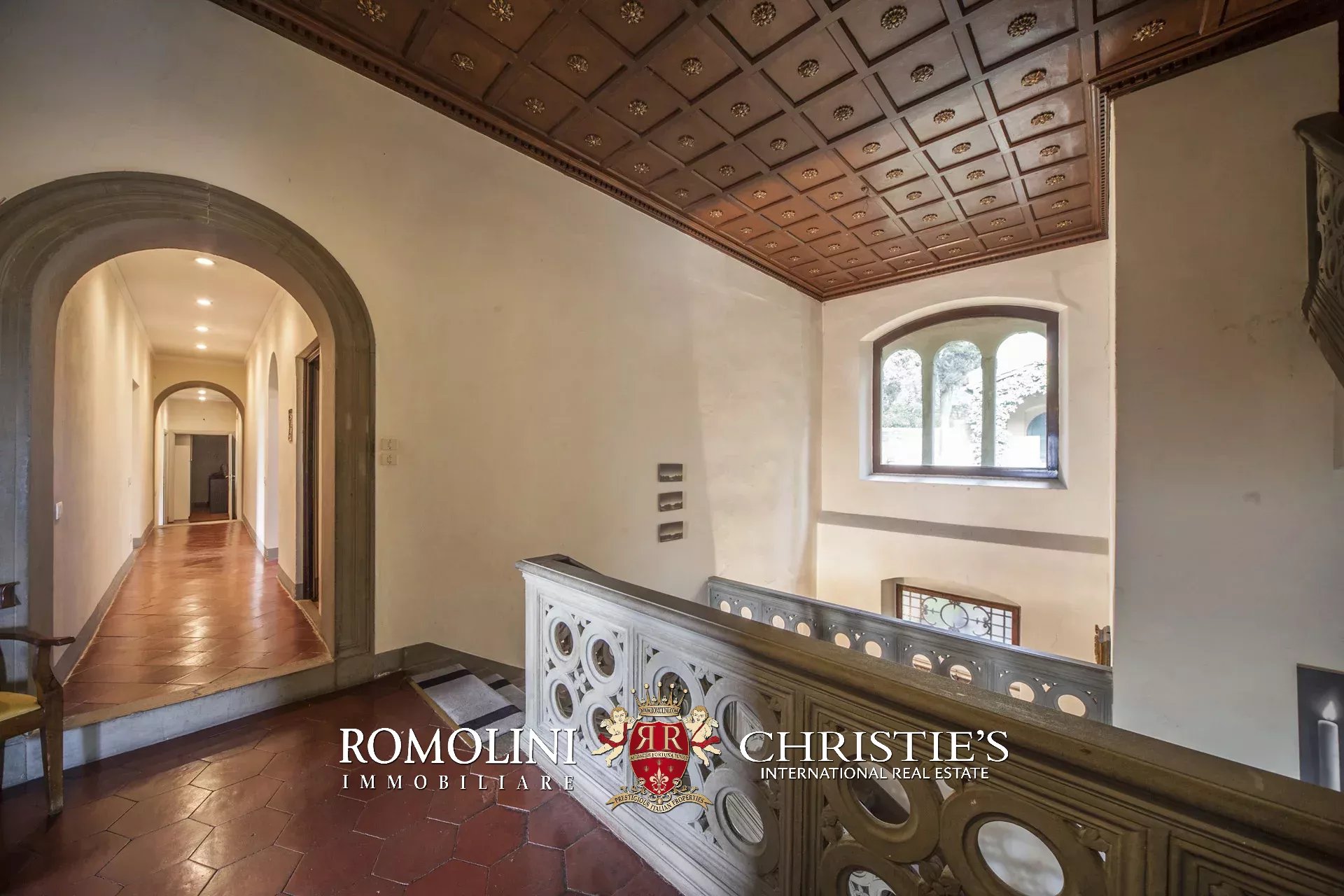 Geschmackvoll renovierte herrschaftliche Villa aus dem 20. Jahrhundert mit reichen verzierten Salons, insgesamt 8 Schlafzimmern und 8 Badezimmern. Das Anwesen befindet sich in den Hügeln von Fiesole mit atemberaubendem Blick auf das historische Zentrum von Florenz und besteht aus einem herrlichen 2.000 m² großen Park mit Panoramaterrassen, Loggien und schattigen Bereichen zum Entspannen.