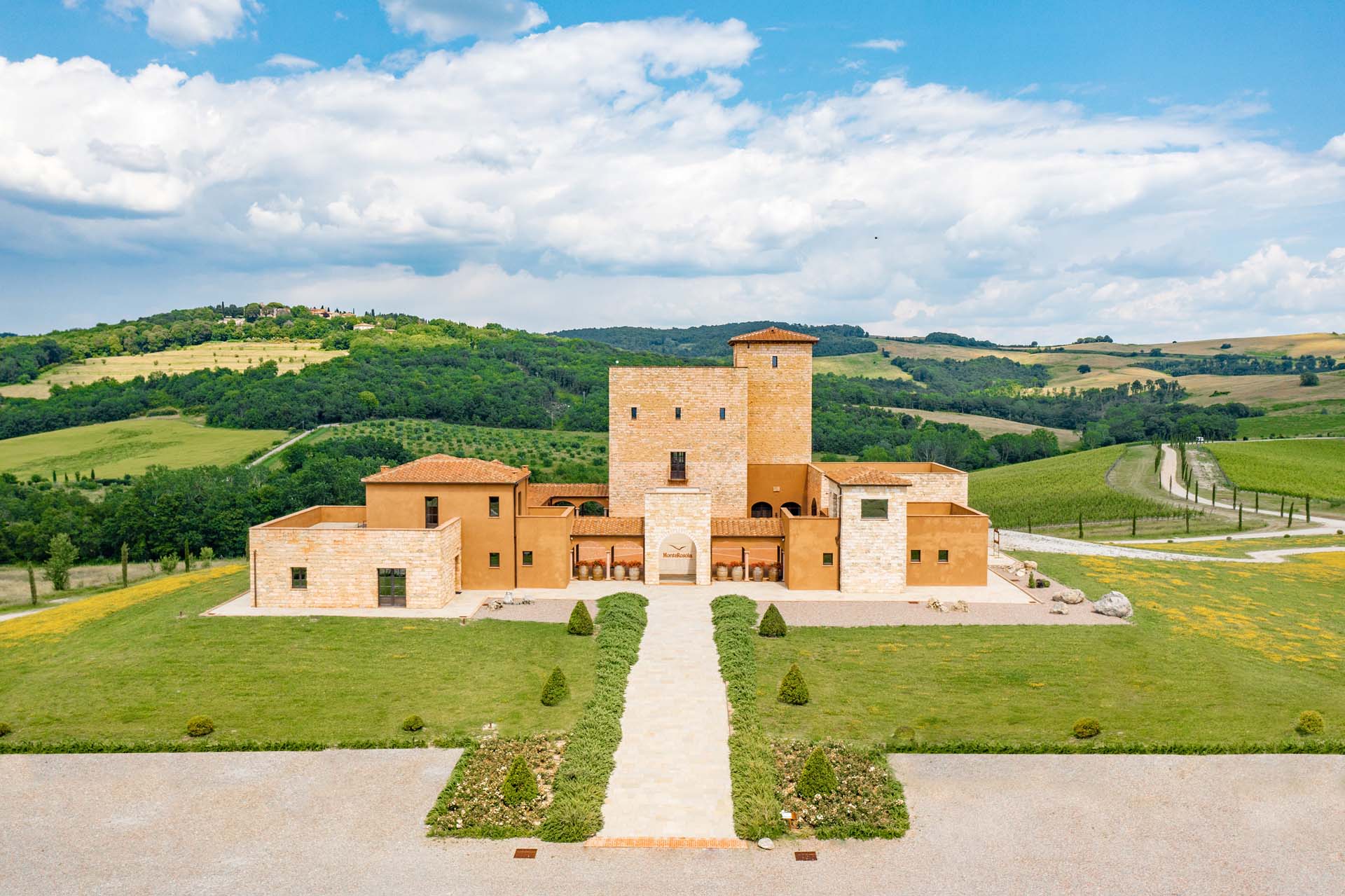 The compound also makes an ideal events venue, with an elegant plaza and professional kitchen; a wealth of accommodation on site; and an outdoor pool adjoining the winery. Alongside the commercial area, a renovated 1490s villa offers seven bedrooms and wonderful living areas, an outdoor pool, and a pool house. The estate harnesses geothermal and solar energy, and a private lake irrigates the gardens and fields in a self-sufficient way, reaffirming the eco principles of this inspiring enterprise.